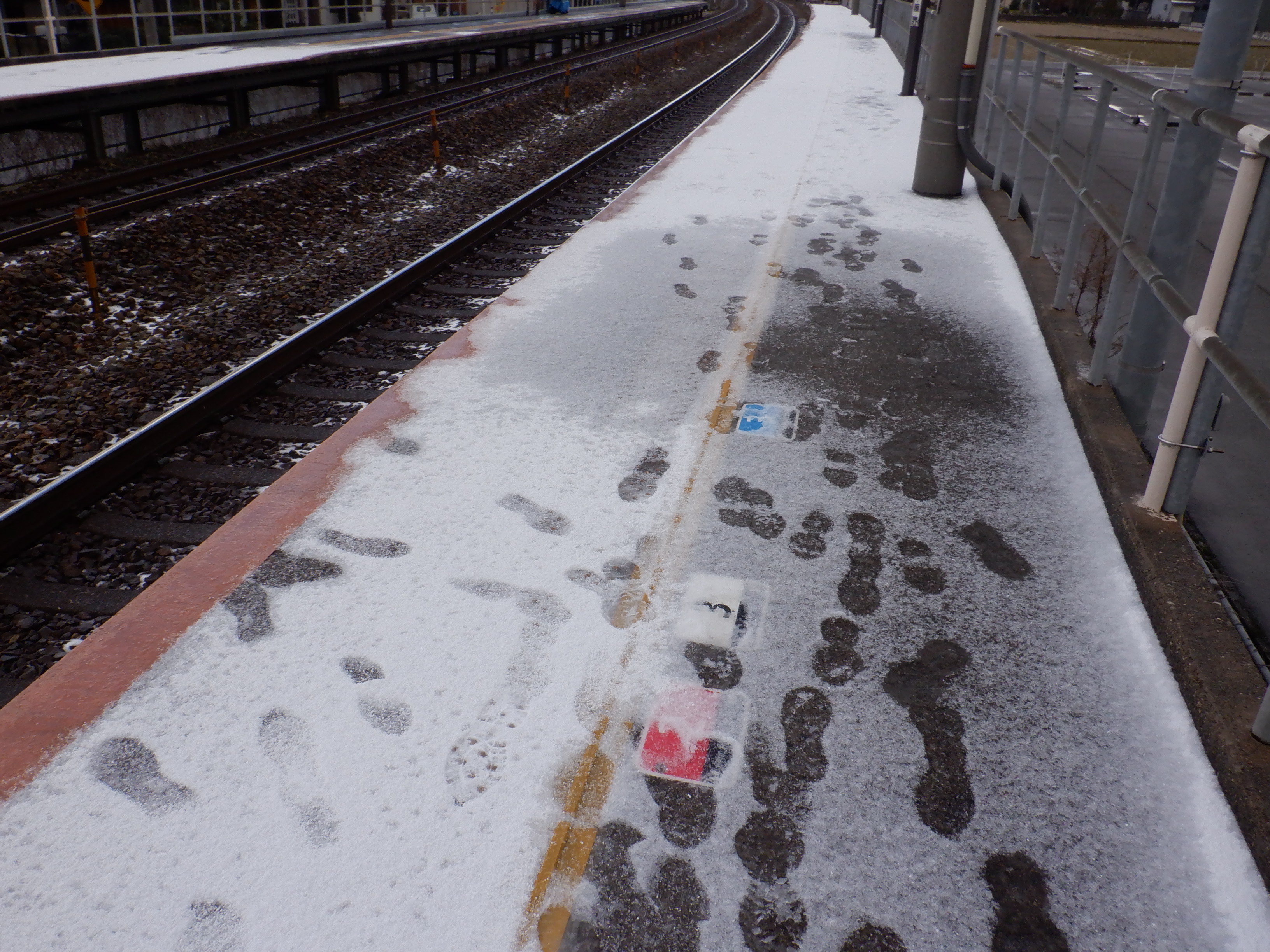 ちょうどこの駅にいるときに駅名標のJRロゴにシールを貼っていたようです。