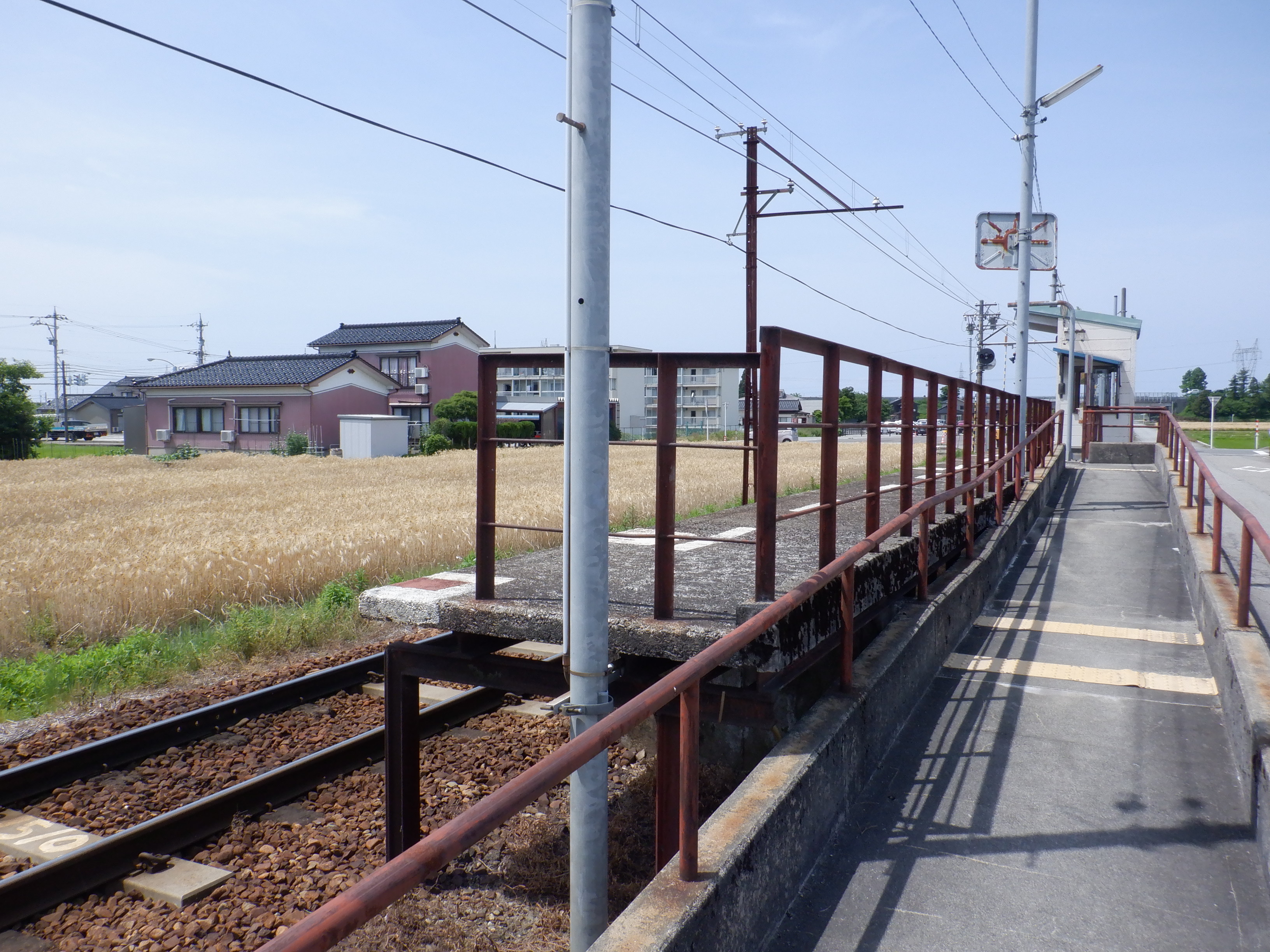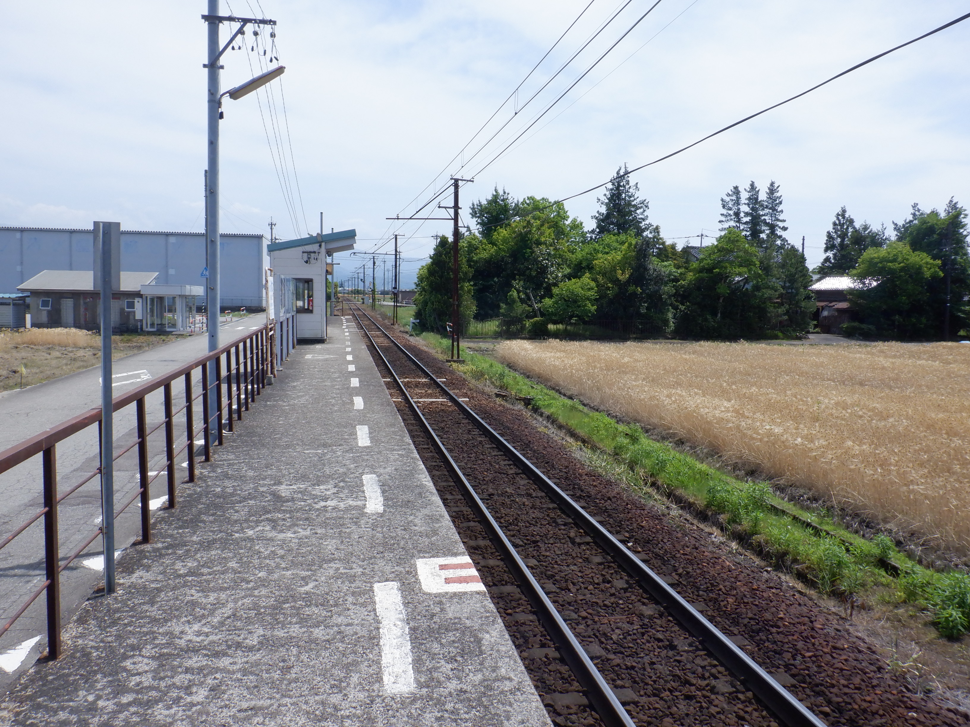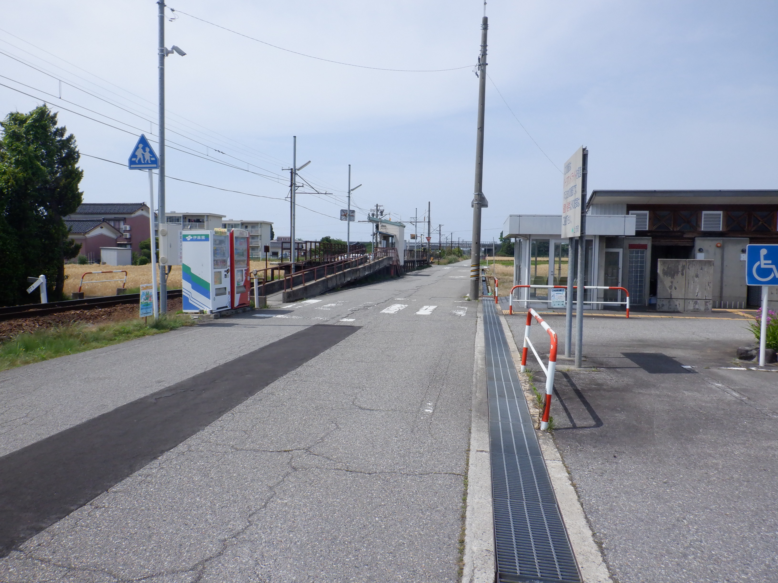 水田(年によっては麦畑)が広がる集落の近くにある駅です。また、近くには北陸自動車道の上市スマートICがあります。ホームに待合室がありますが、道路を挟んで向かい側にはパークアンドライドの駐車場とさらに待合室が整備されています。
