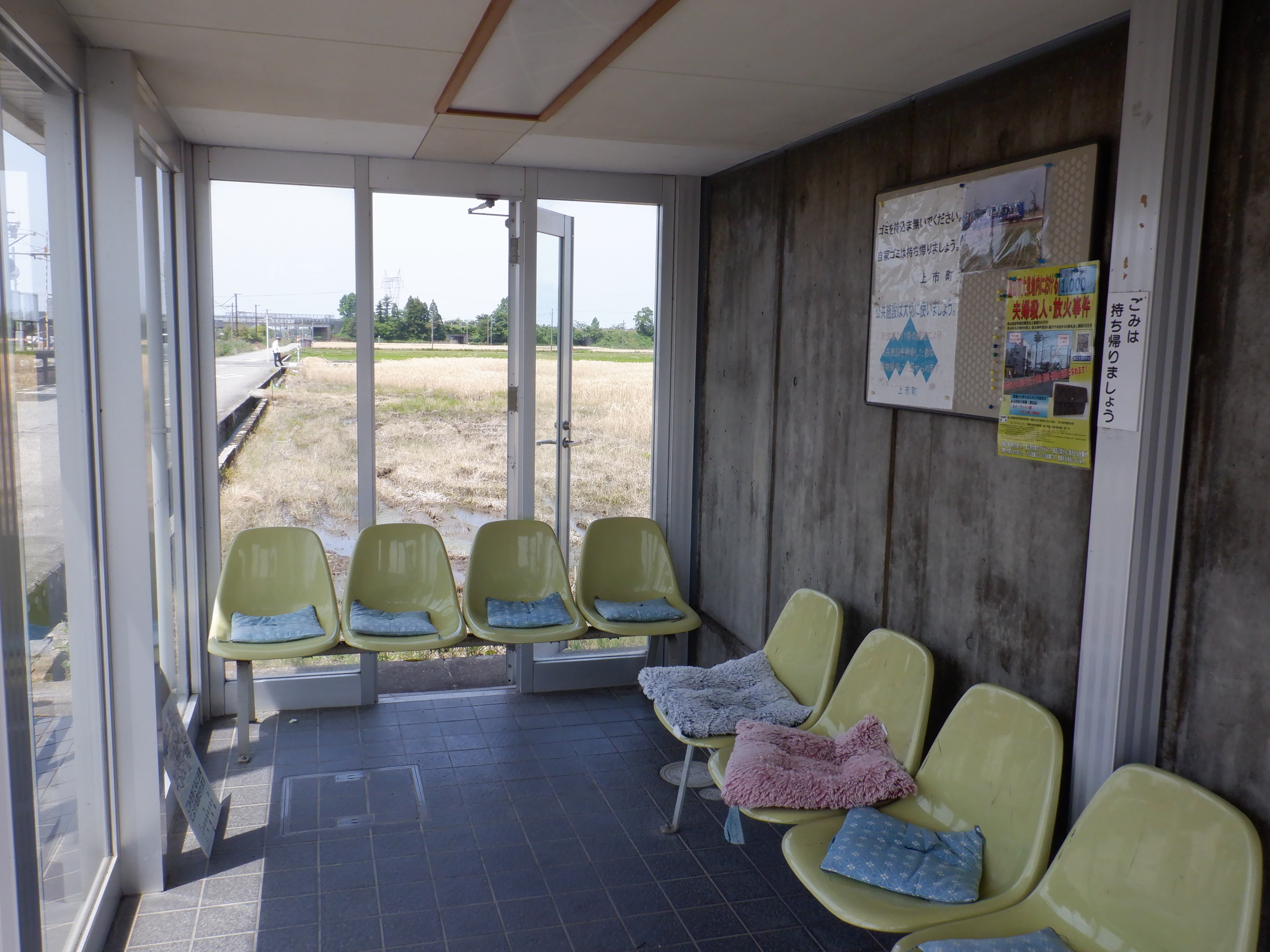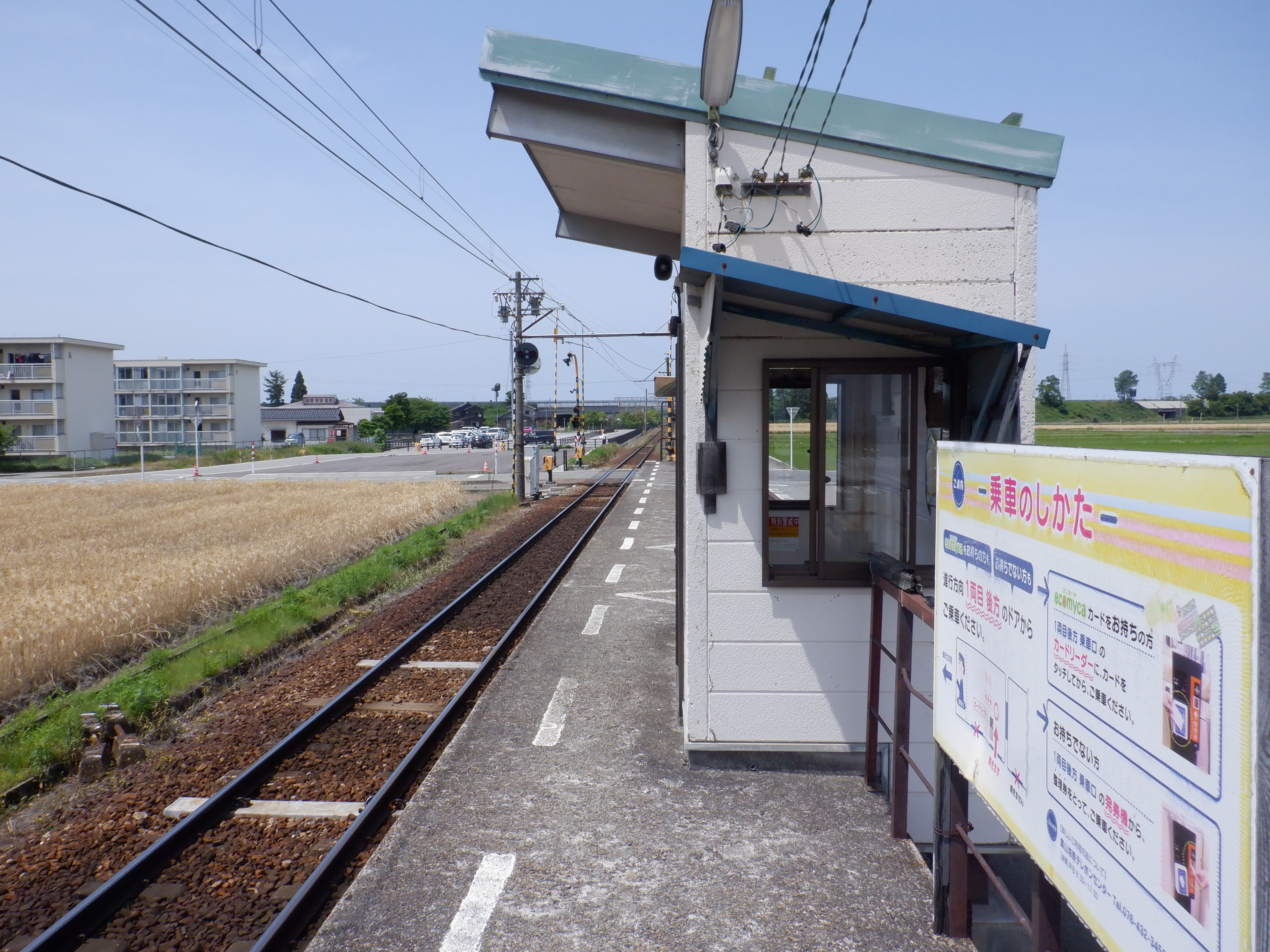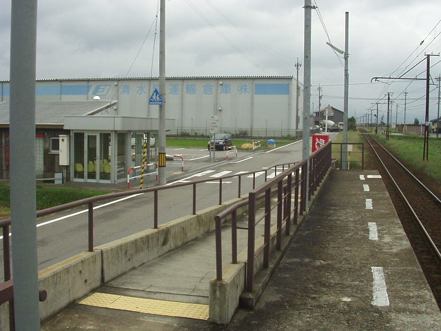 水田(年によっては麦畑)が広がる集落の近くにある駅です。また、近くには北陸自動車道の上市スマートICがあります。ホームに待合室がありますが、道路を挟んで向かい側にはパークアンドライドの駐車場とさらに待合室が整備されています。