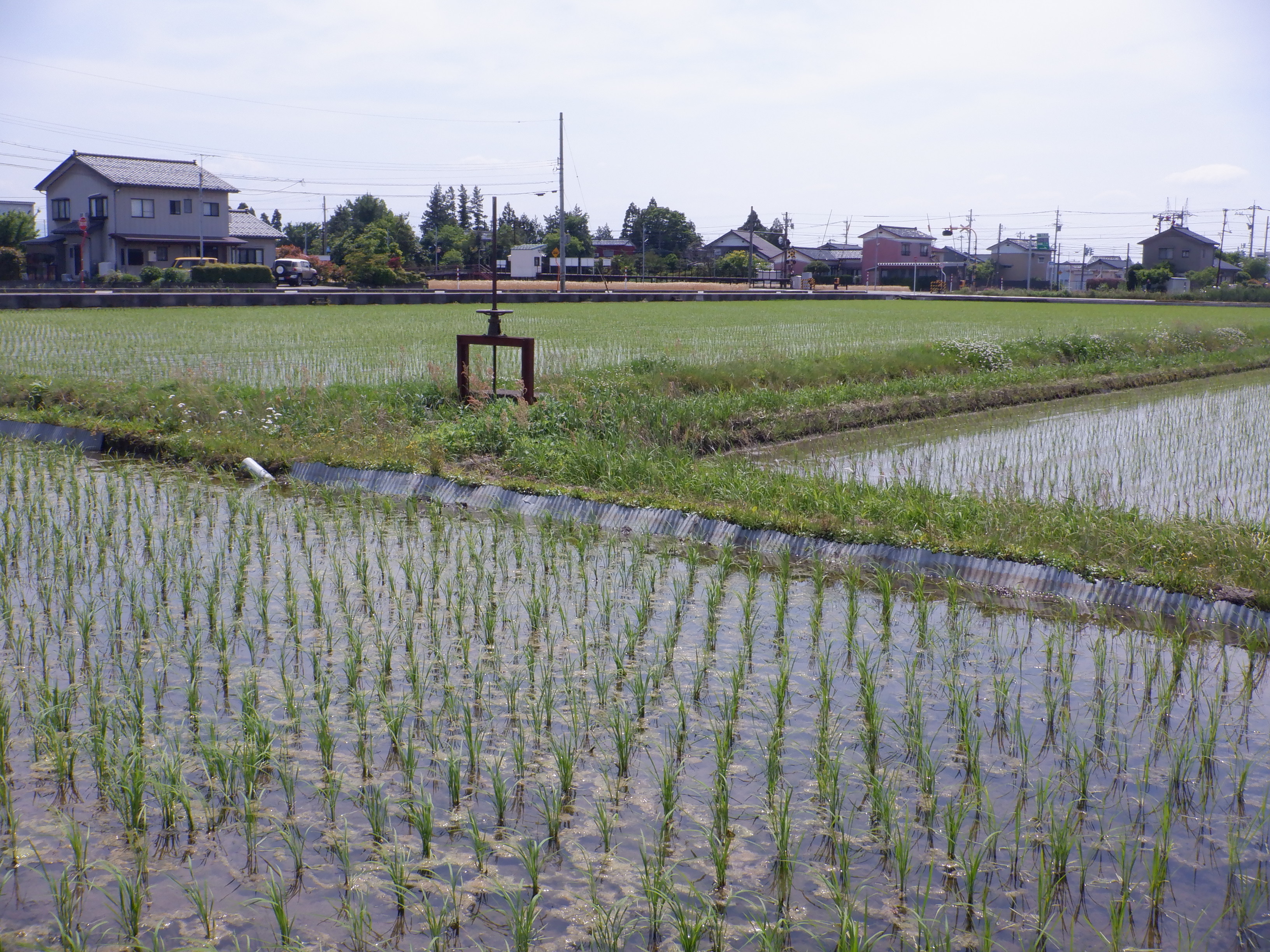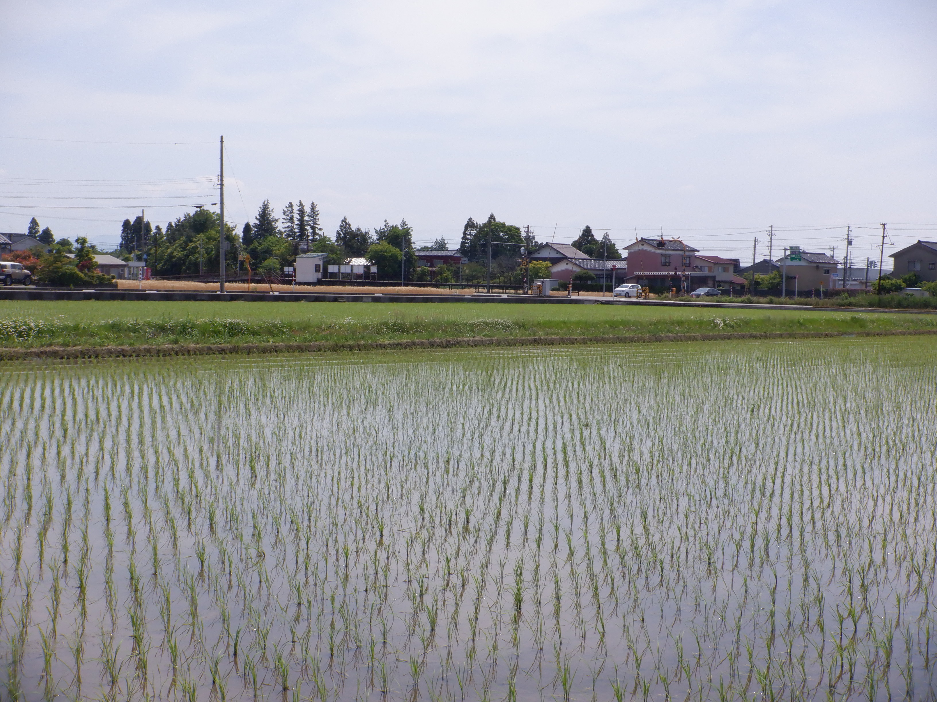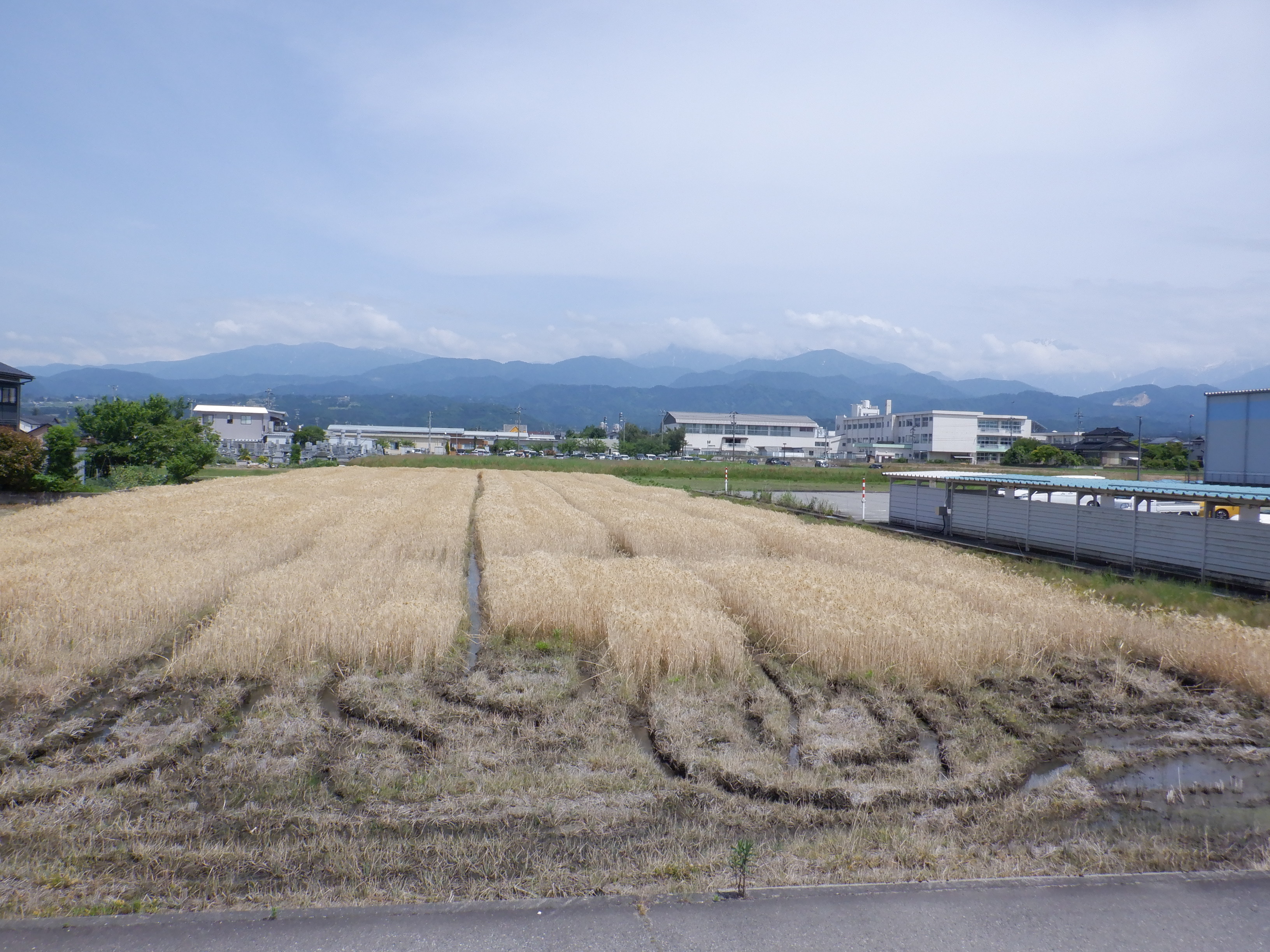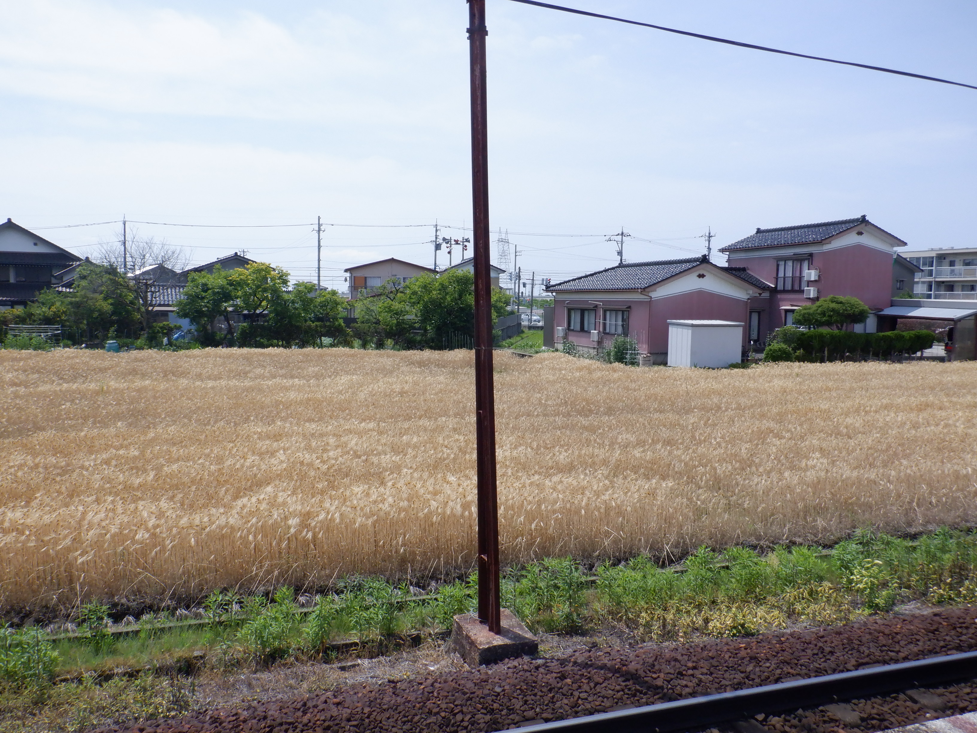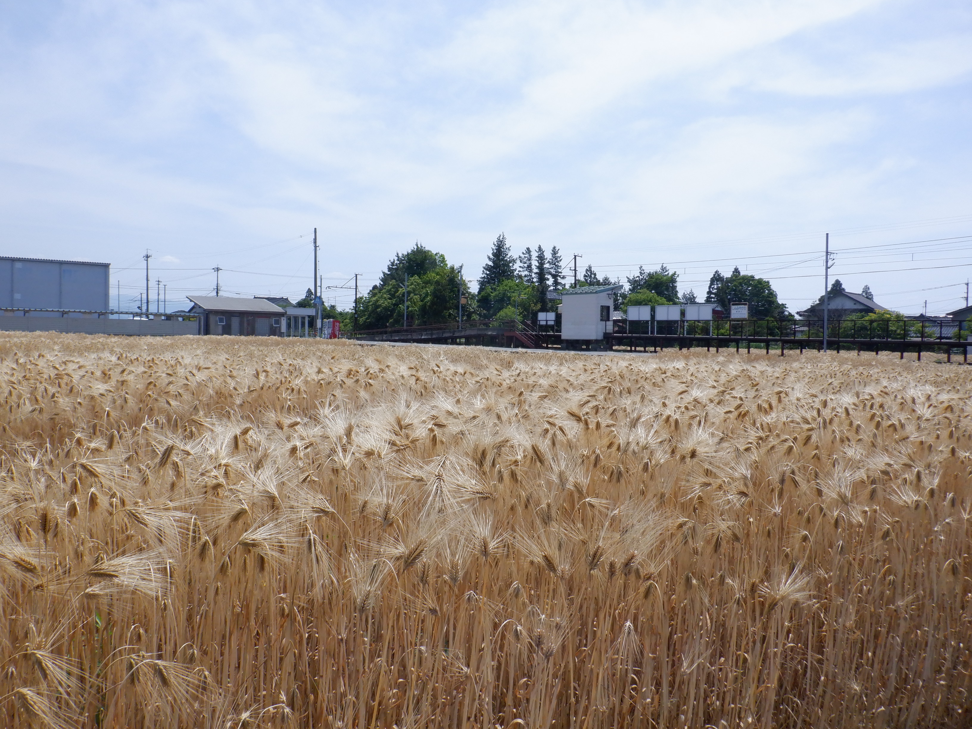 ホームから見た線路の反対側の様子。この年は麦が植えられていてちょうど麦秋のシーズンでした。