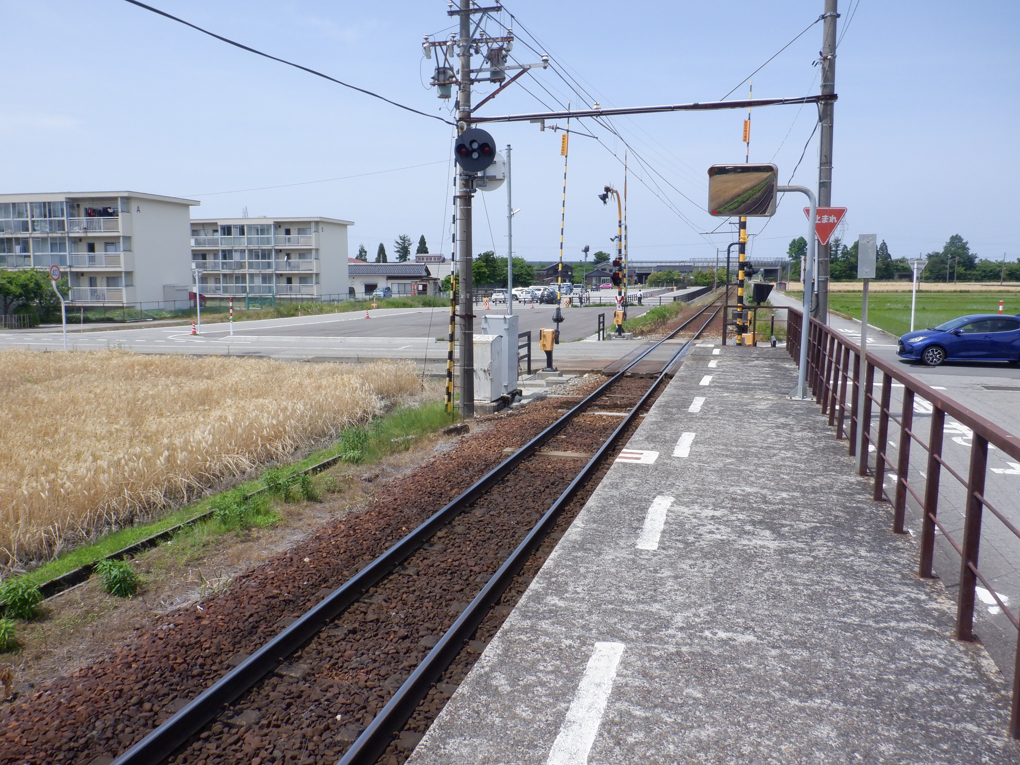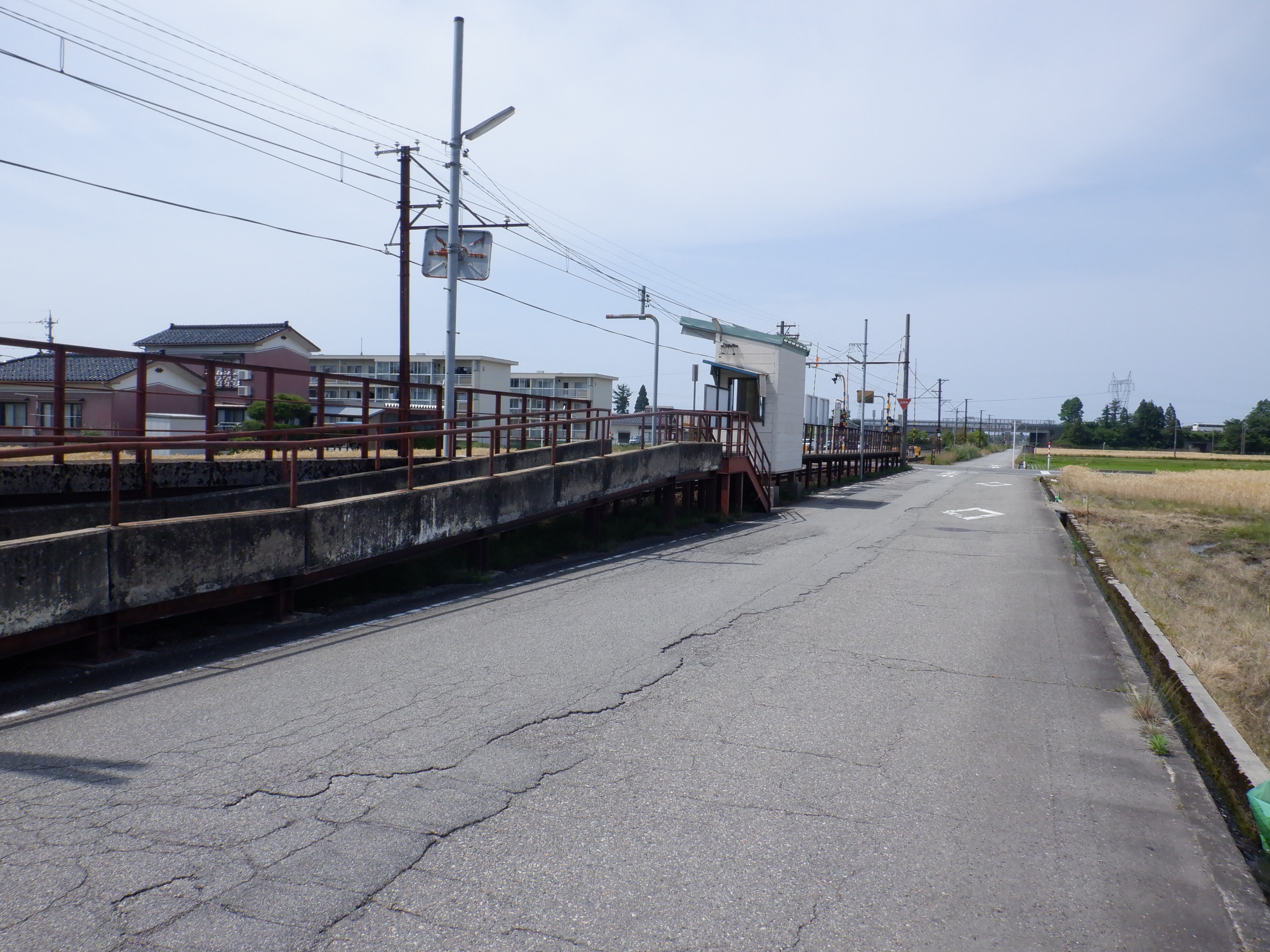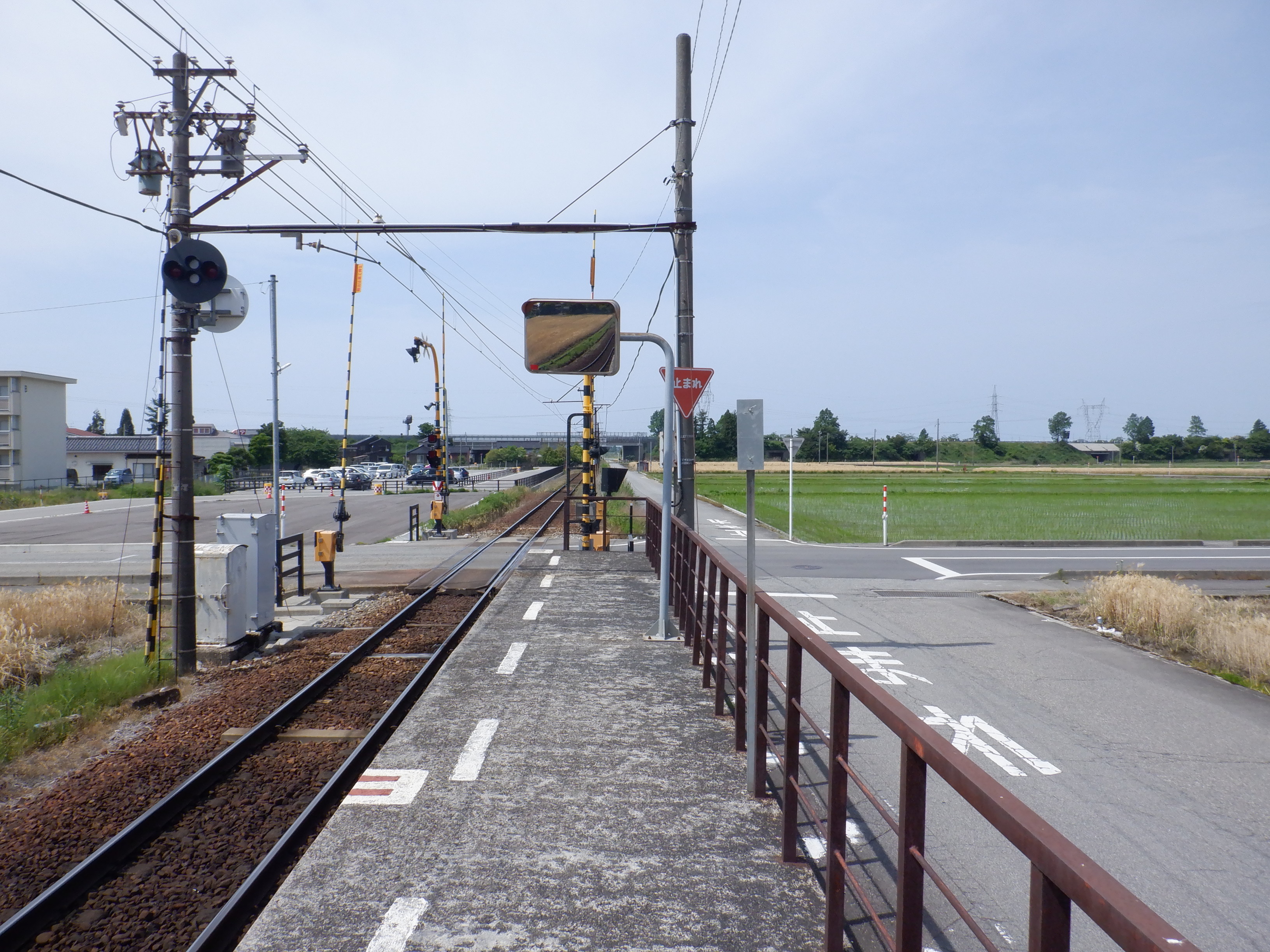 駅のそばの踏切がある道をホーム側に少し進みます。