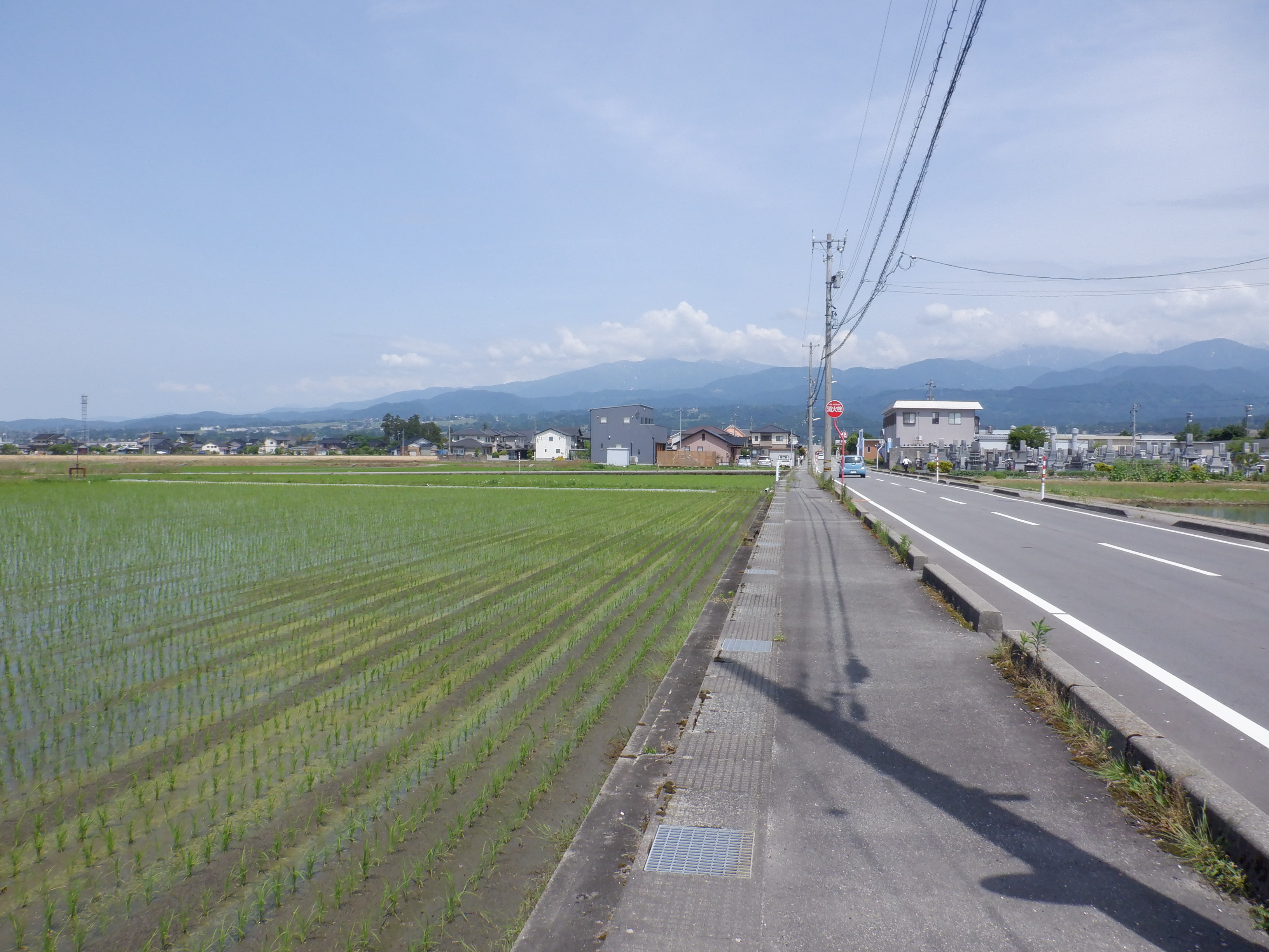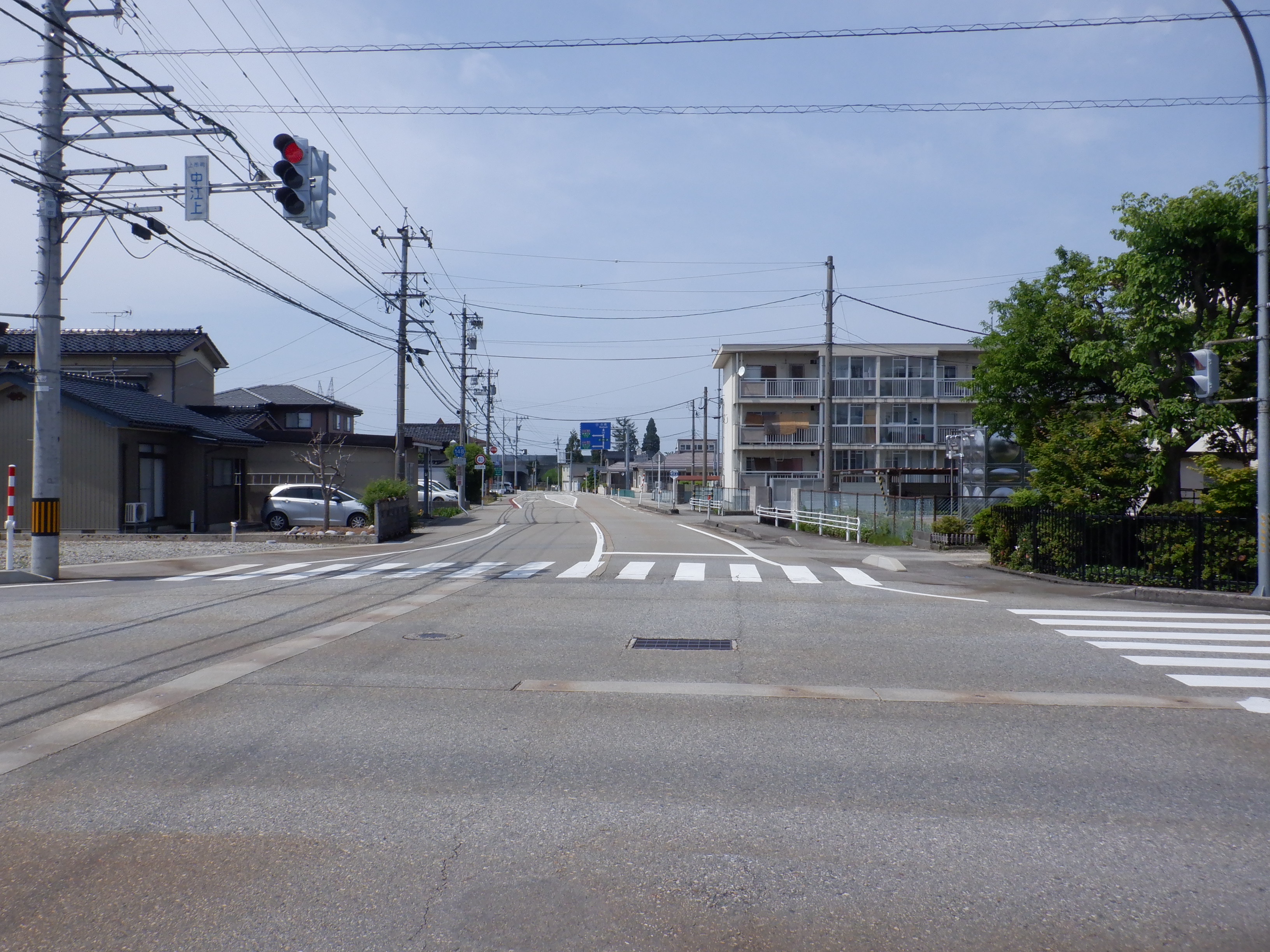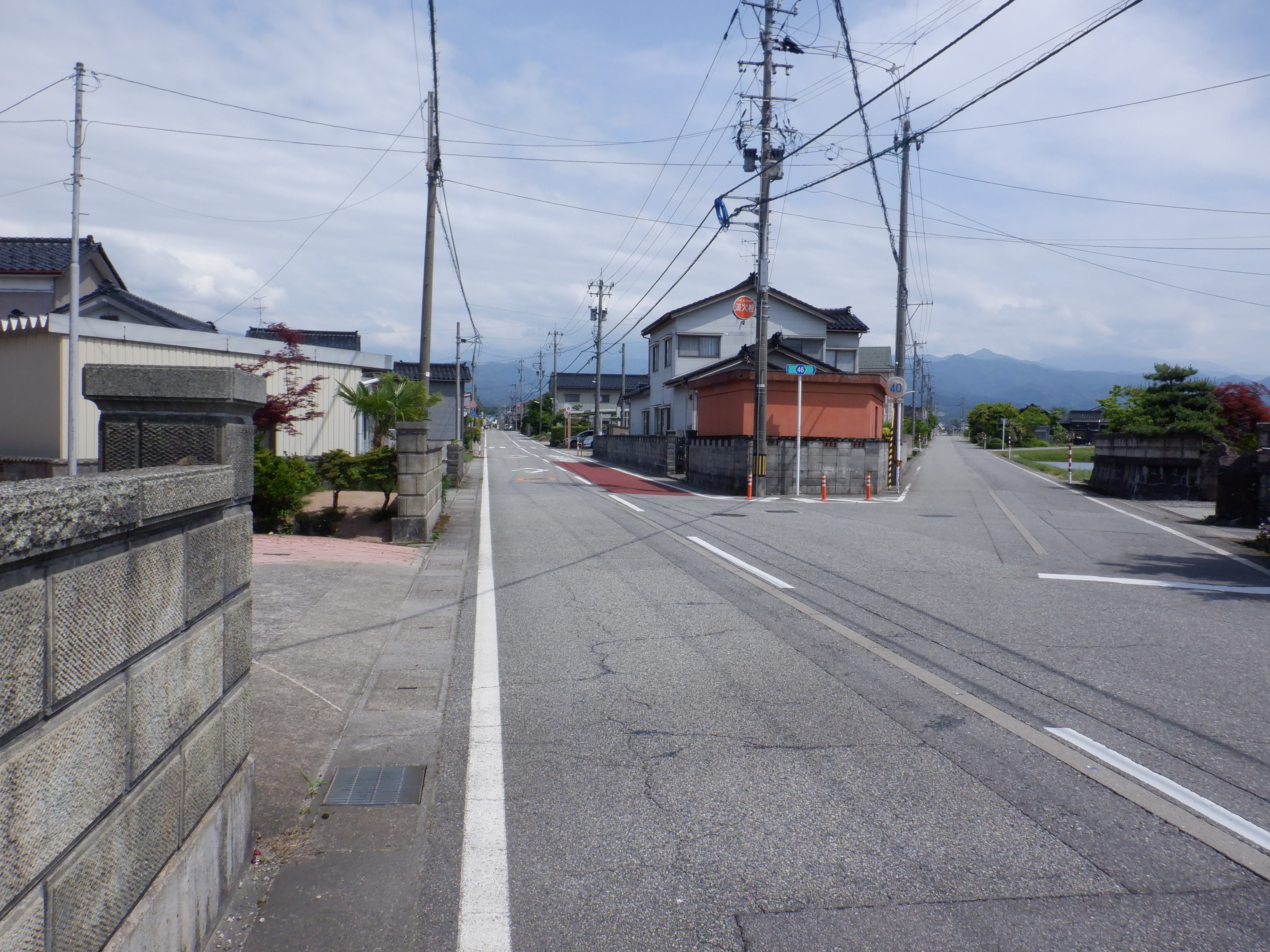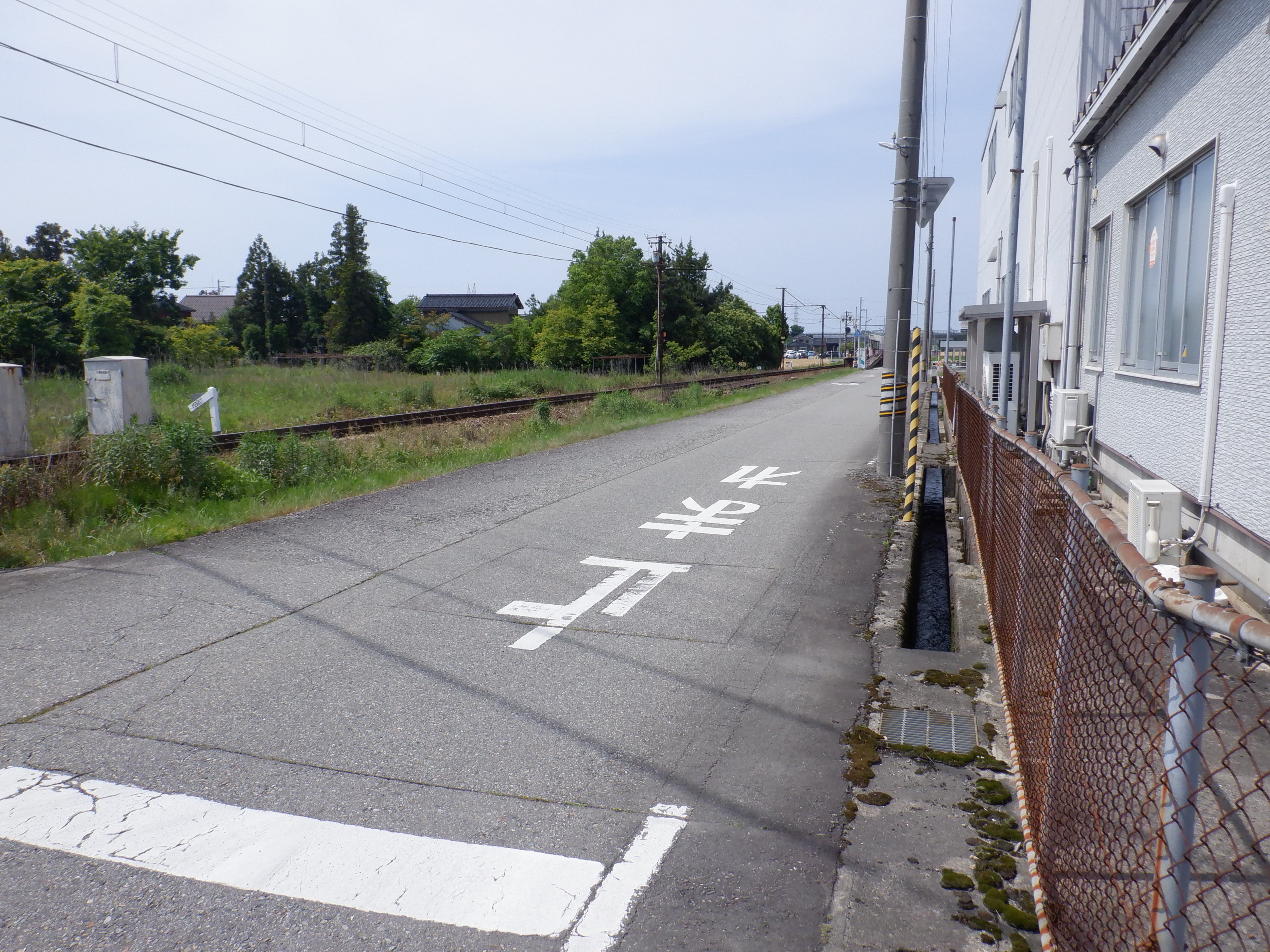 今度は交差点から線路と平行に、上市駅側に進みます。