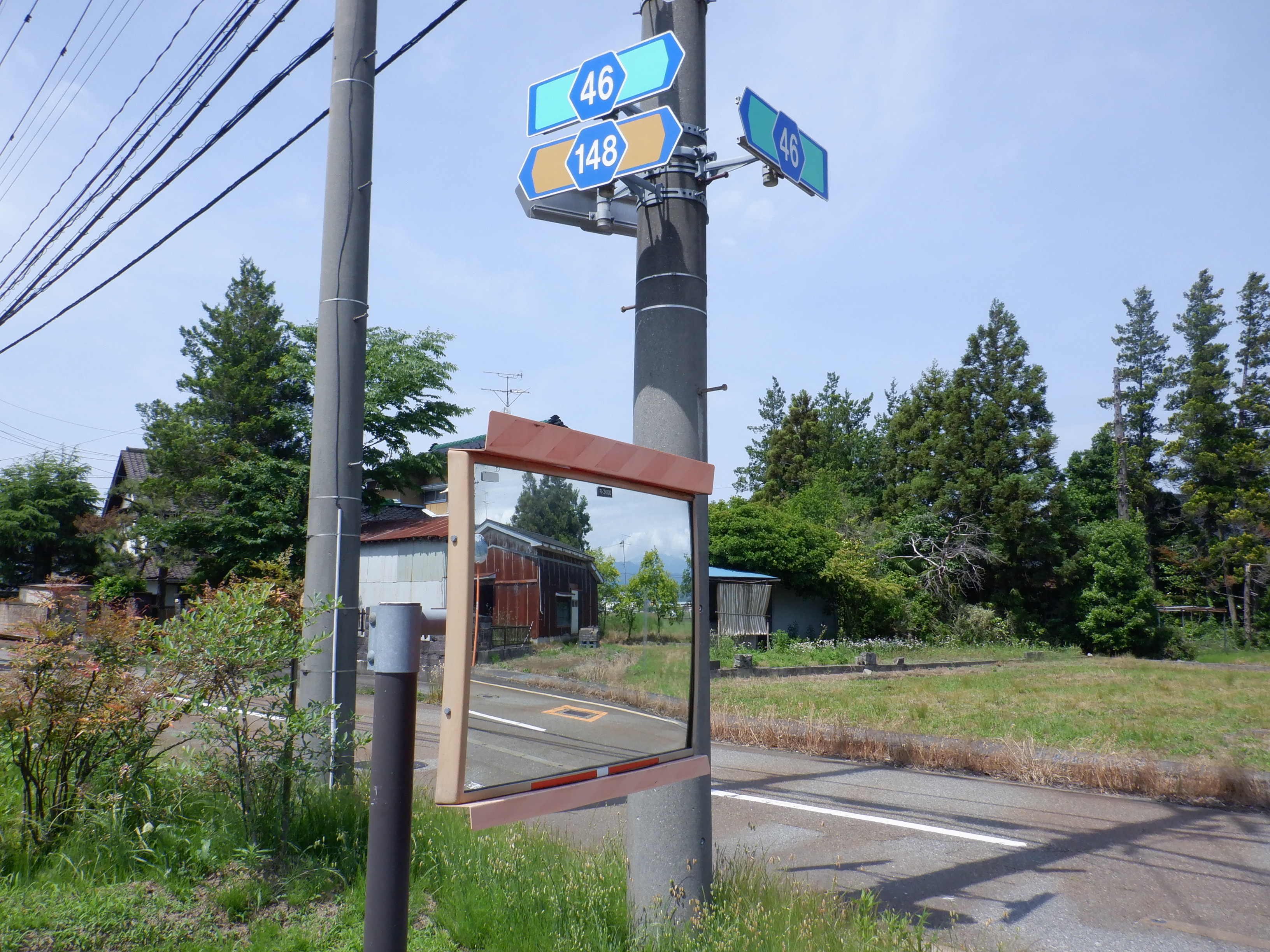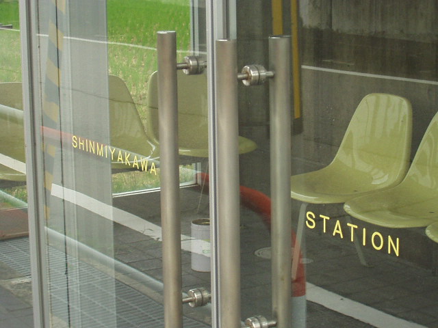 上市駅側のワンマンミラーとその配線。この画像で待合室側にある支柱がかつてのワンマンミラーの位置だったようです。(当ページ下部の2005年の様子参照。)