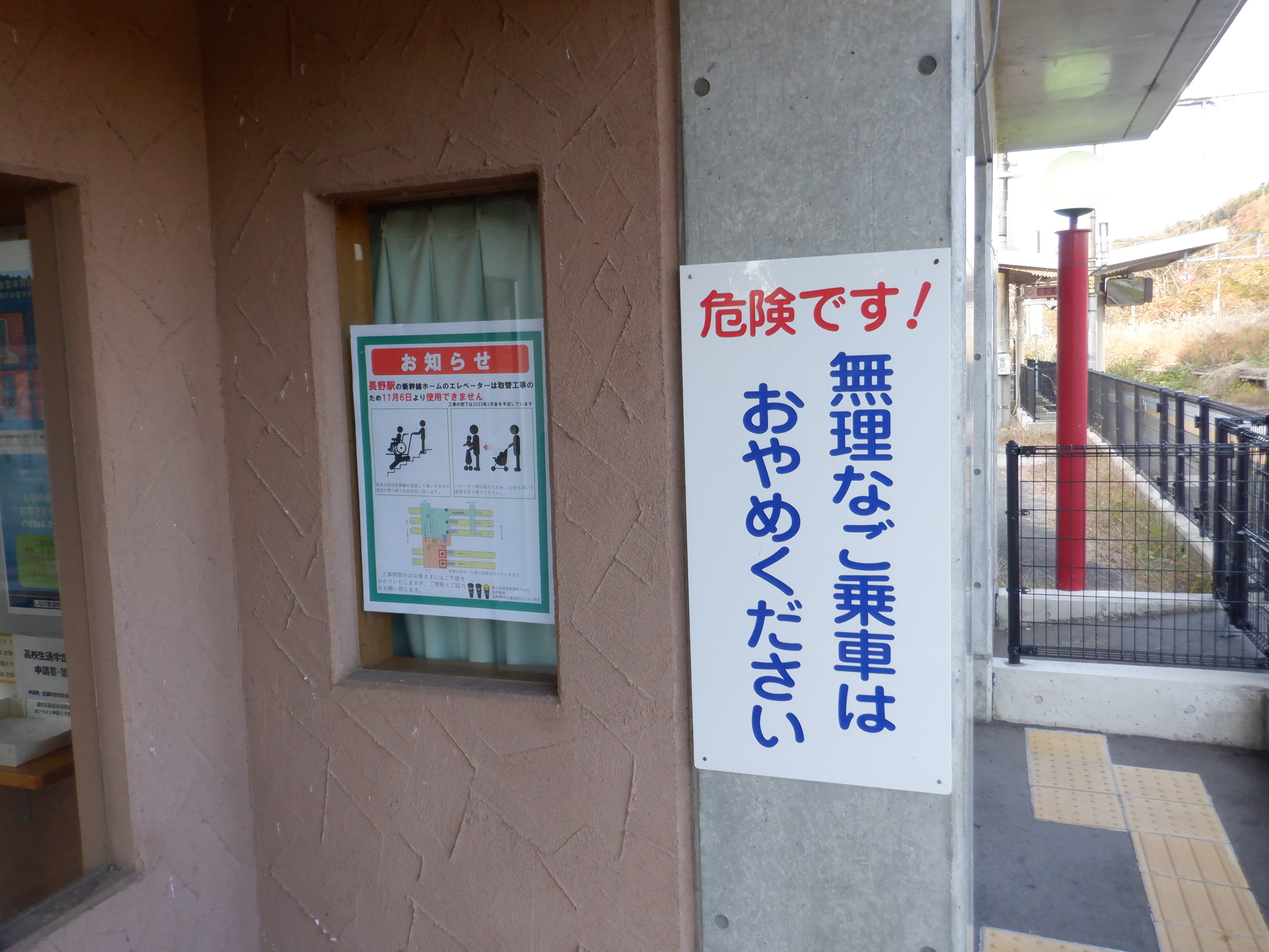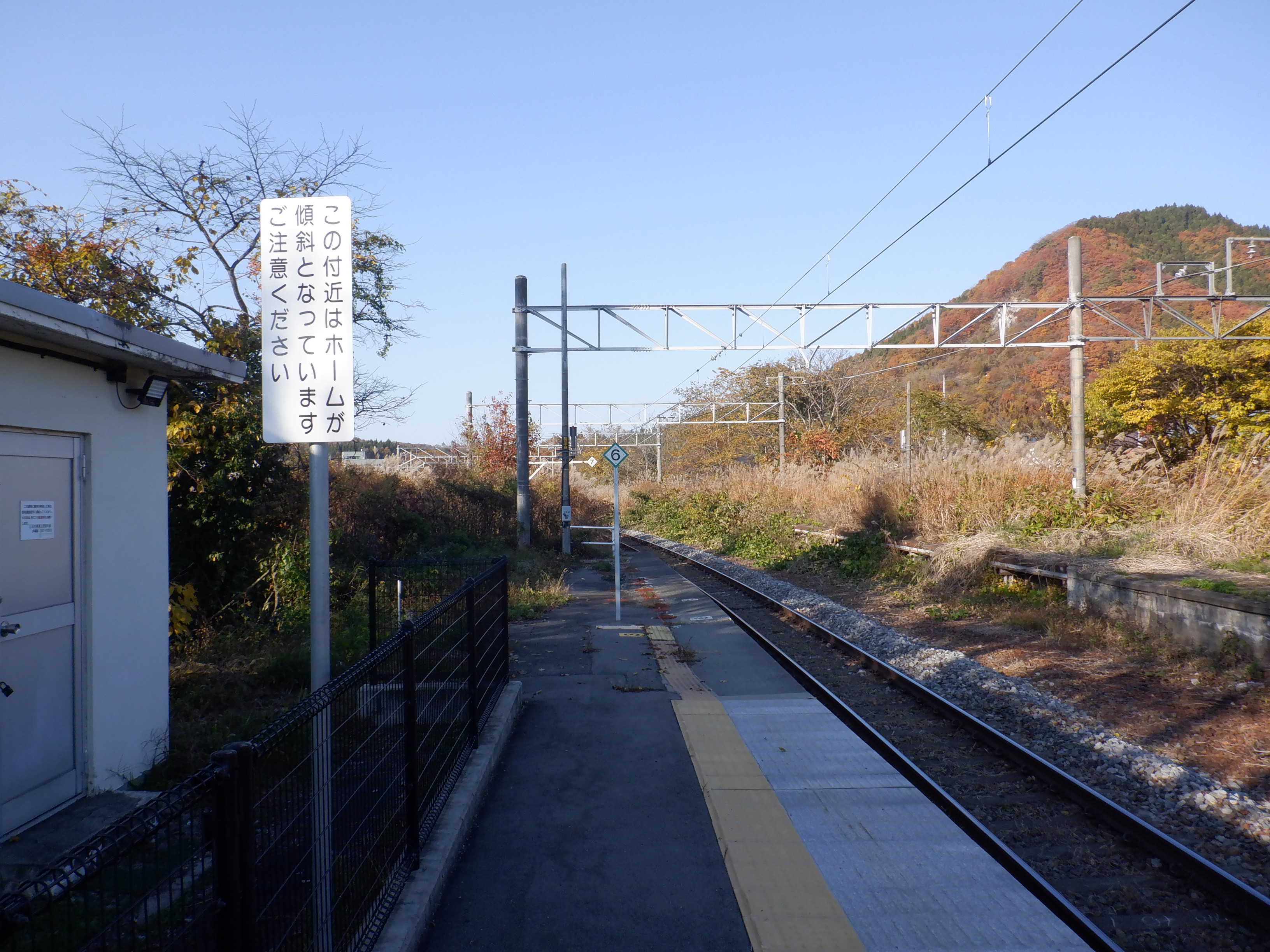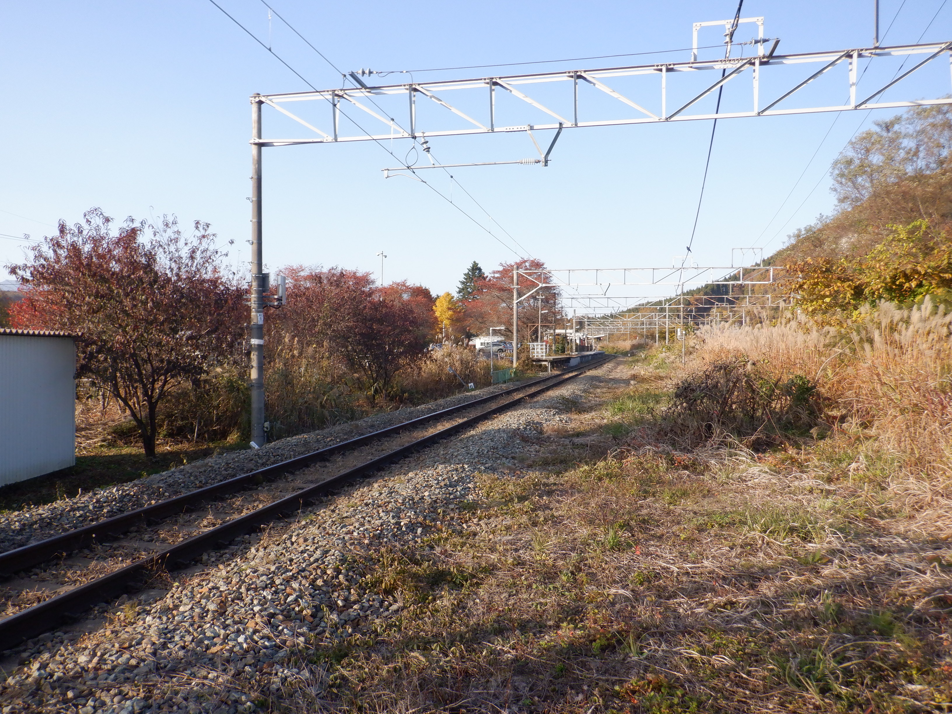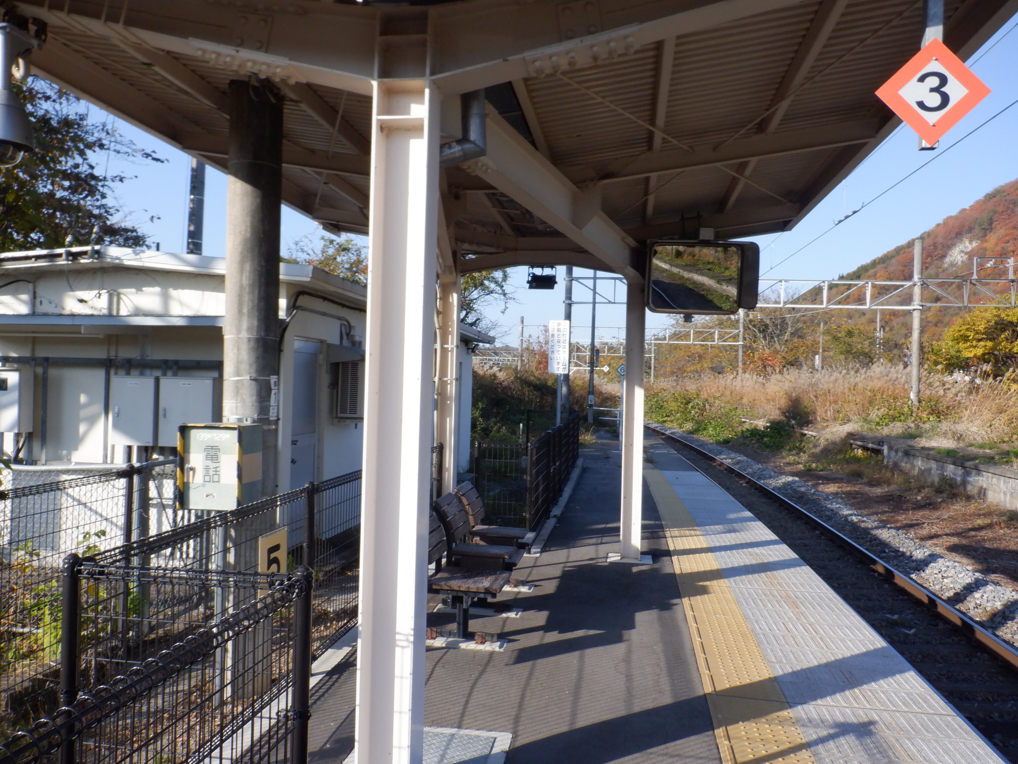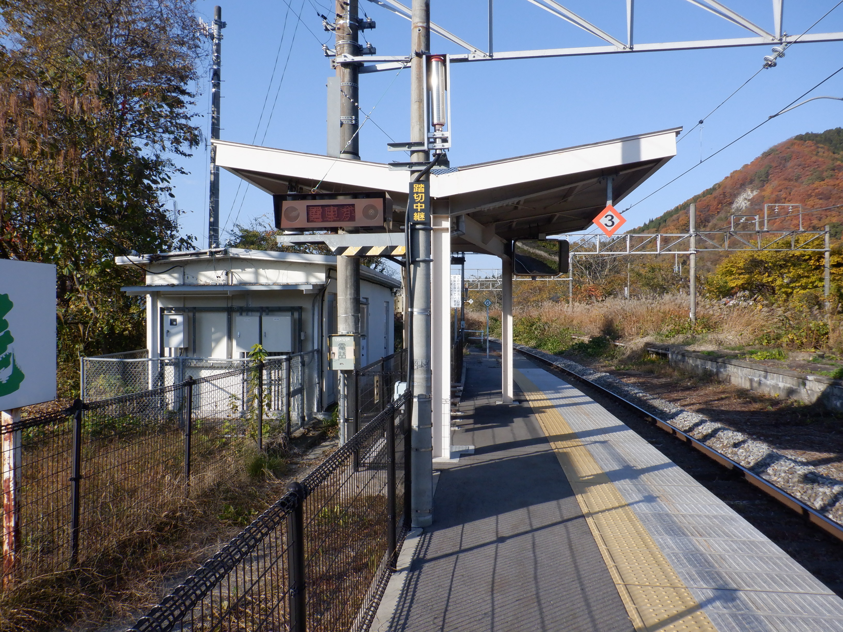 ホームの黒姫側に少し離れて上屋があります。その付近に継電器室があります。