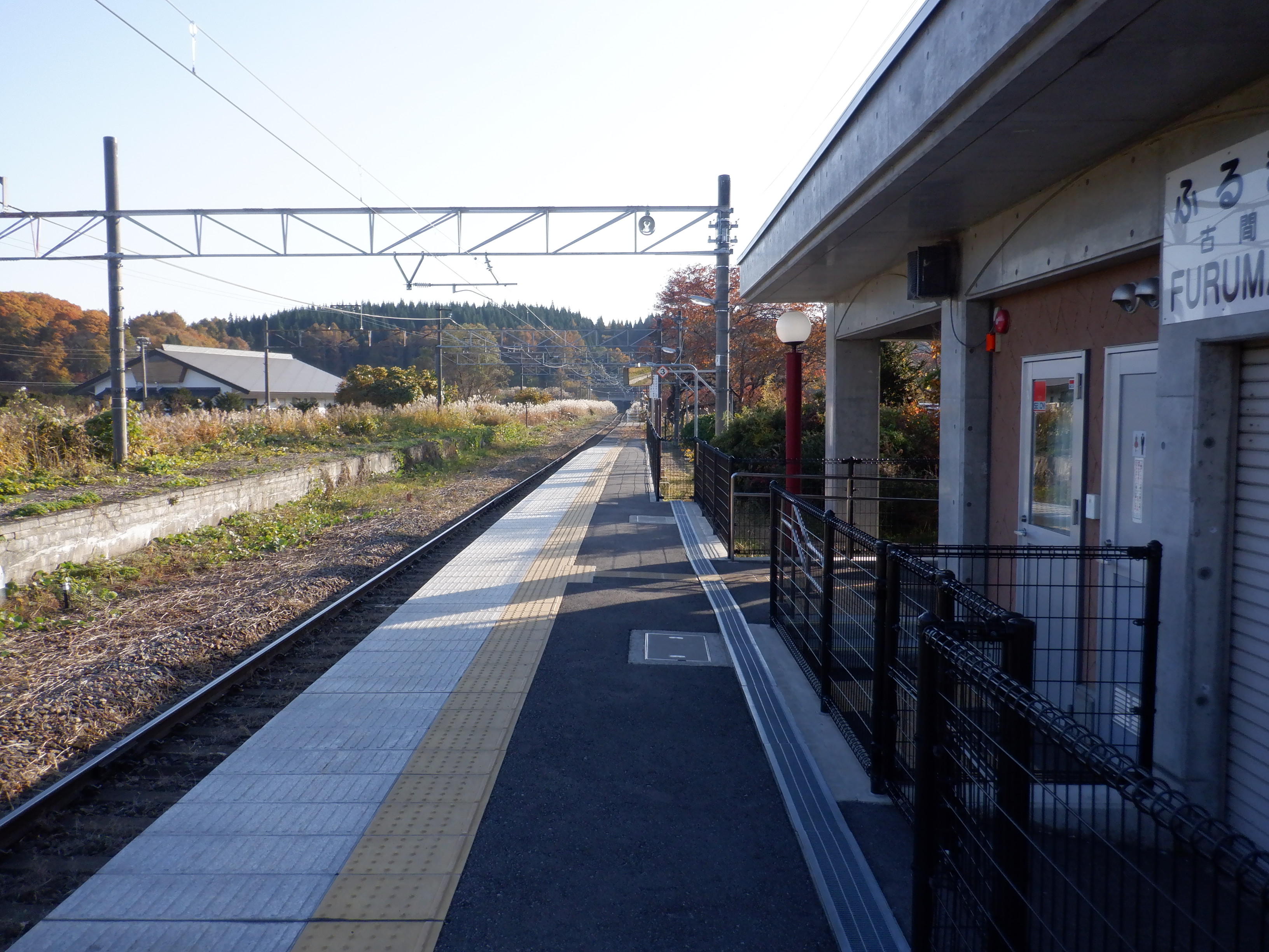 駅舎と反対側から見た古間駅の様子。
