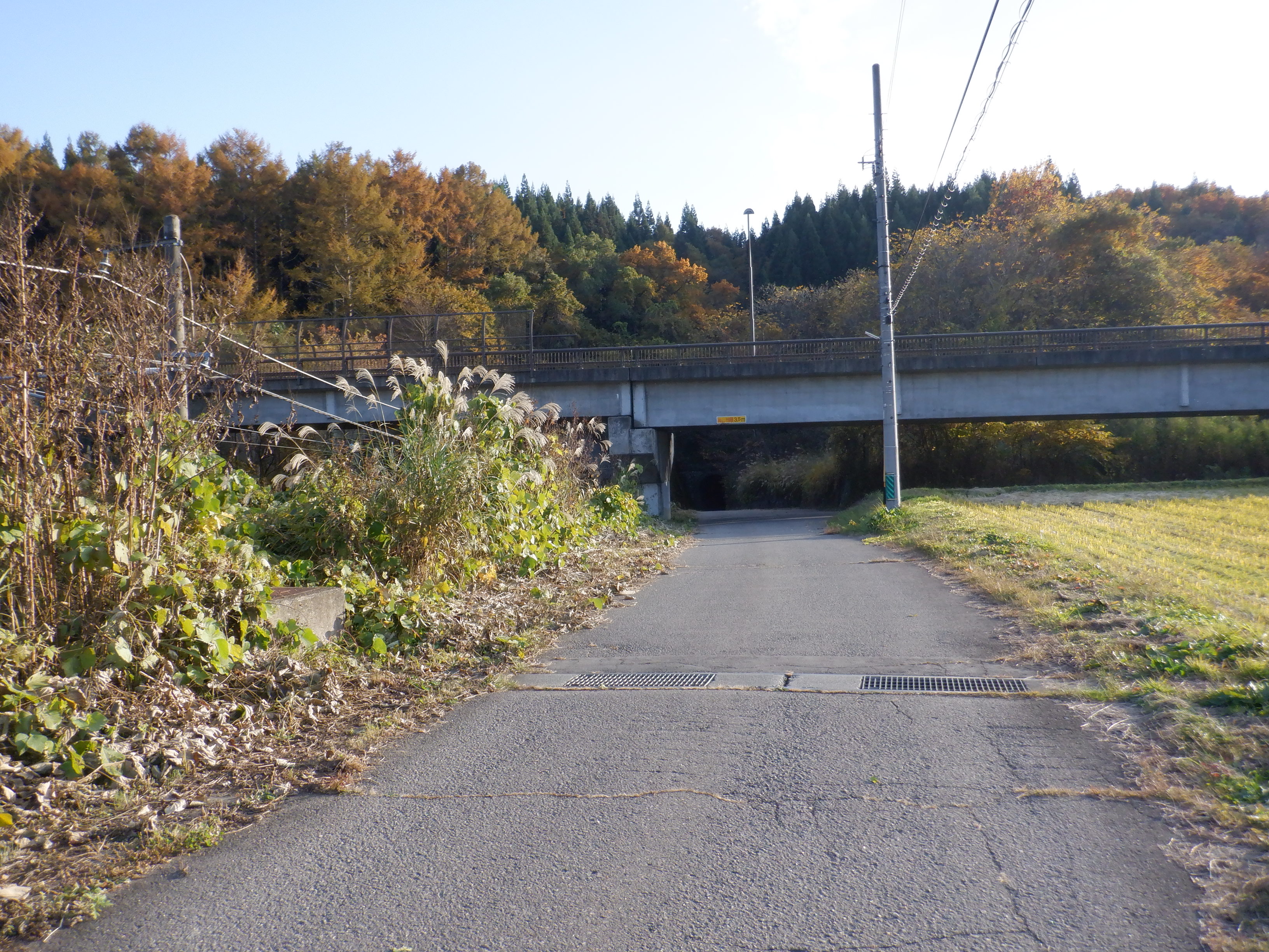 途中、踏切があります。そこから見た様子。(すぐに元の道に戻ります。)