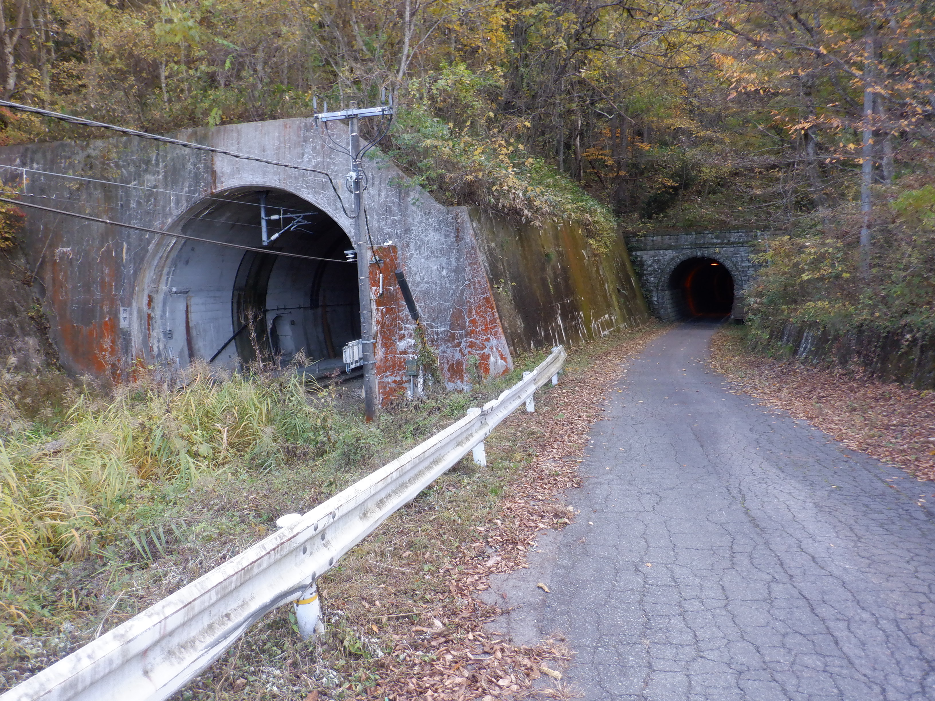 現在の北しなの線のトンネルの横に旧戸草トンネルが見えてきました。