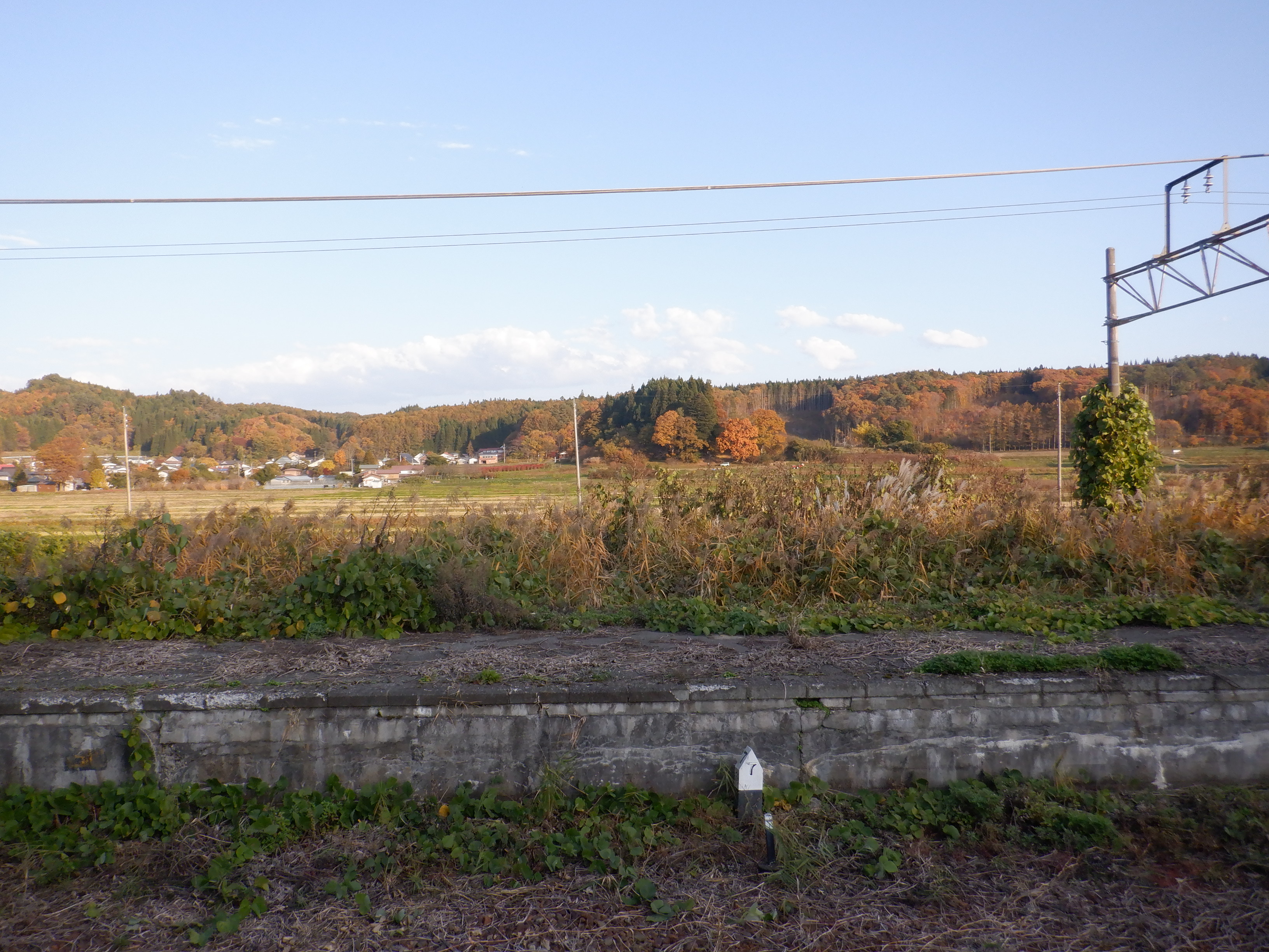 ホームから見た駅舎と反対側の風景。