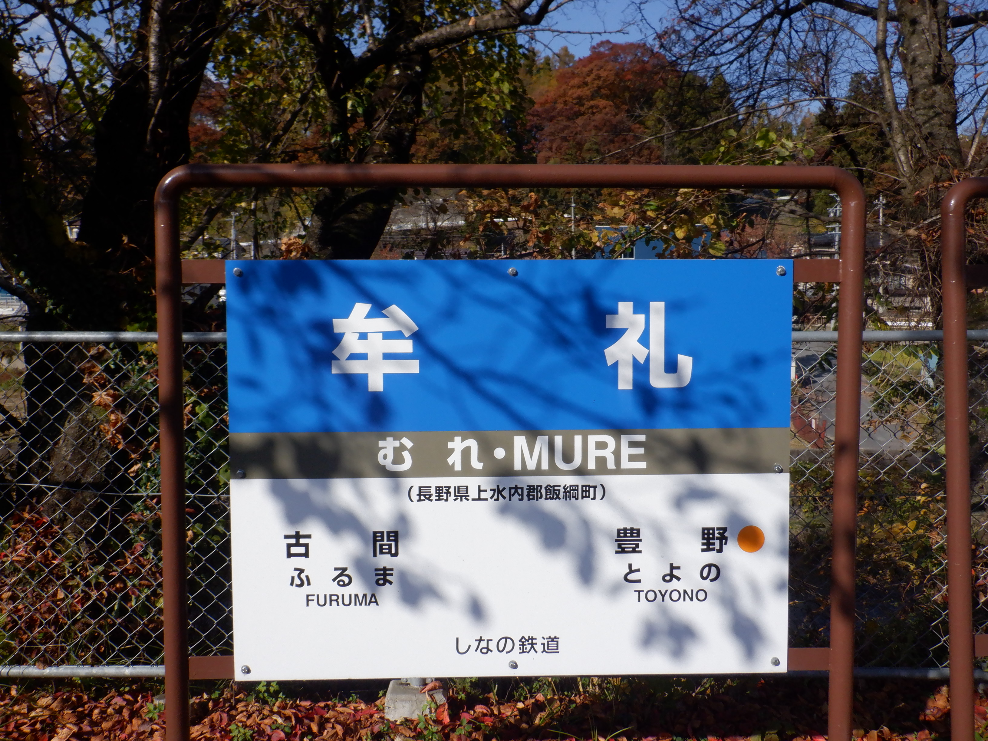 神社の脇を通り、牟礼駅を見おろしたところ。