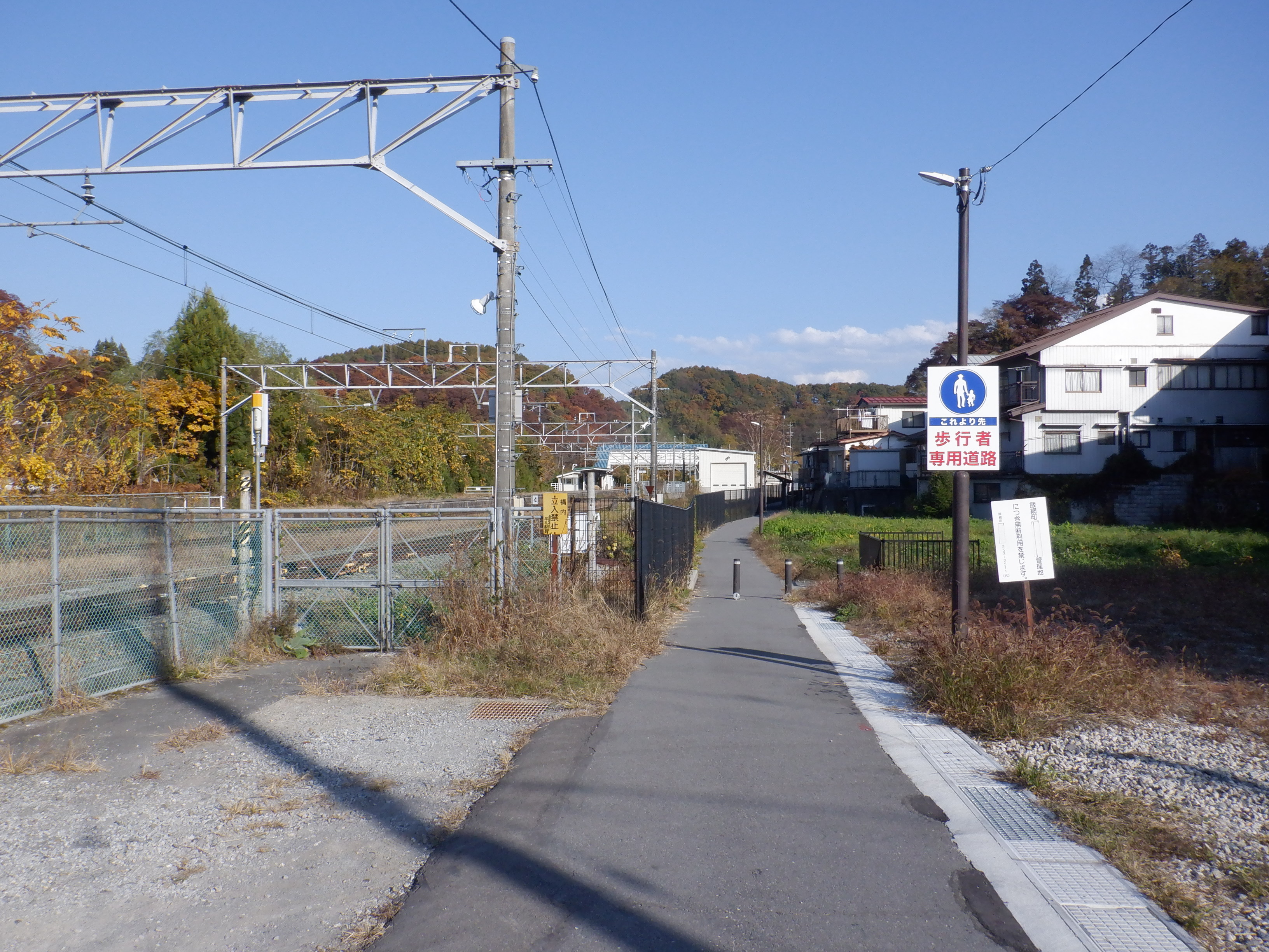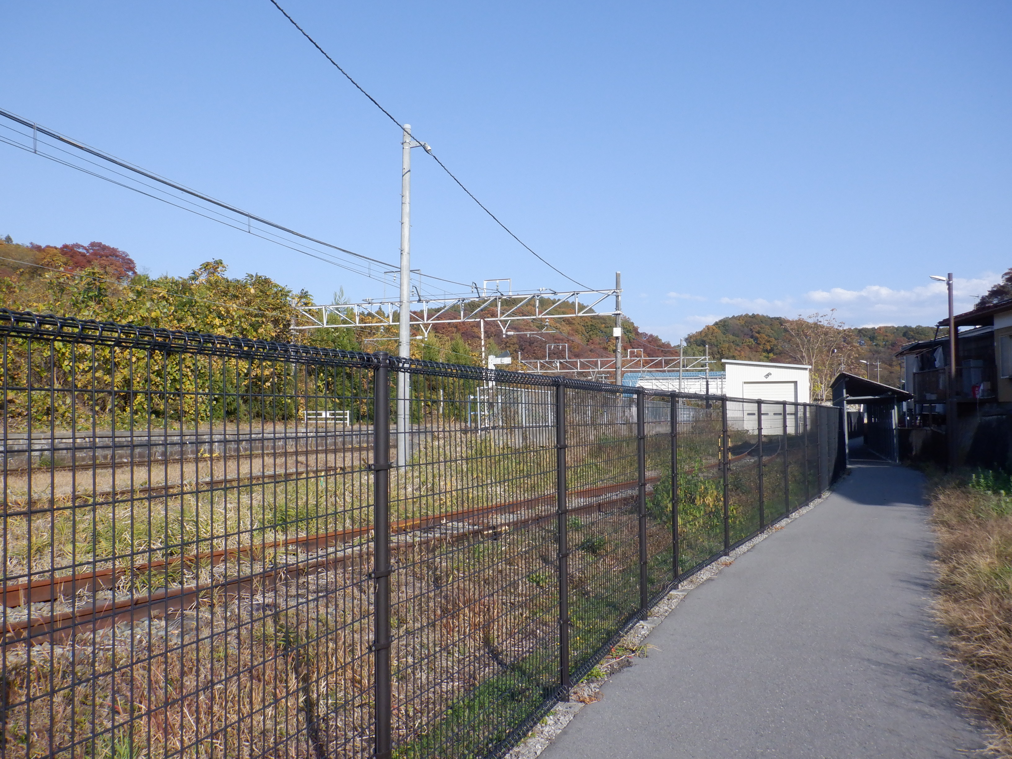 踏切を渡り、先ほどの道へ戻らずに線路沿いの小道を進みます。
