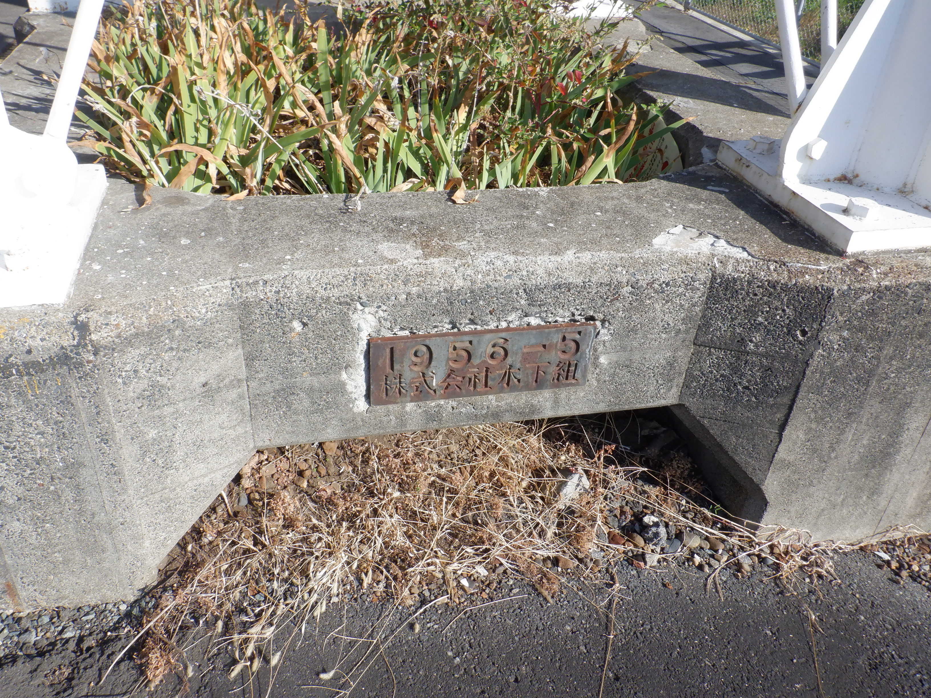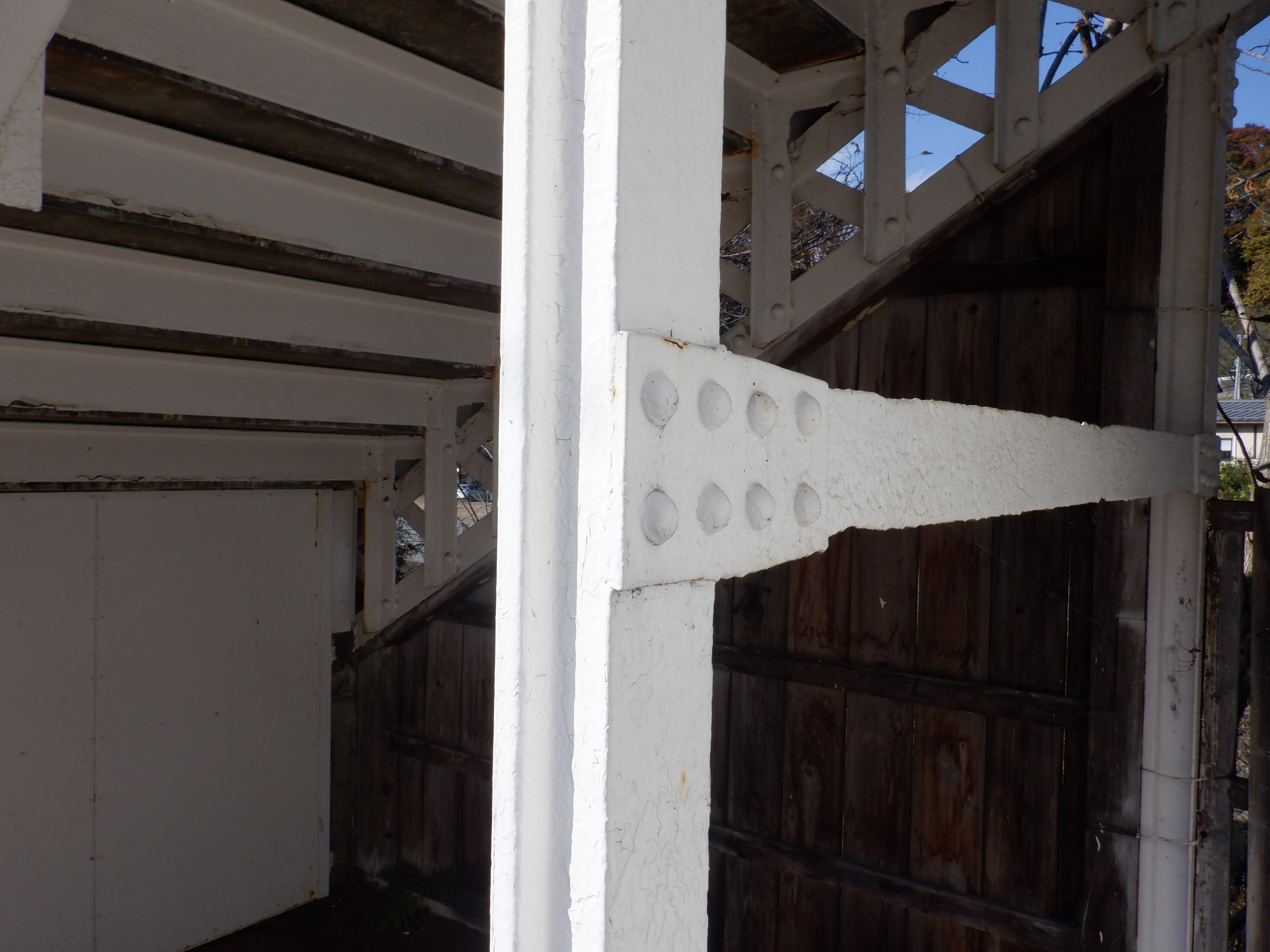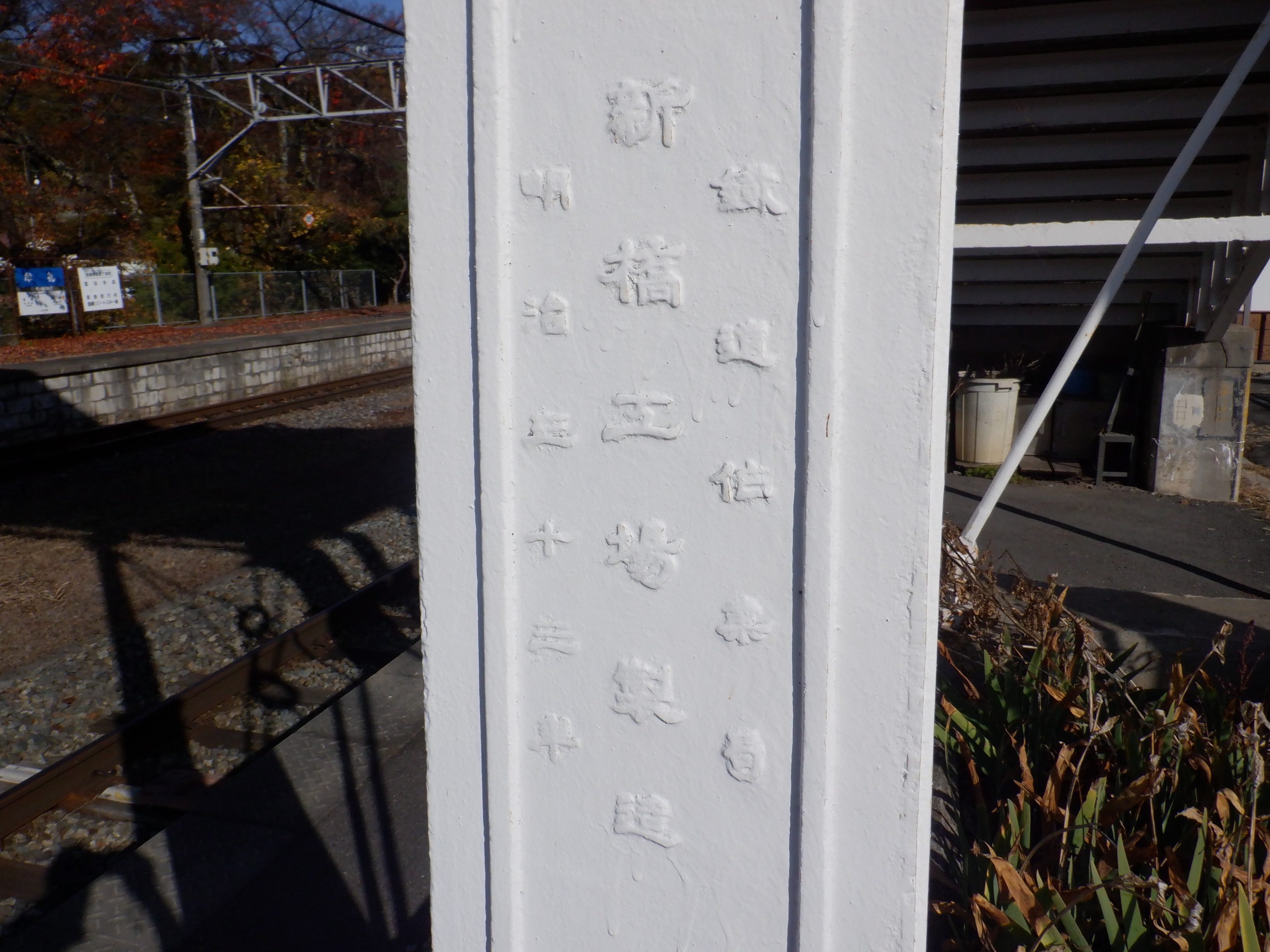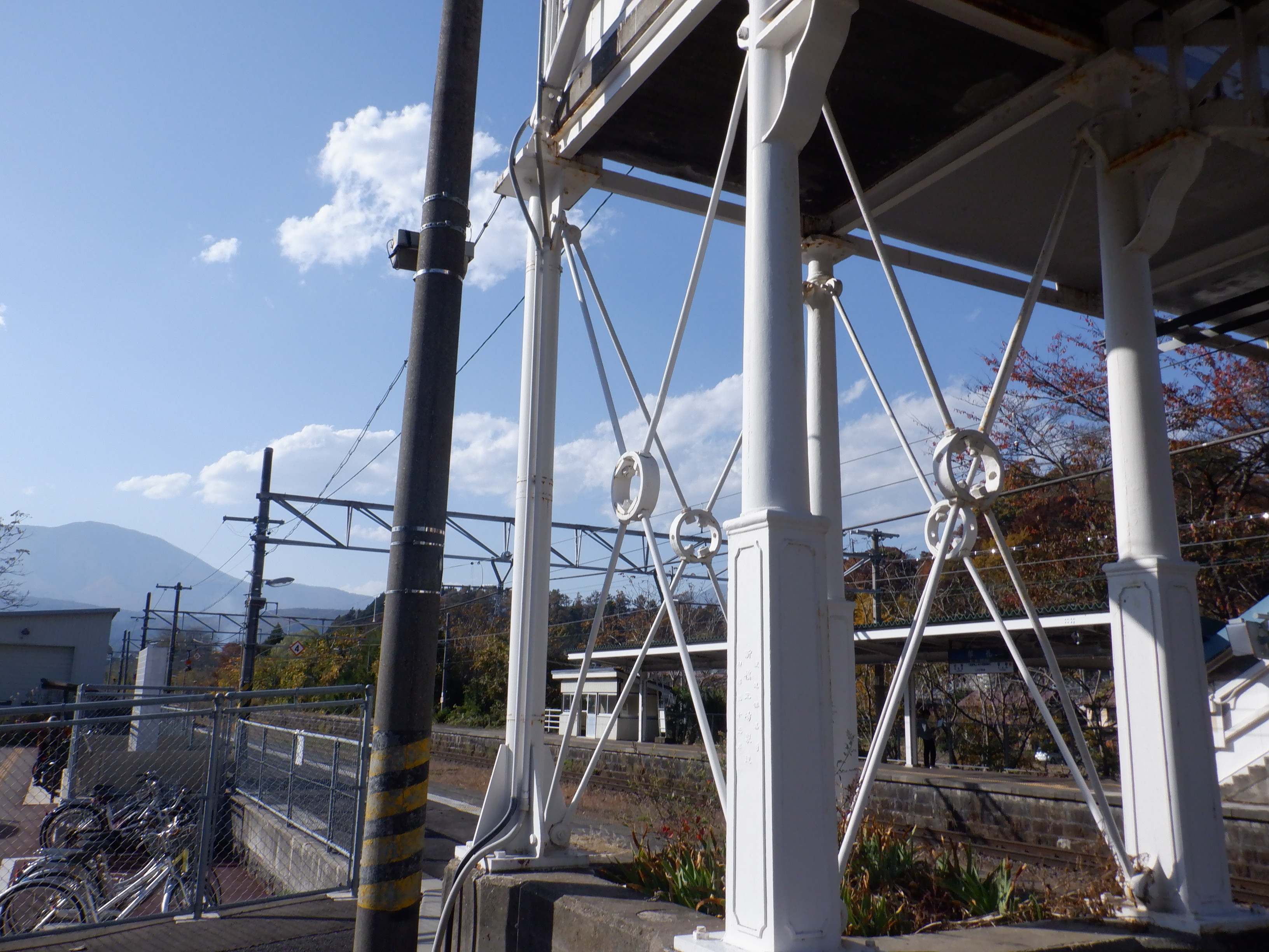 1番線の跨線橋支柱。明治33年の製造で、1956年に豊野駅から移築したという経緯が見えます。