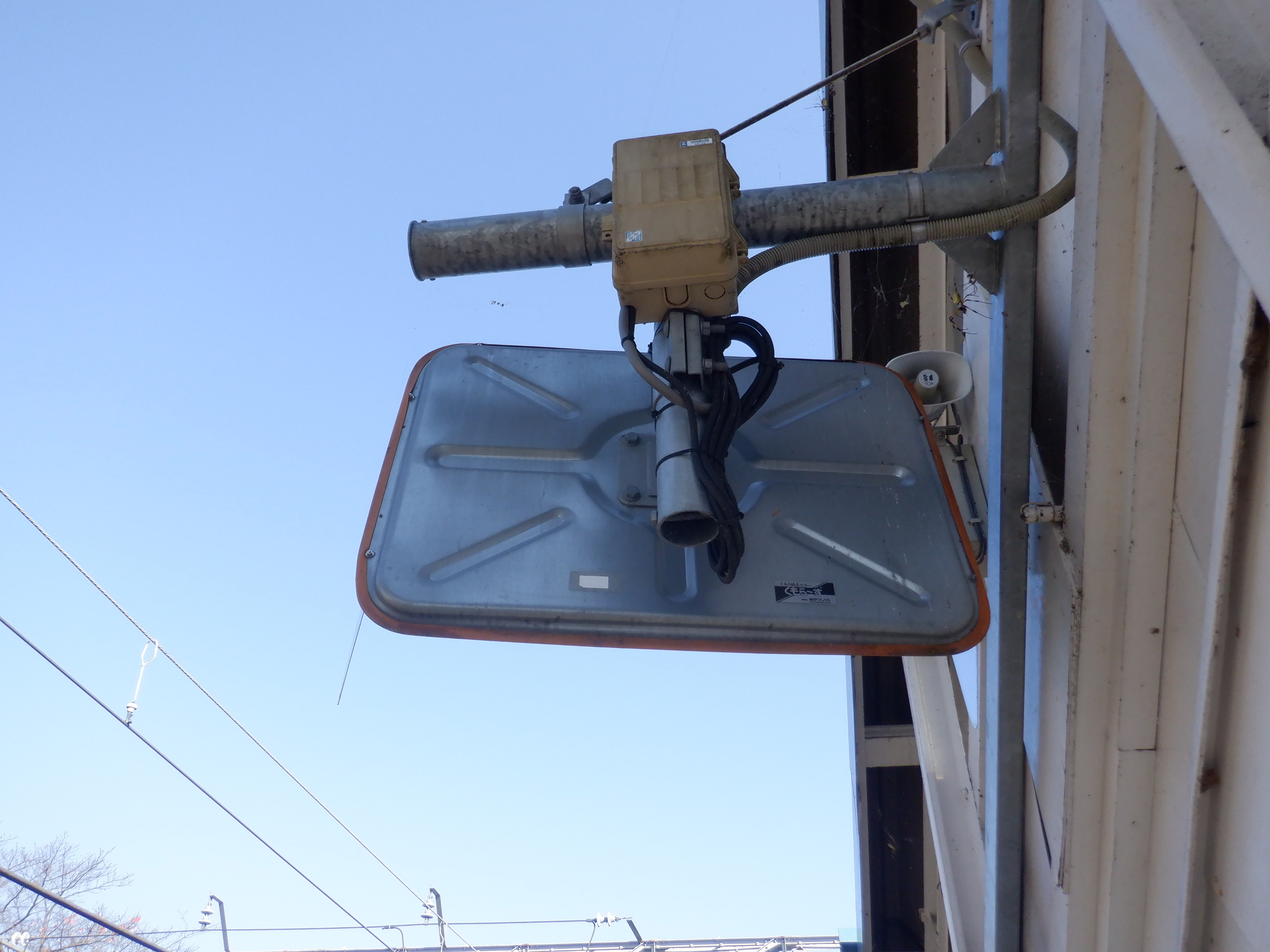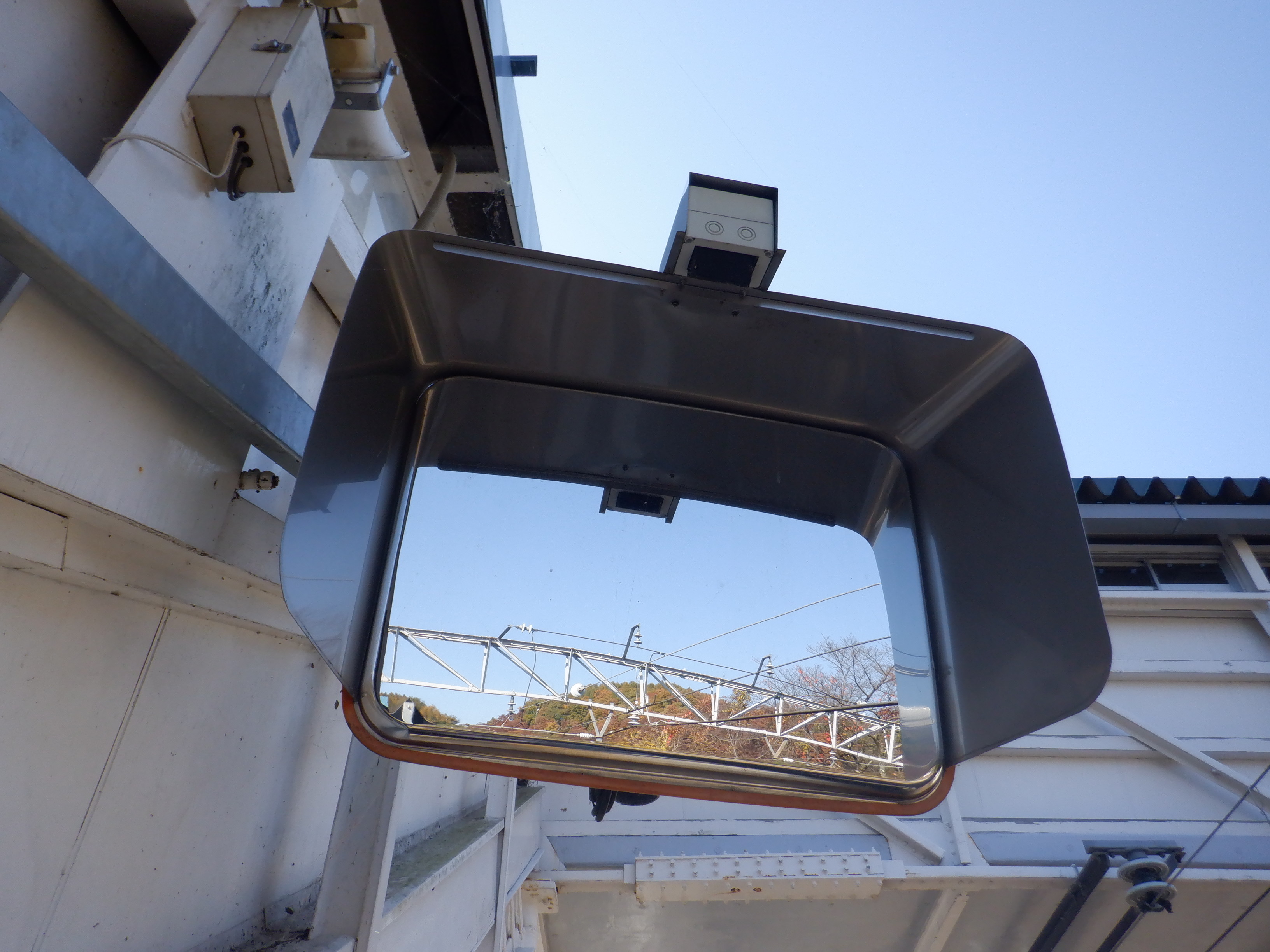 跨線橋の入口にあるミラー。