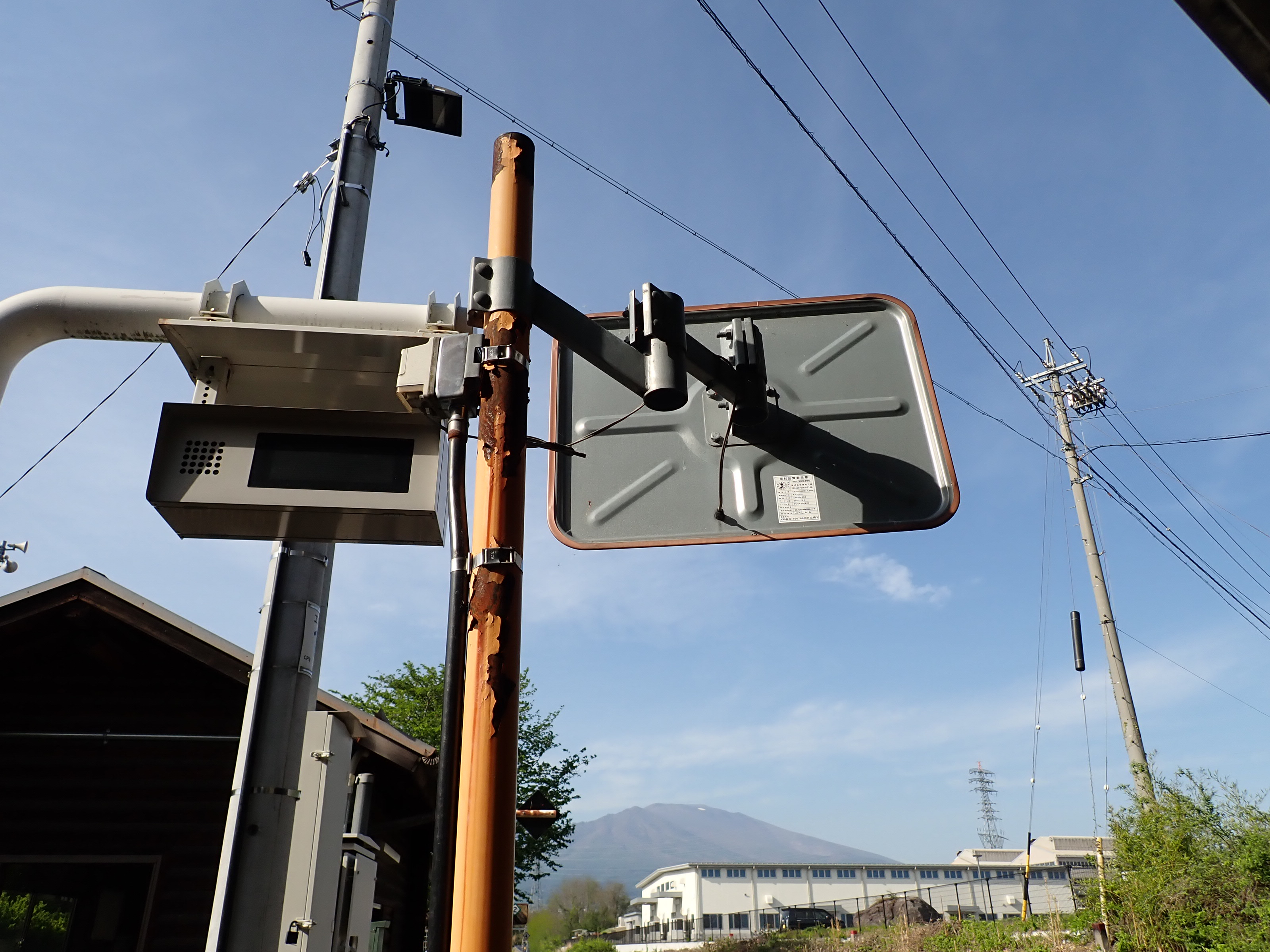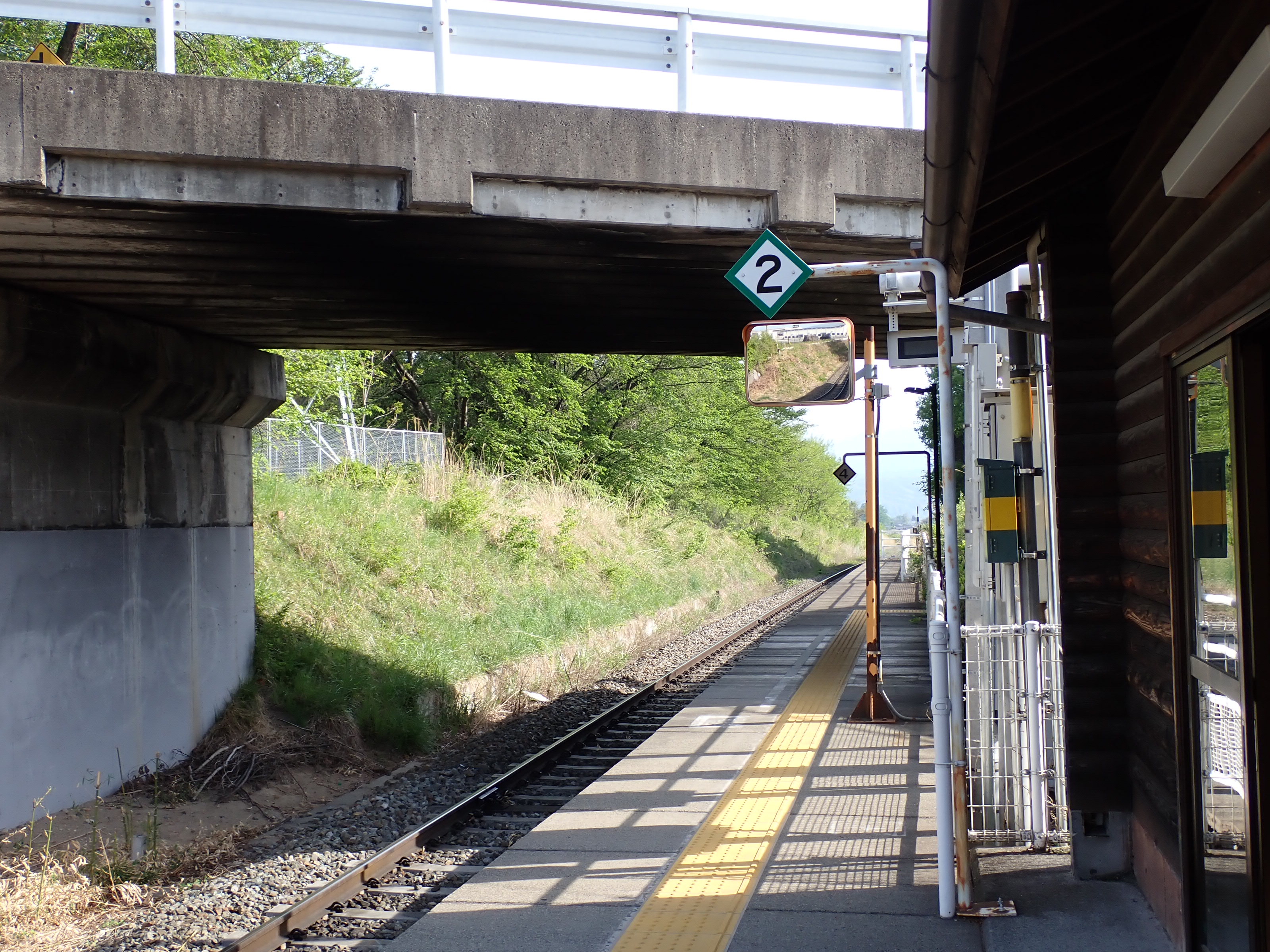 三岡駅側のワンマンミラー。2024年5月に撮っていますが、2024年2月製造の新しいものです。