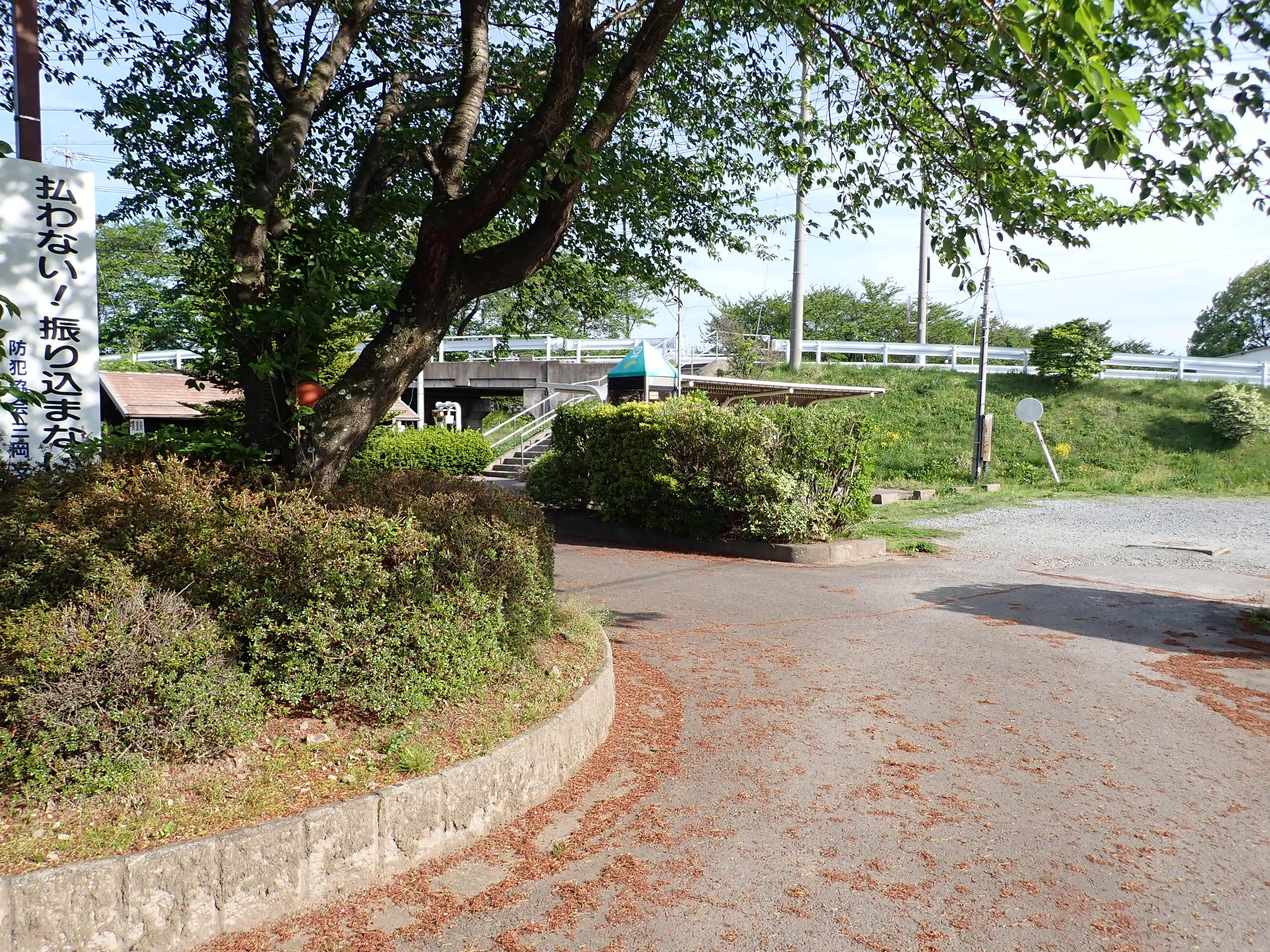 突き当たった道を曲がると駅入口・養護学校の案内があります。