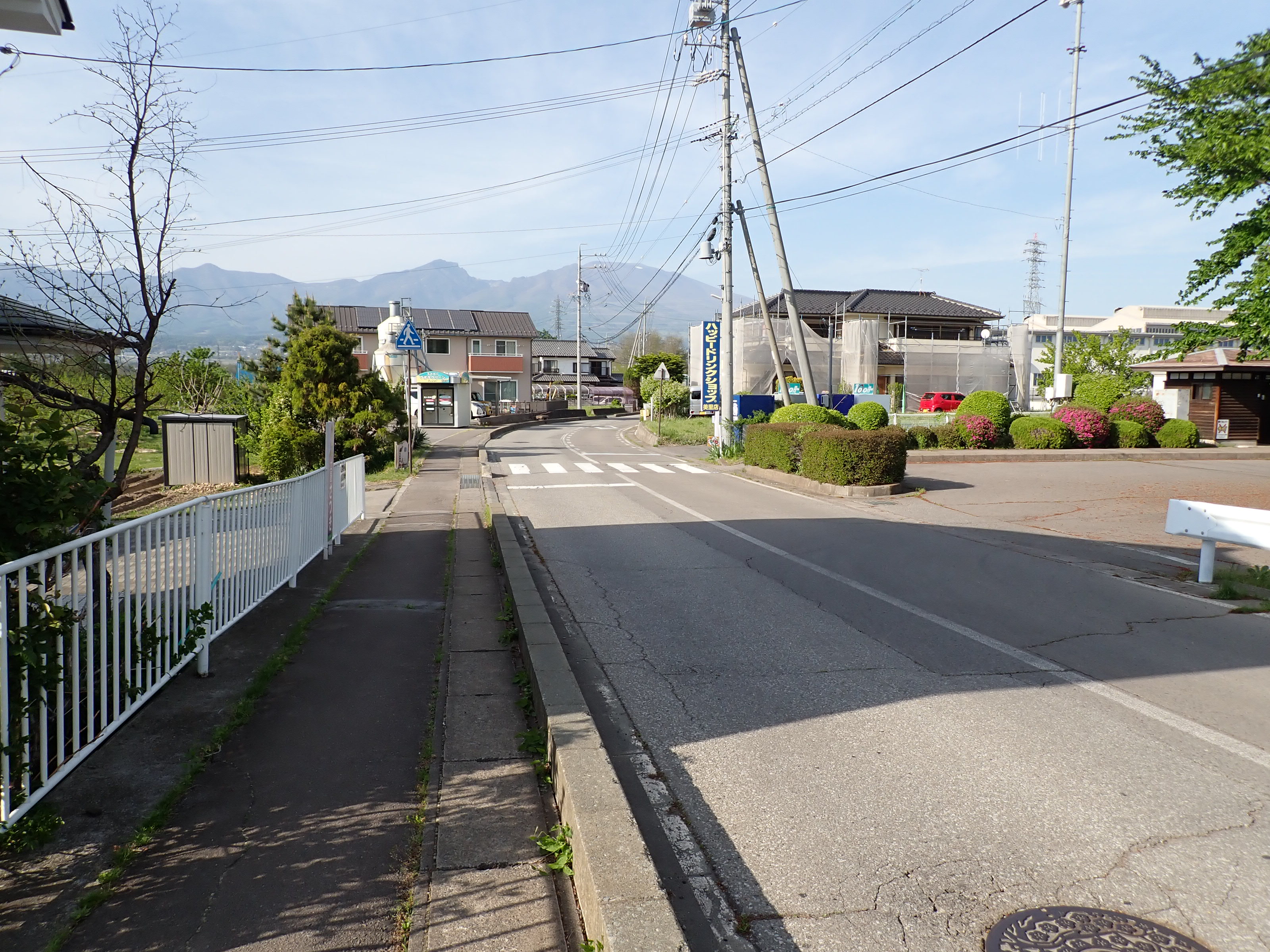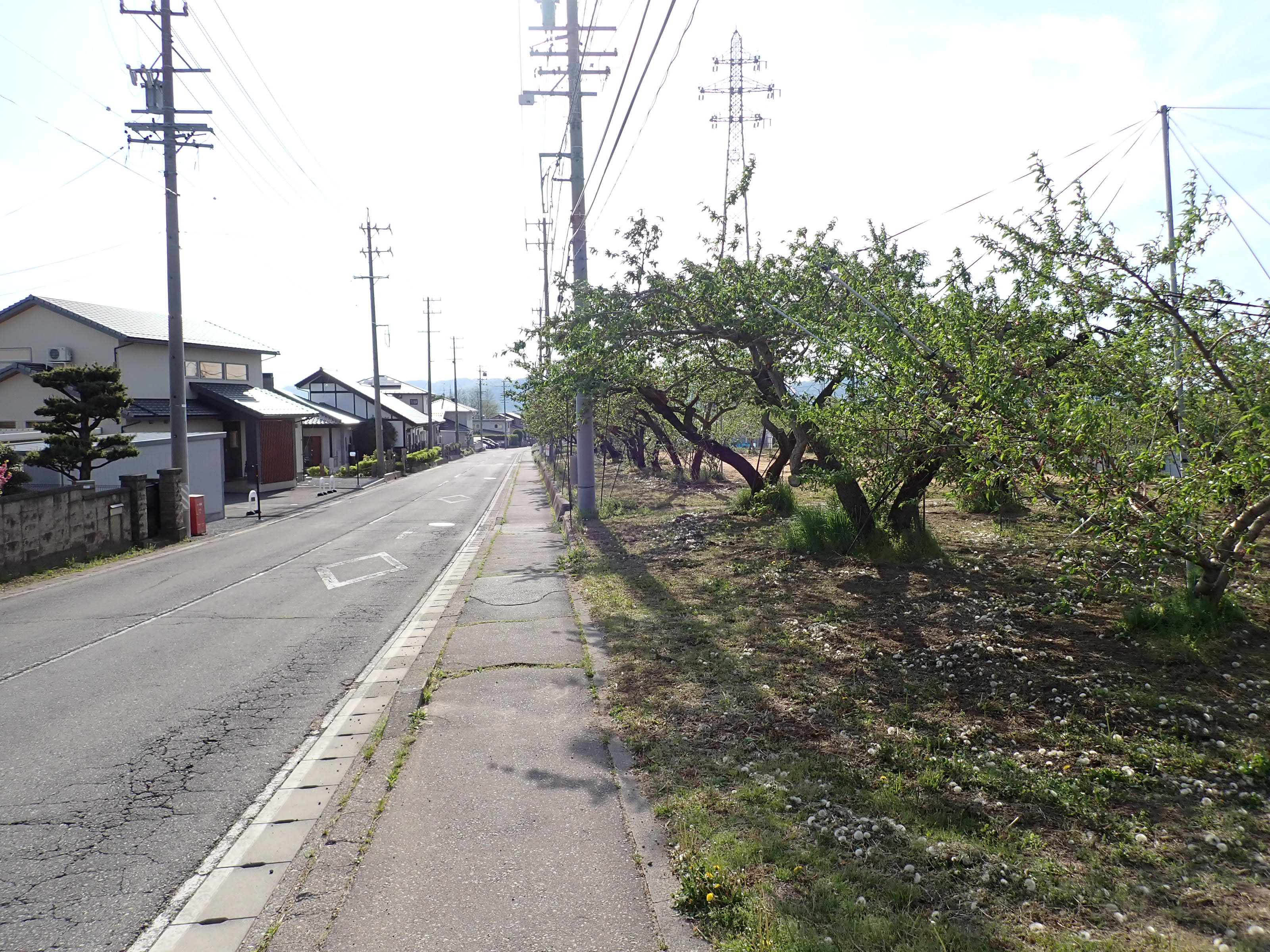 果樹園や住宅地などがあります。少しだけ進んで引き返します。