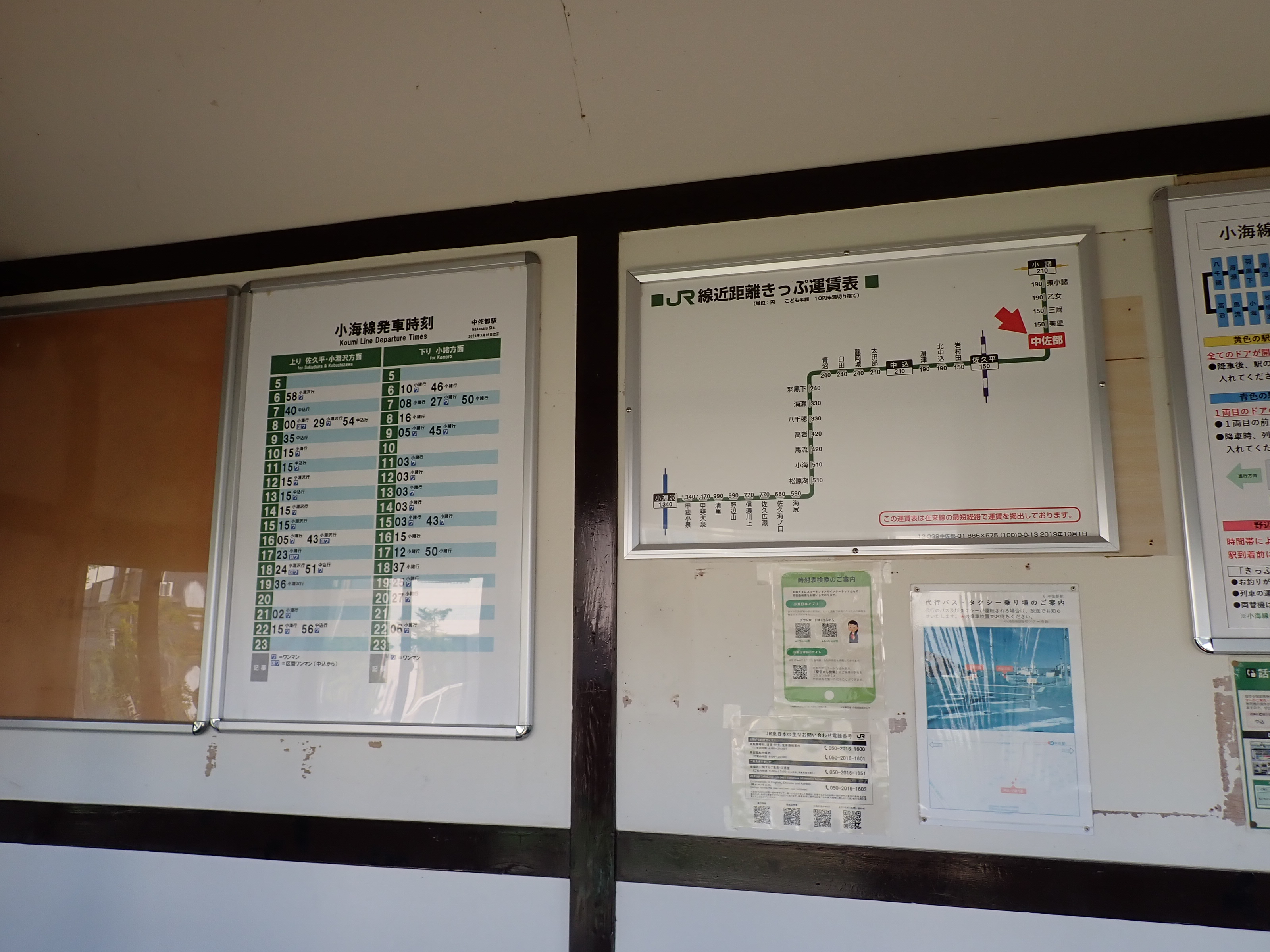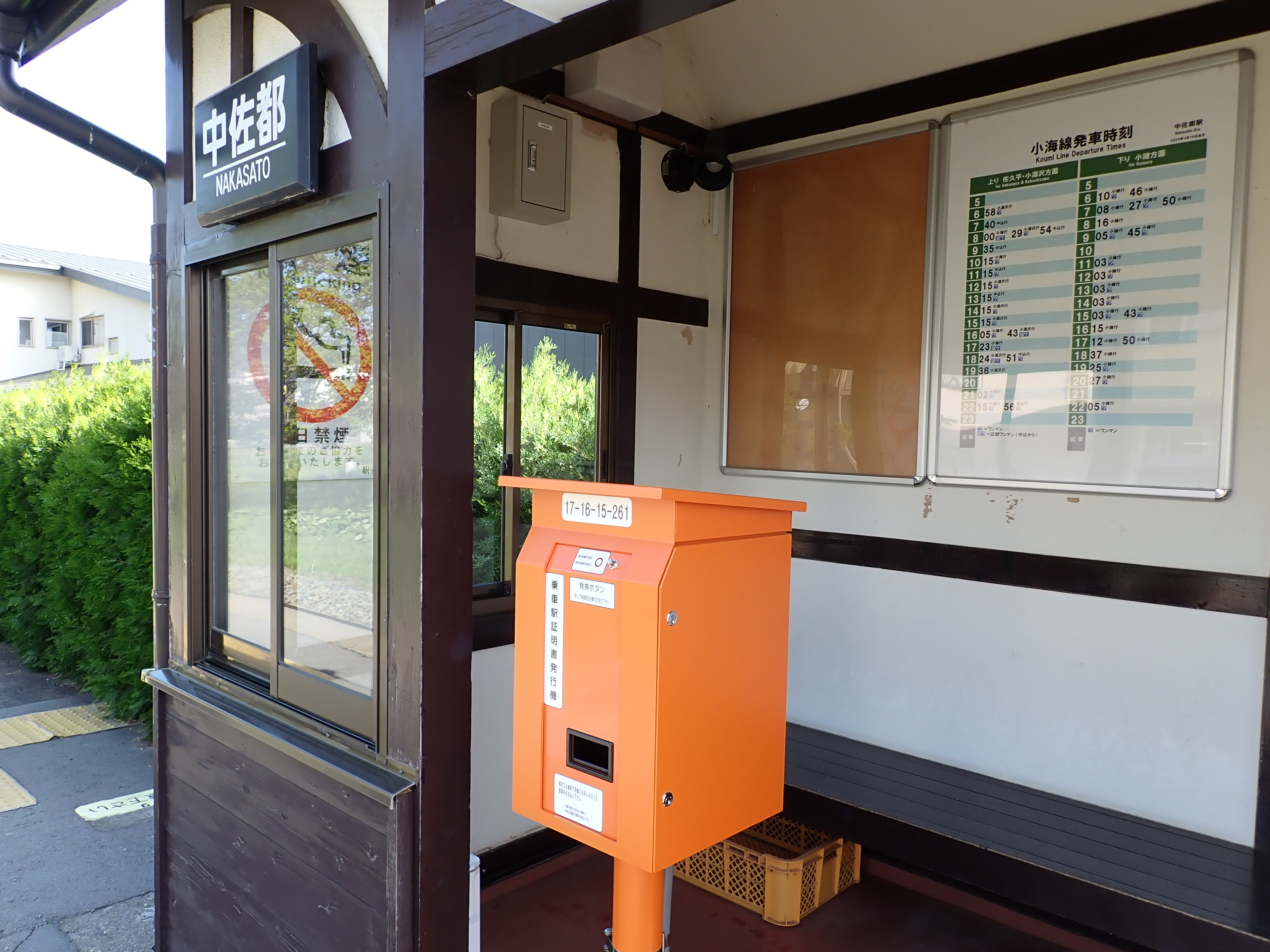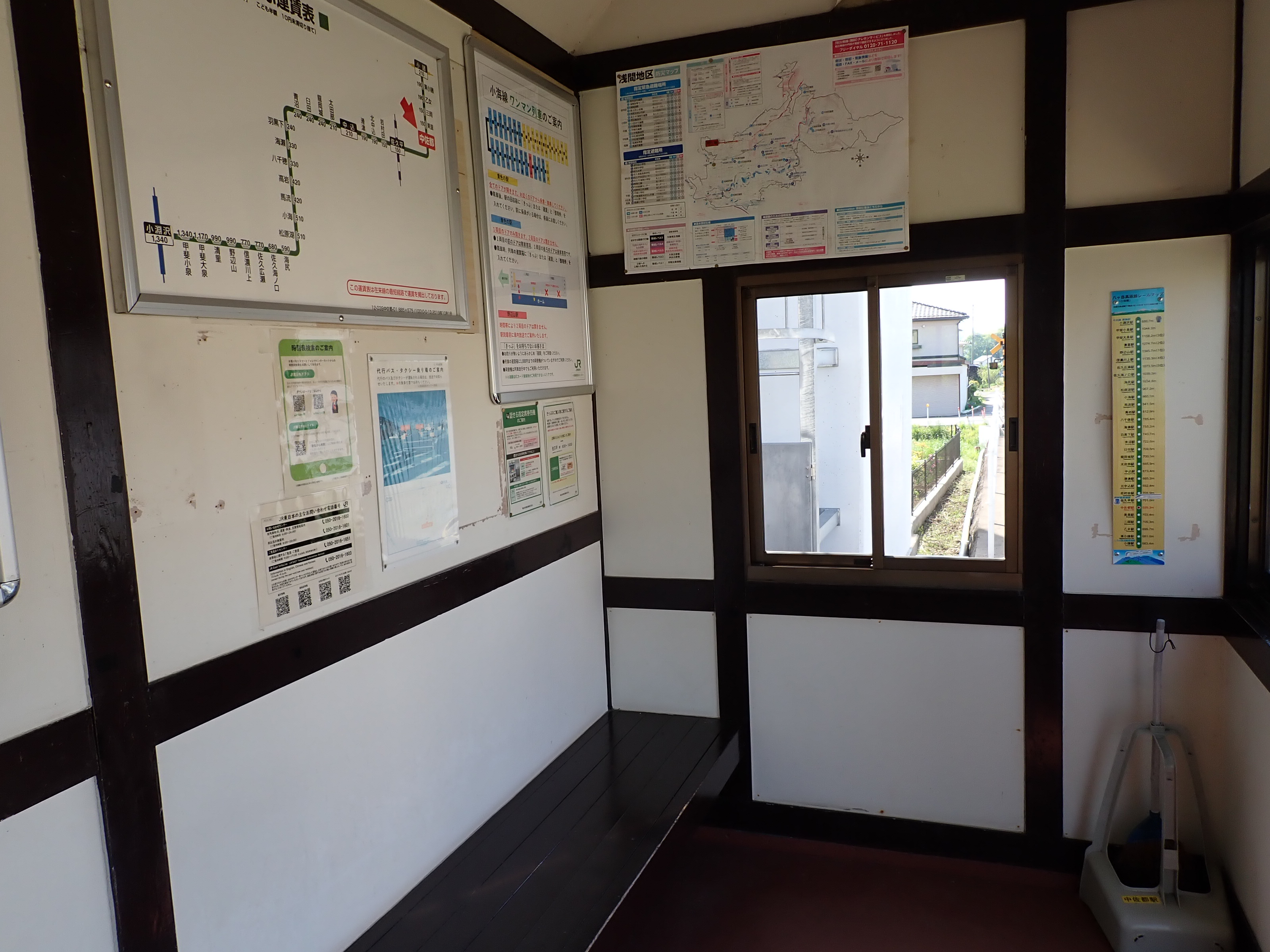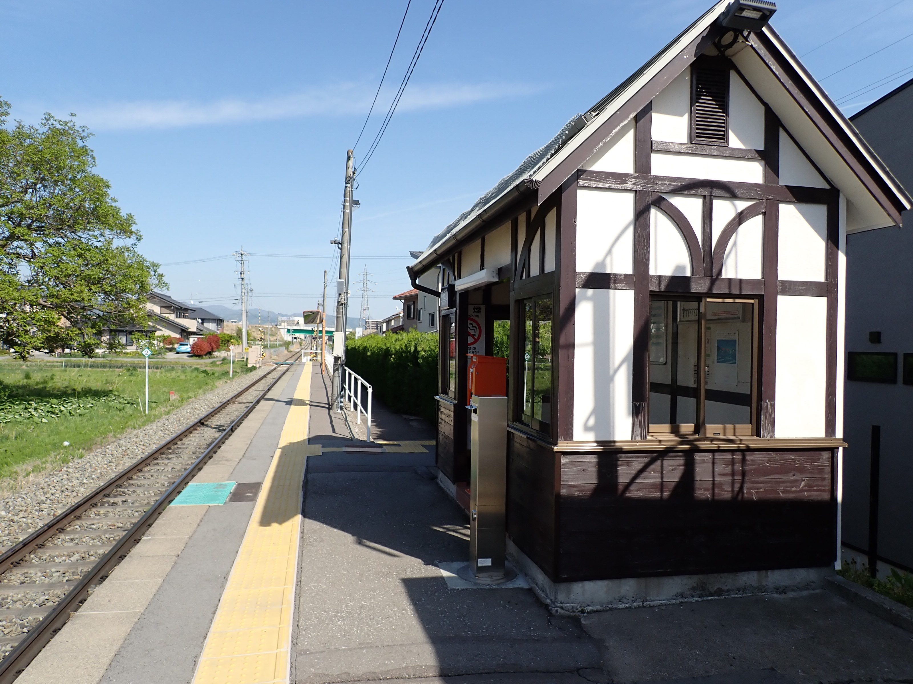 線路1本の駅で、ホームから見て両側の進行方向に出入口があり、それぞれに駐輪場があります。待合室の建物が洒落ています。周辺は新しい住宅も多くありながら、畑が広がるところです。