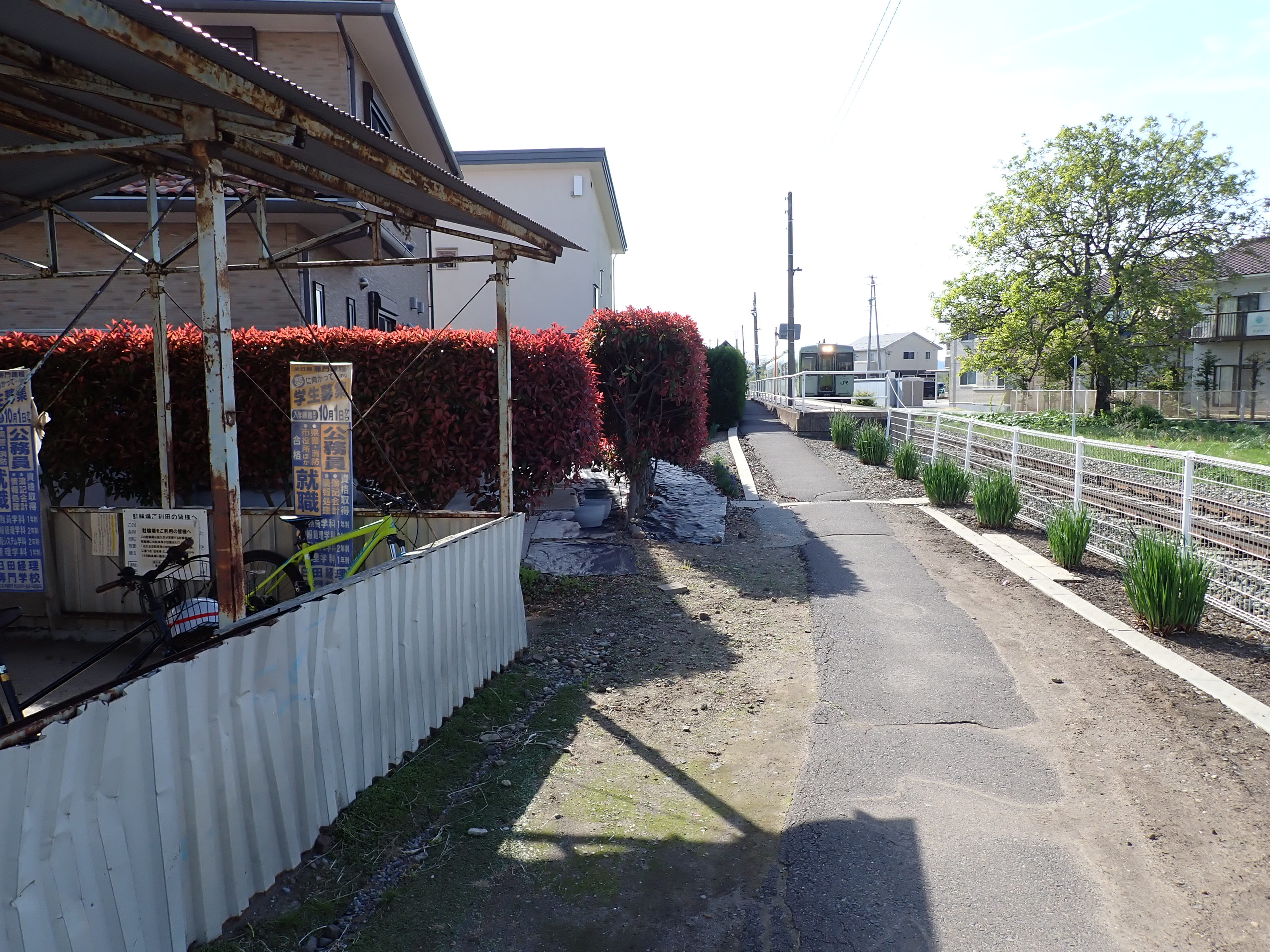 美里駅側の踏切付近へ進み、こちら側の出入口の前を通ります。