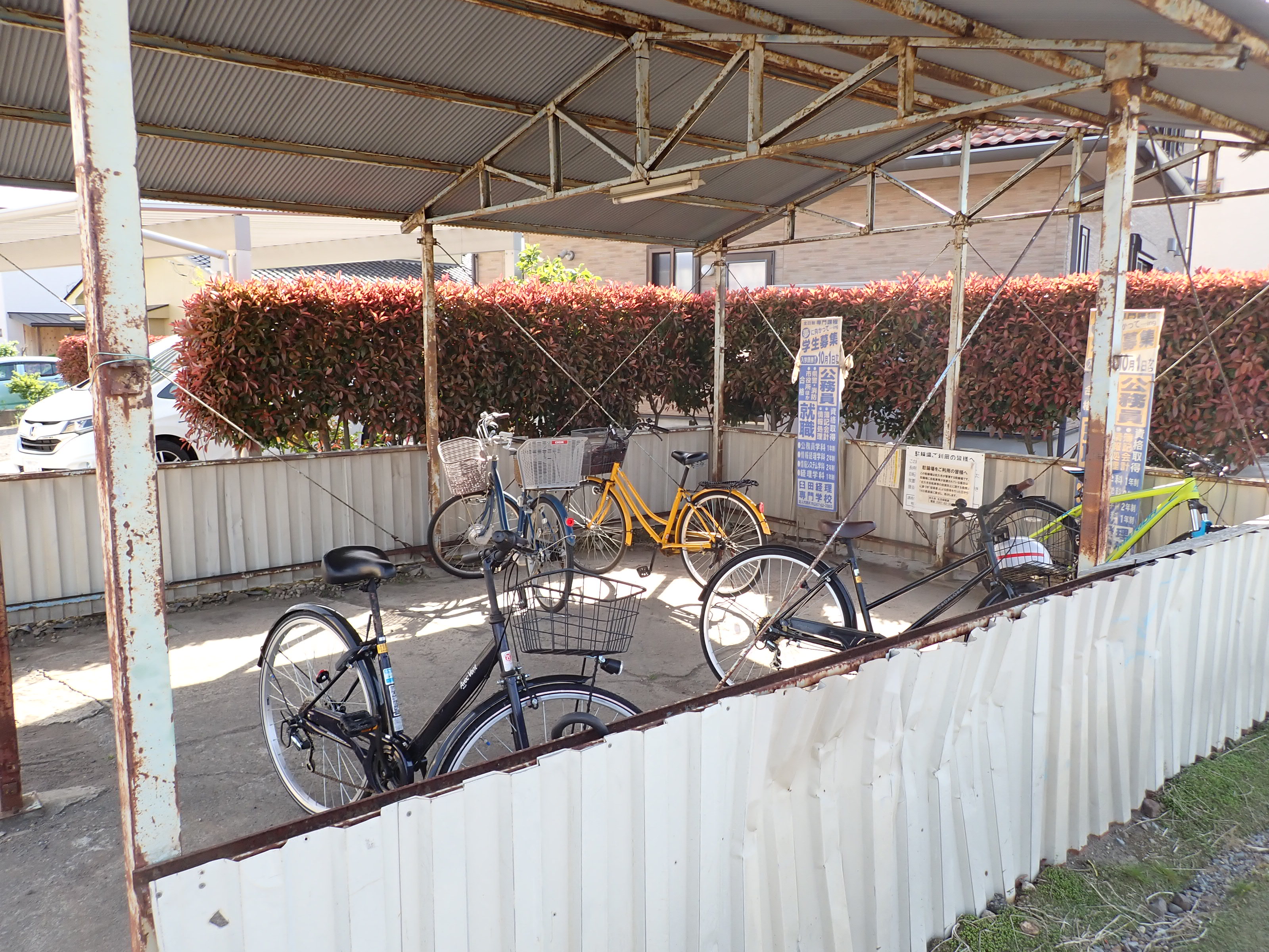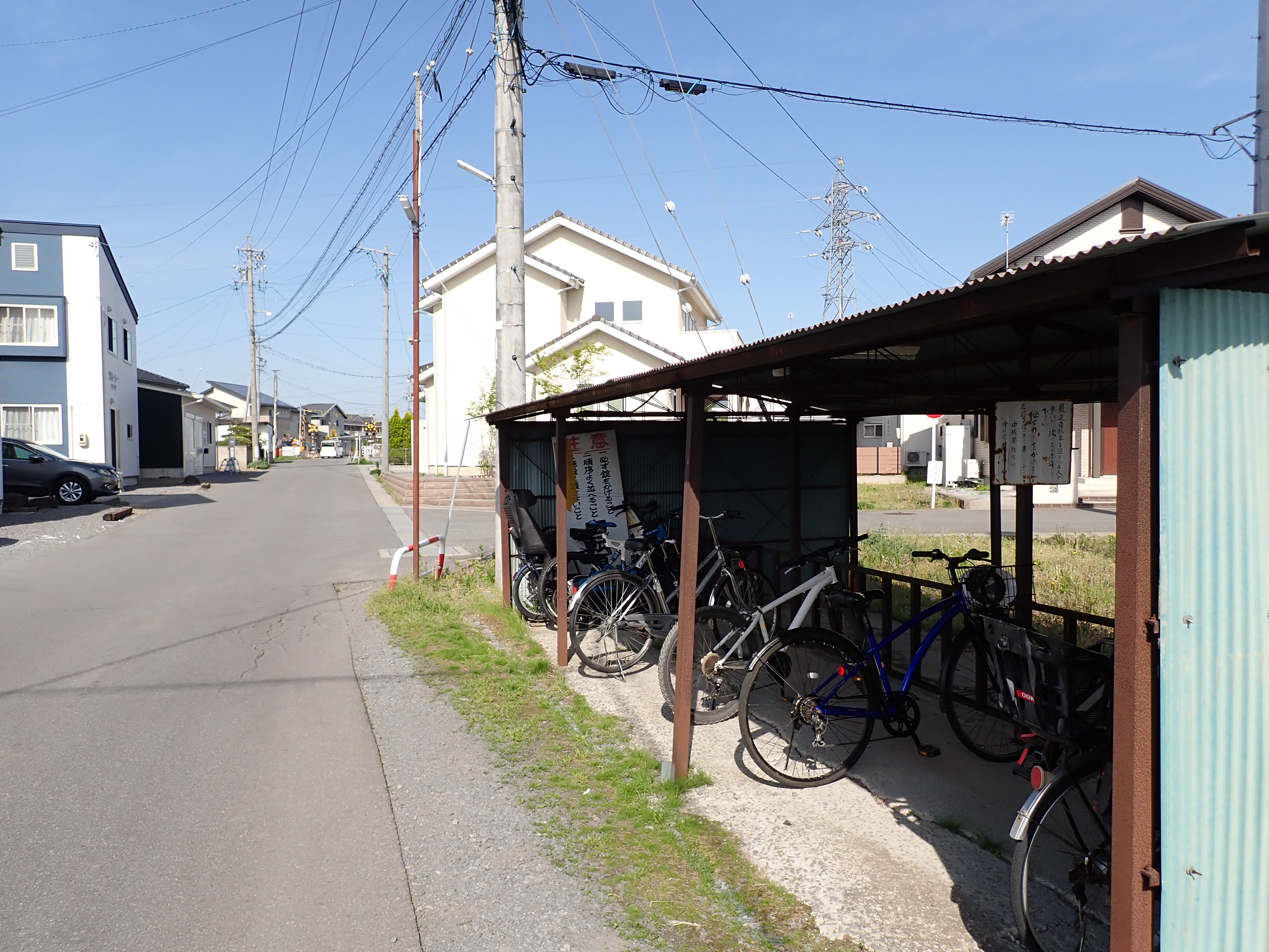 反対側、佐久平駅側の出入口から。出入口の途中に駐輪場があります。