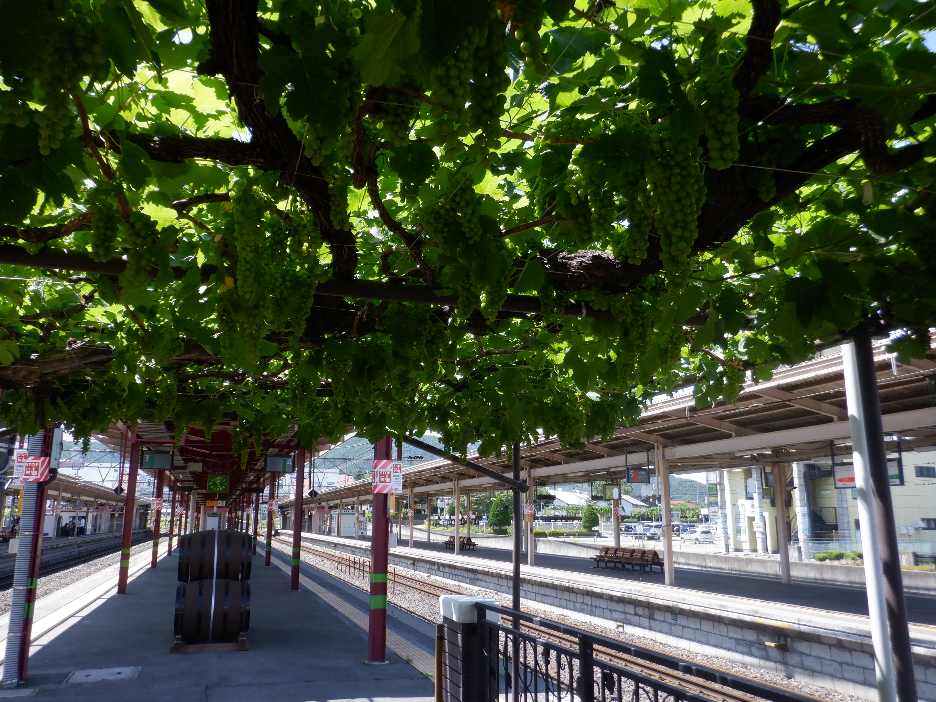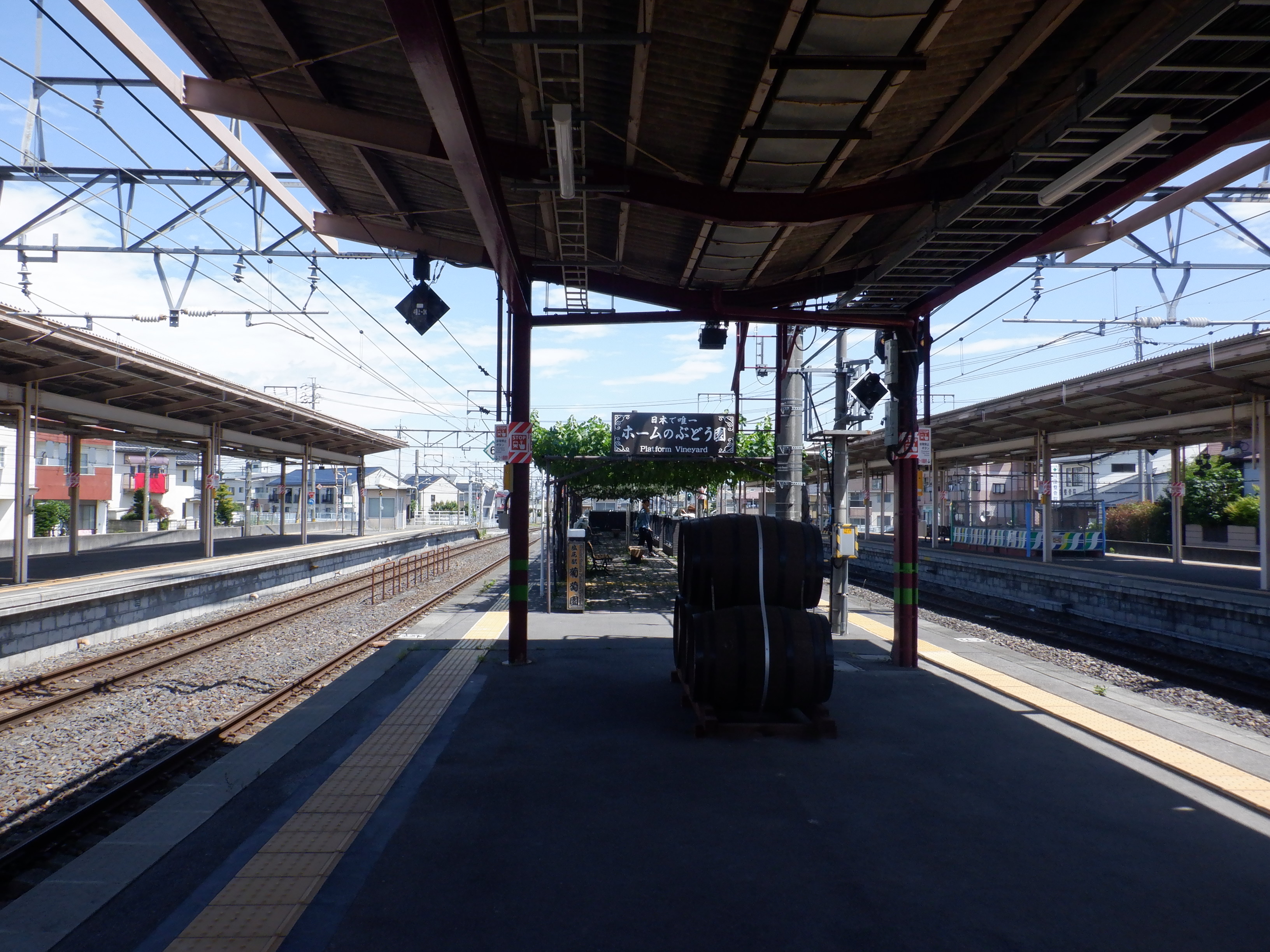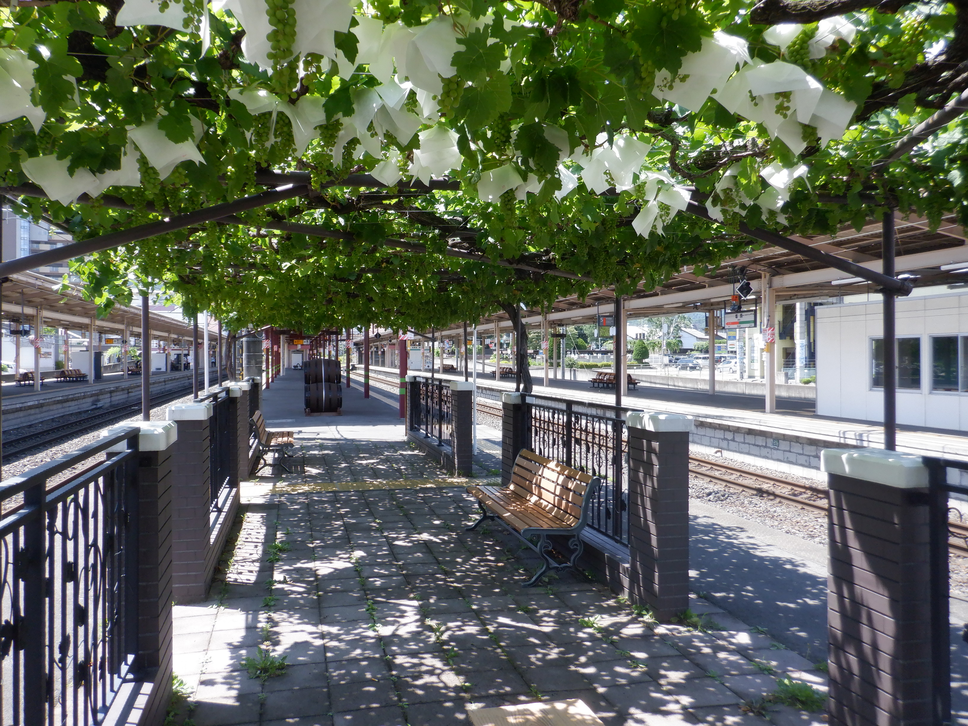 1・2番線から見た3・4番線の上屋付近とぶどう園。