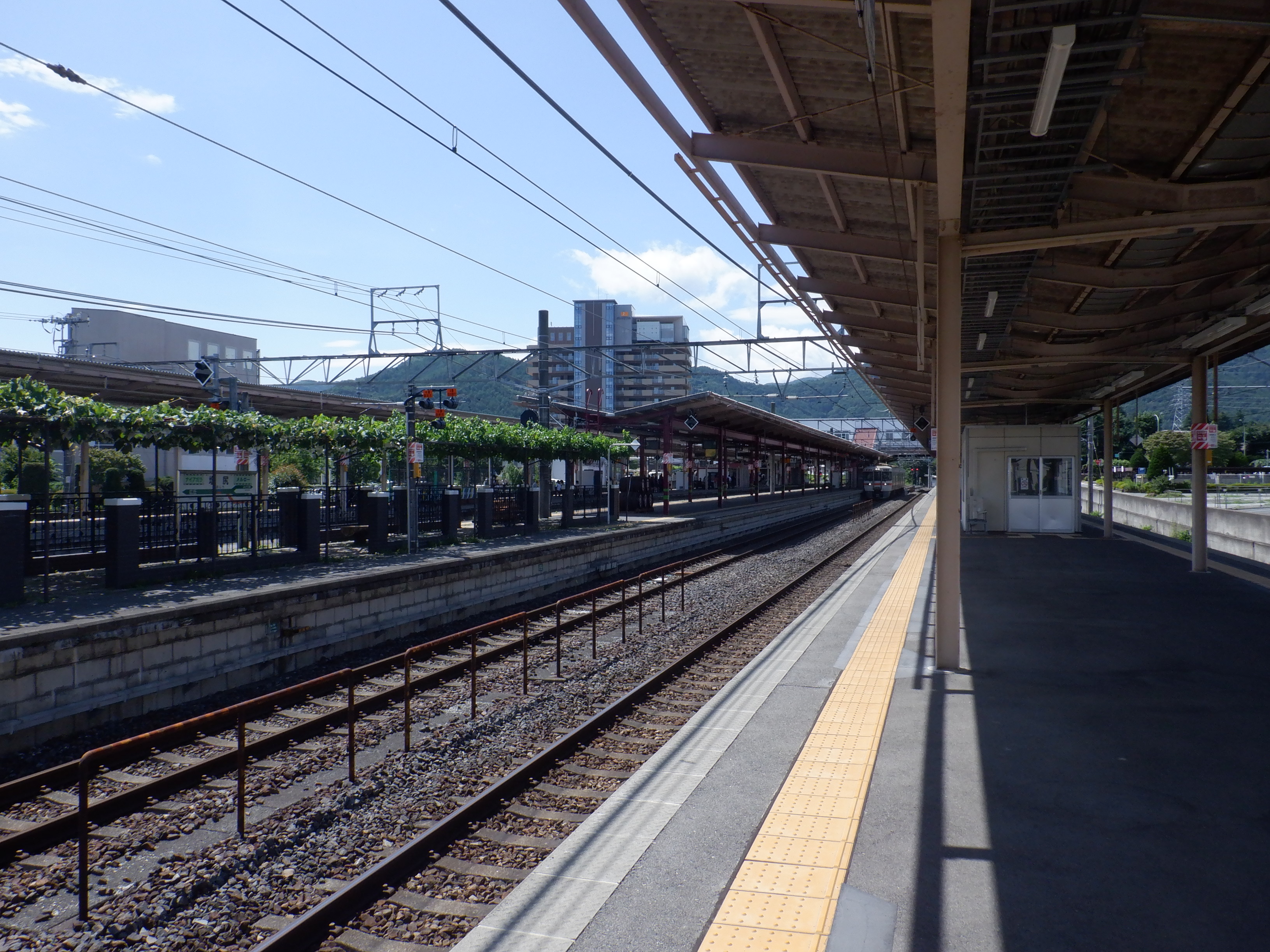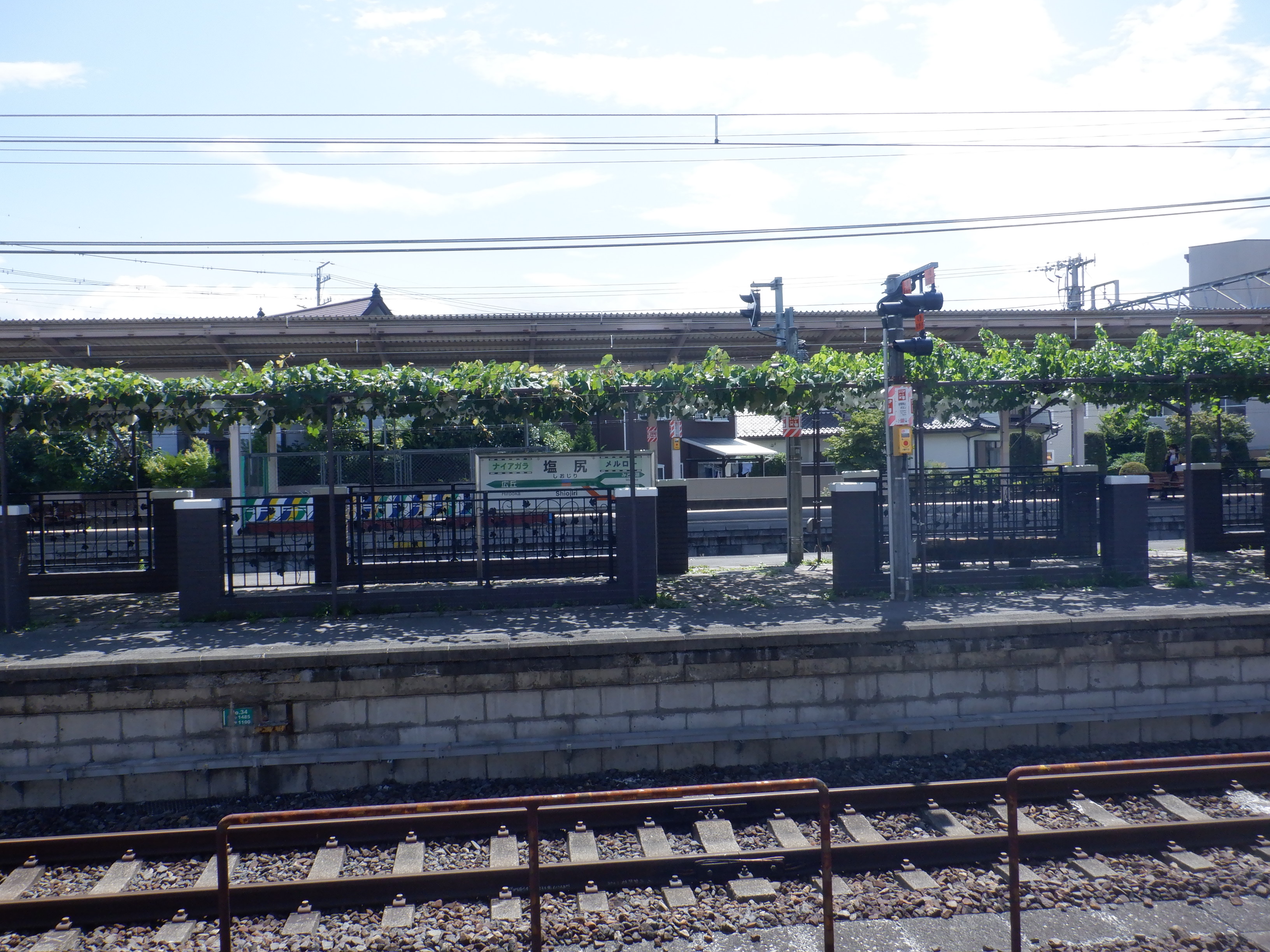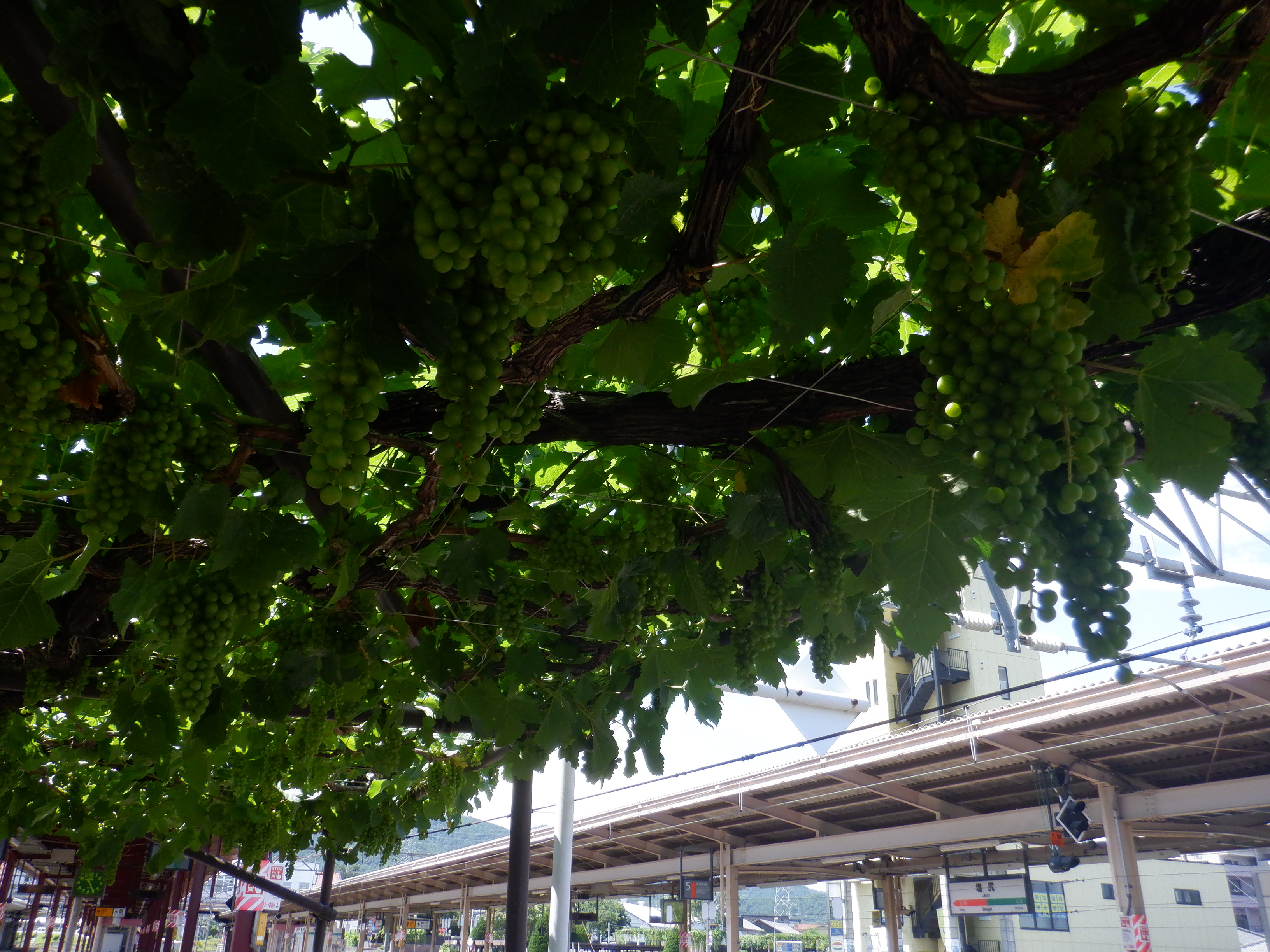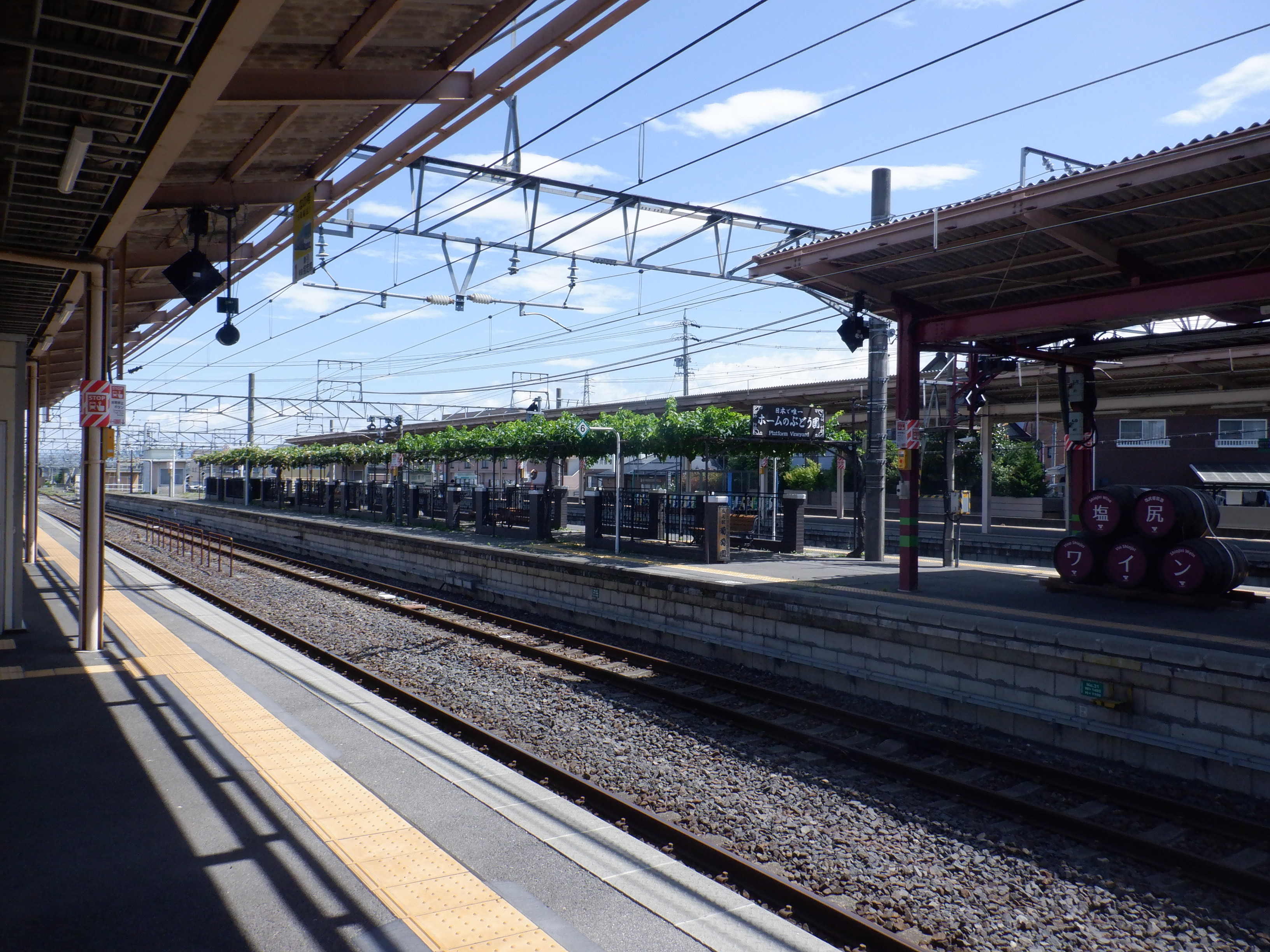 1・2番線から見た3・4番線の上屋付近とぶどう園。