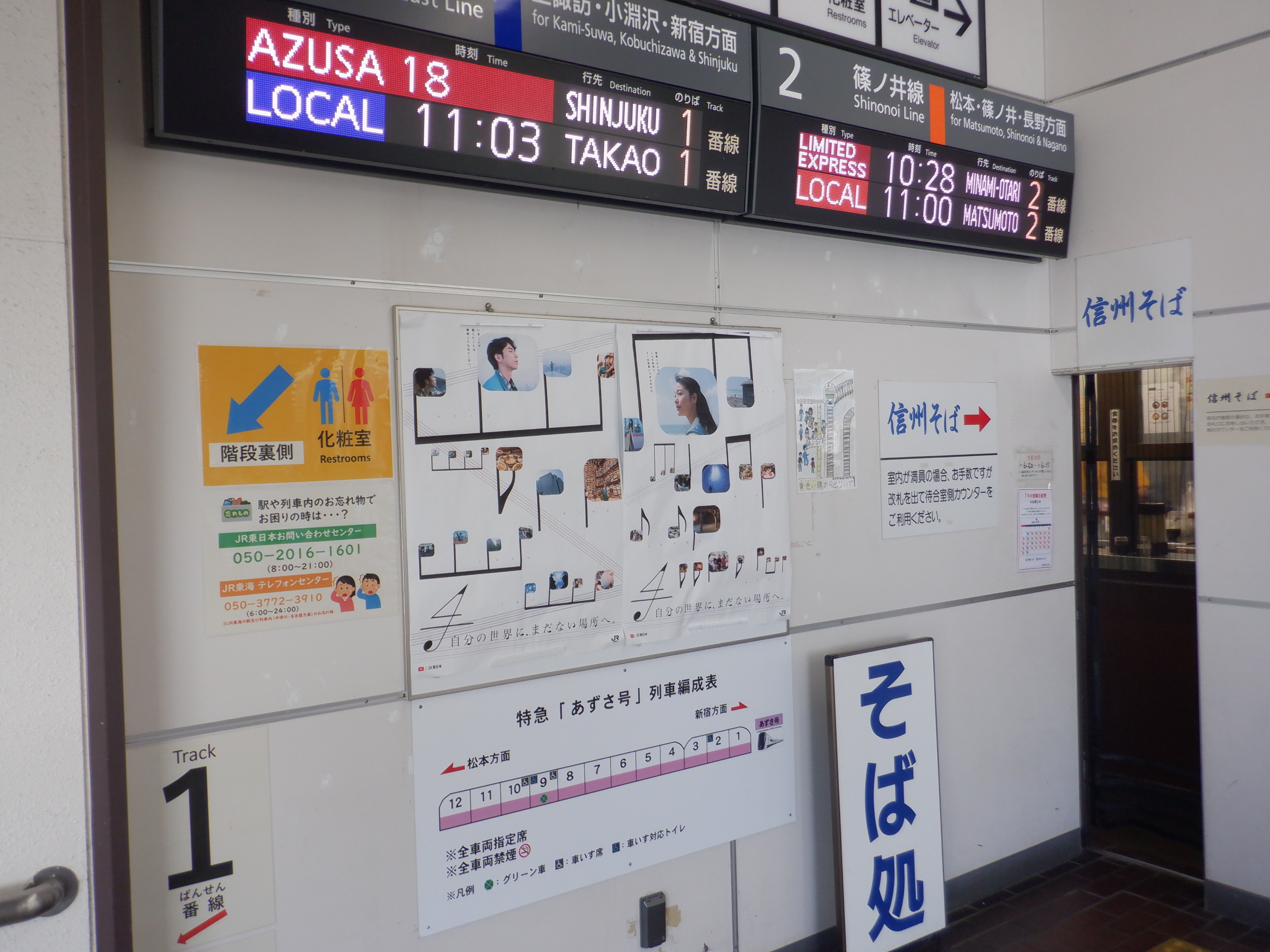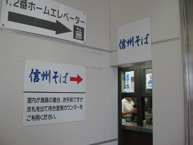 1・2番線から上がってきたところにある入口の狭いそば屋。