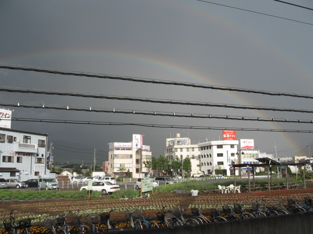 ホームから見た虹の様子。
