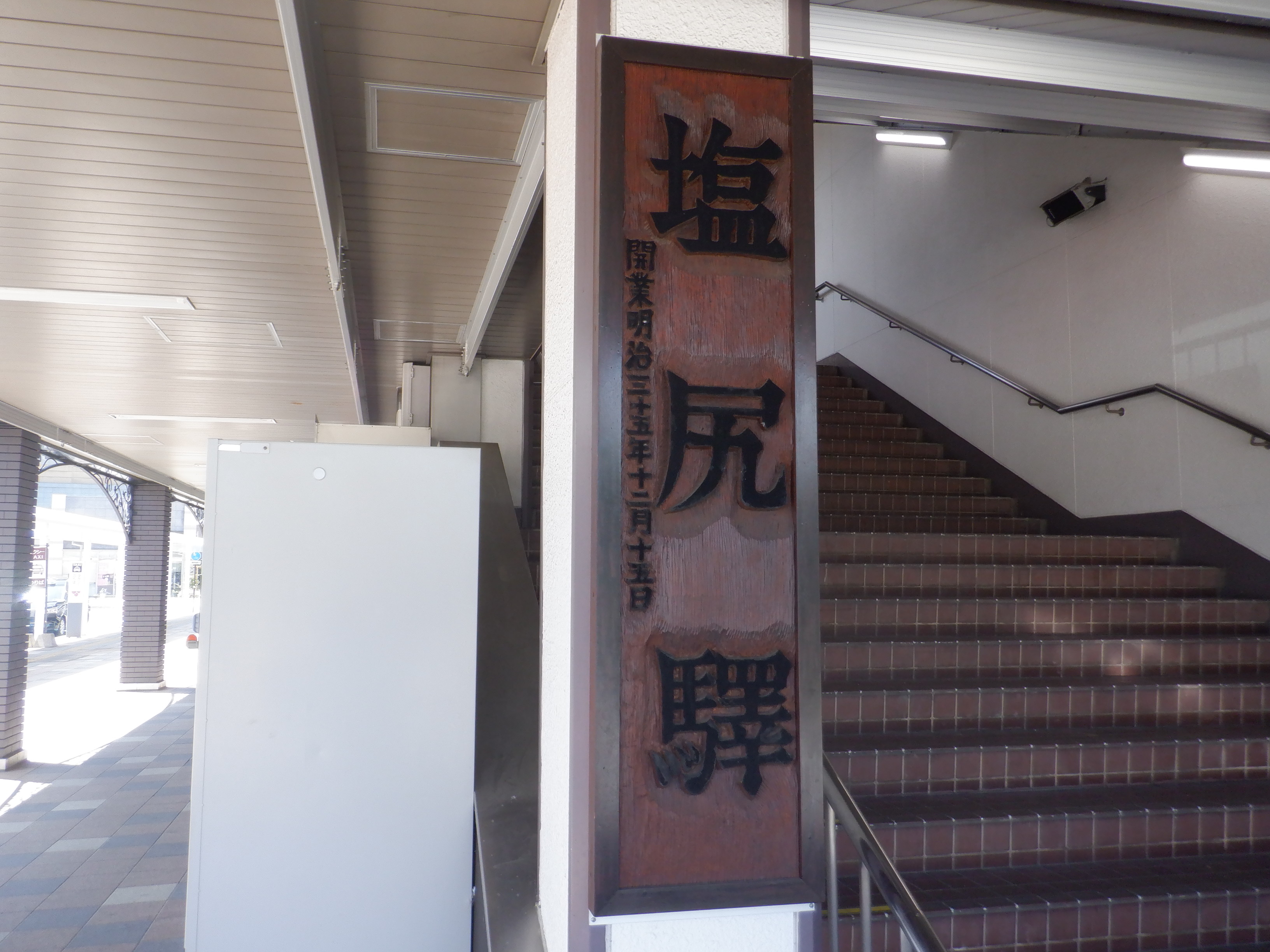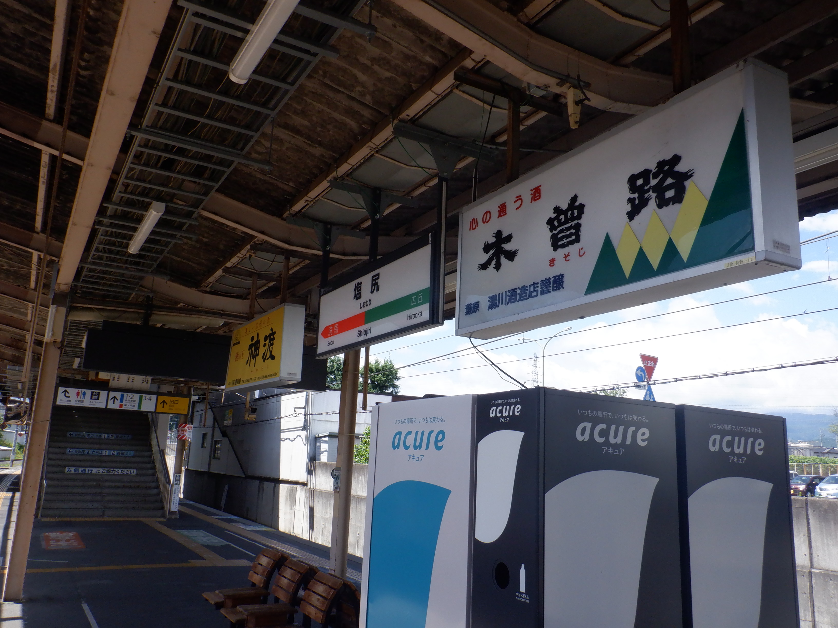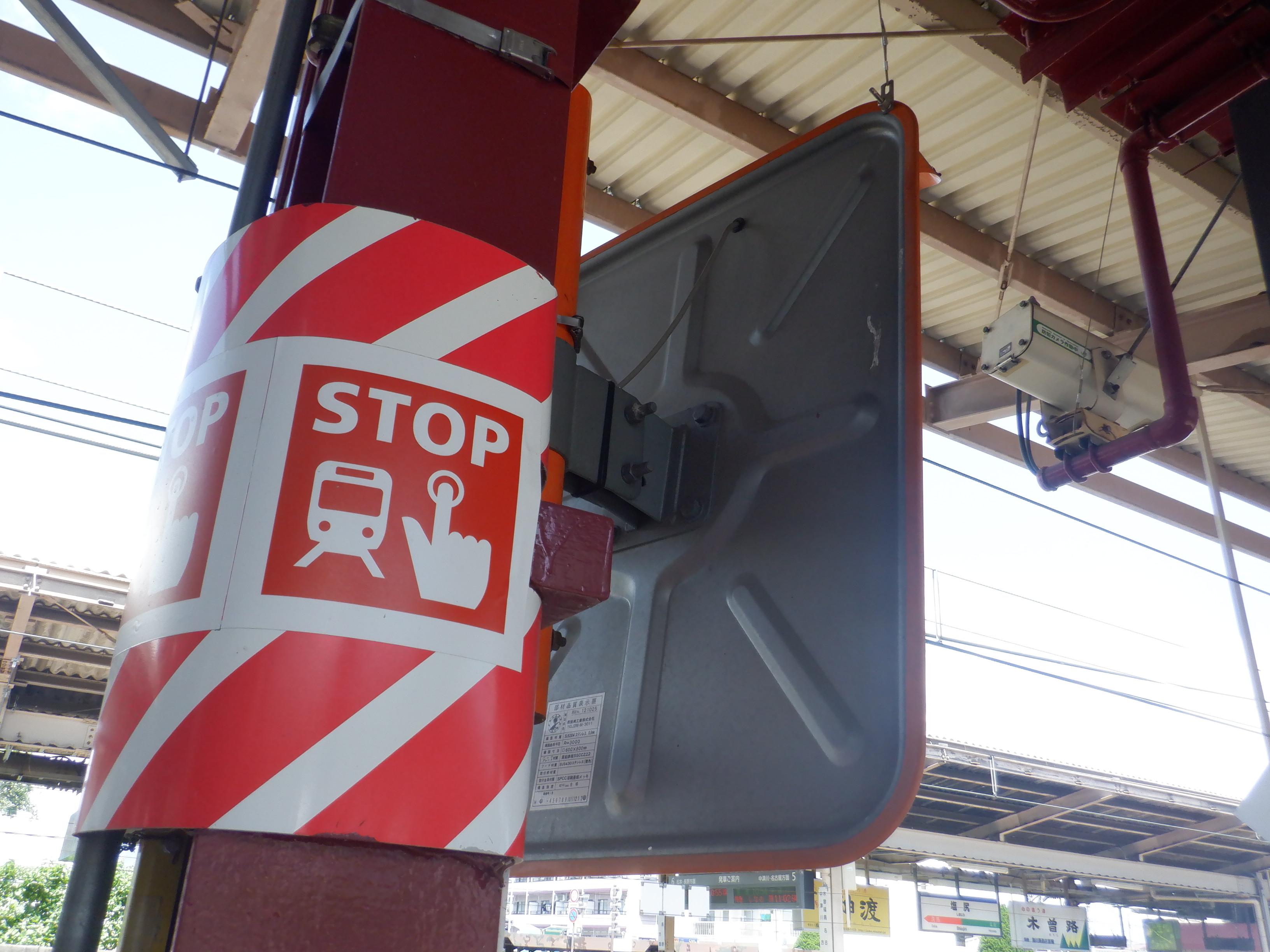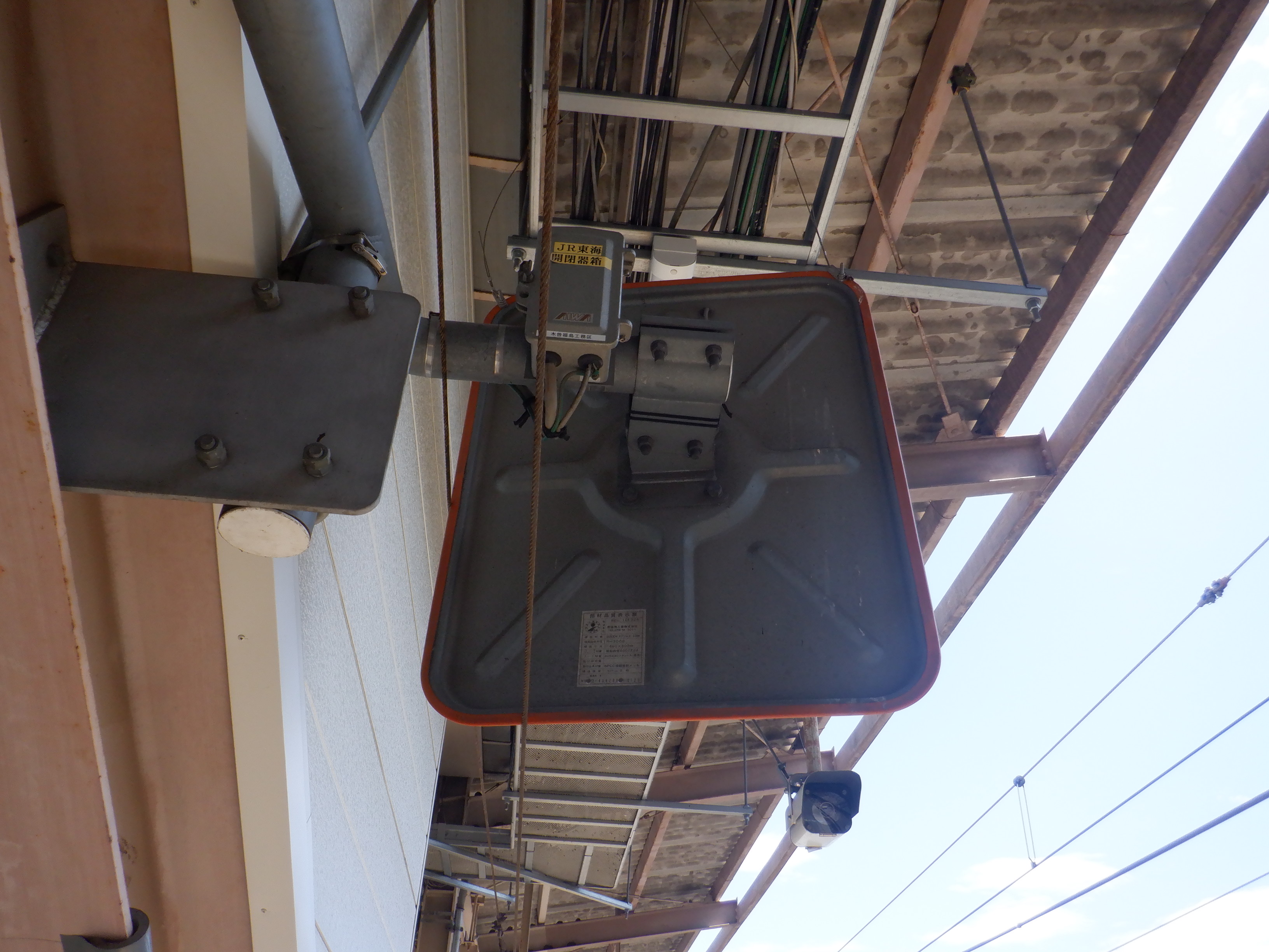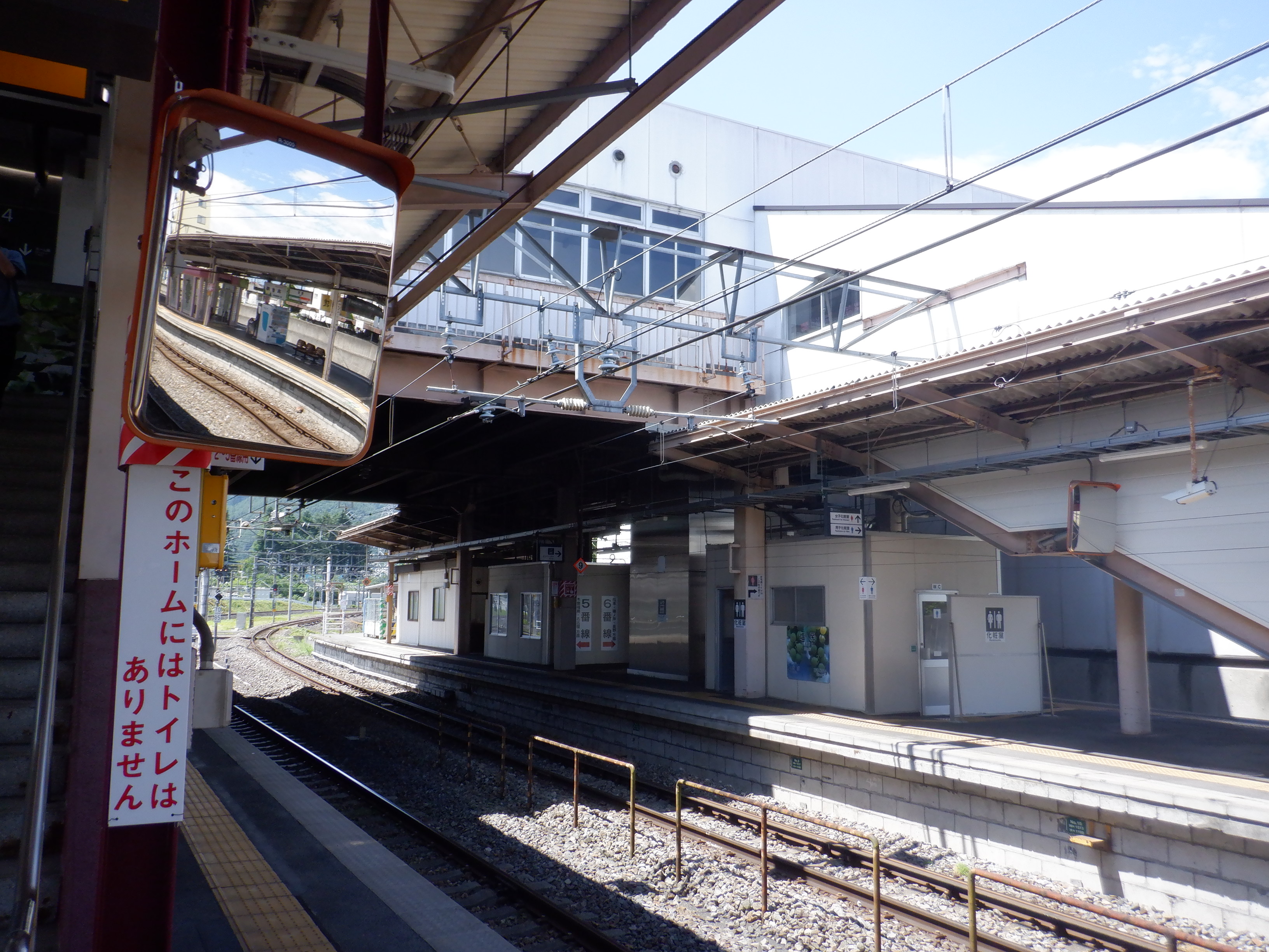 1番線の階段付近のワンマンミラー。アルプスミラーが使われています。