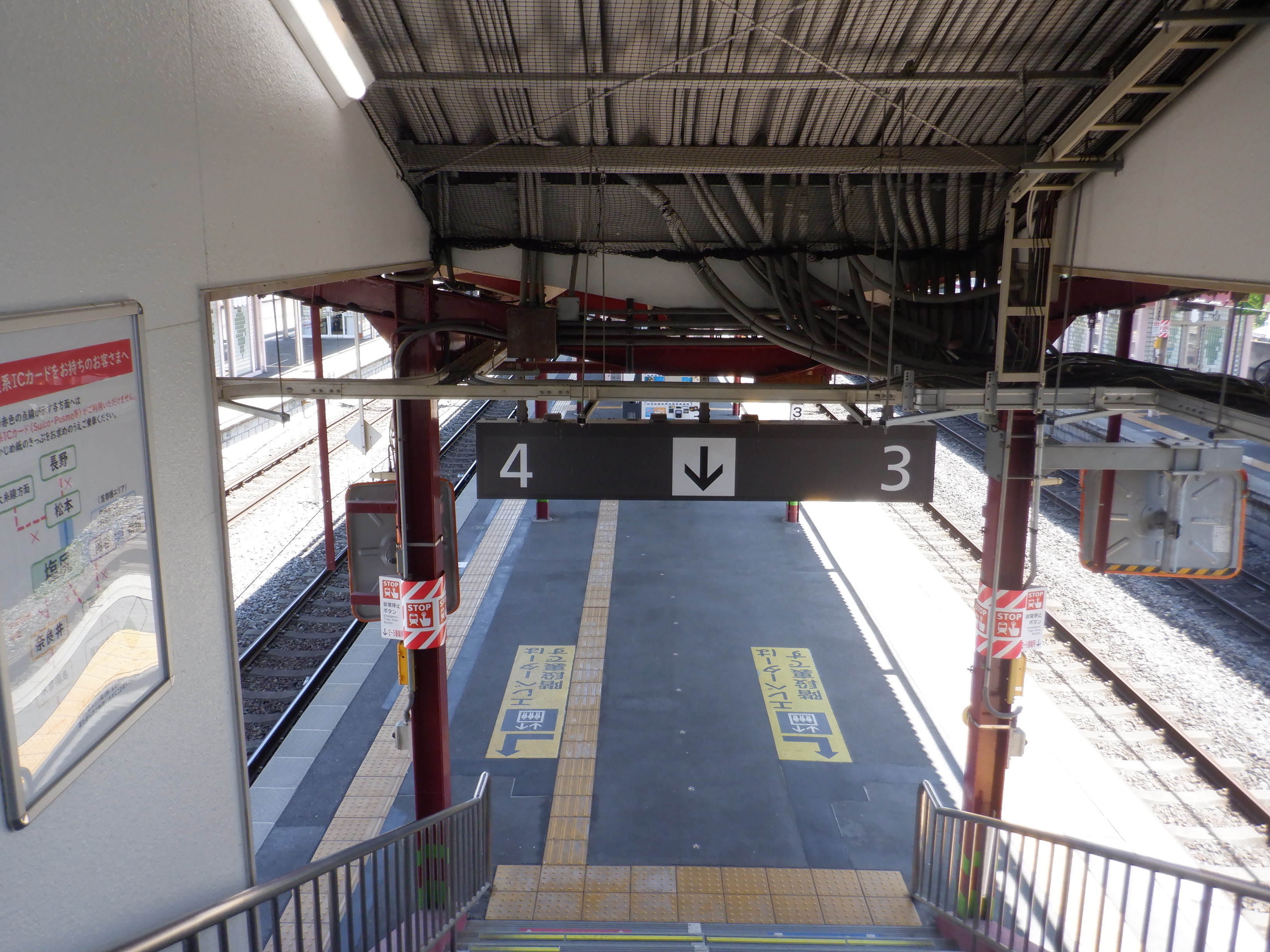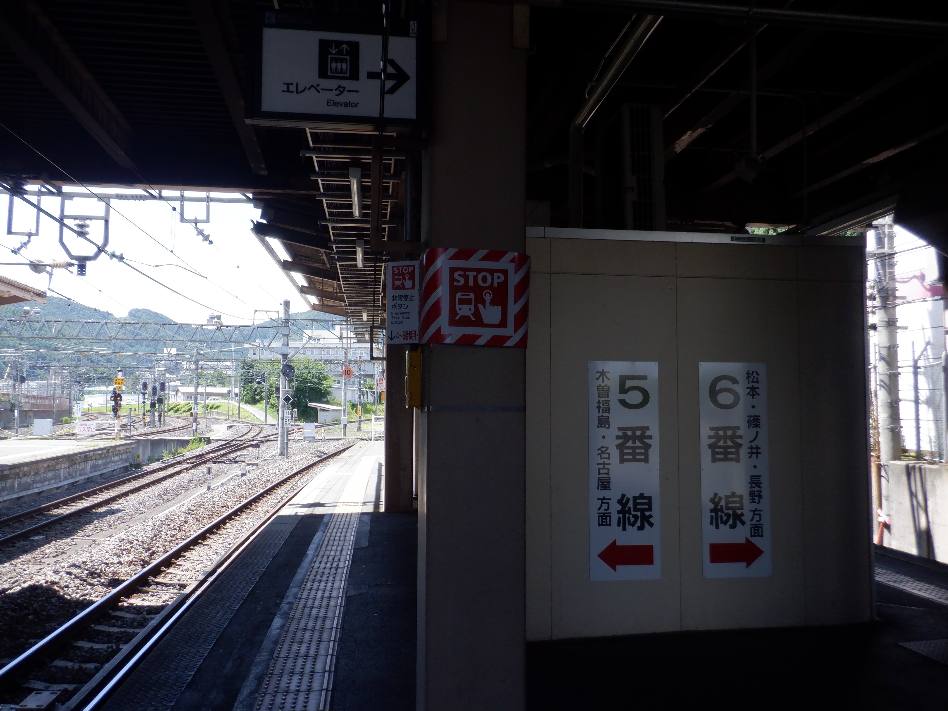5・6番線の洗馬・小野・みどり湖駅側とそこから見た3・4番線。