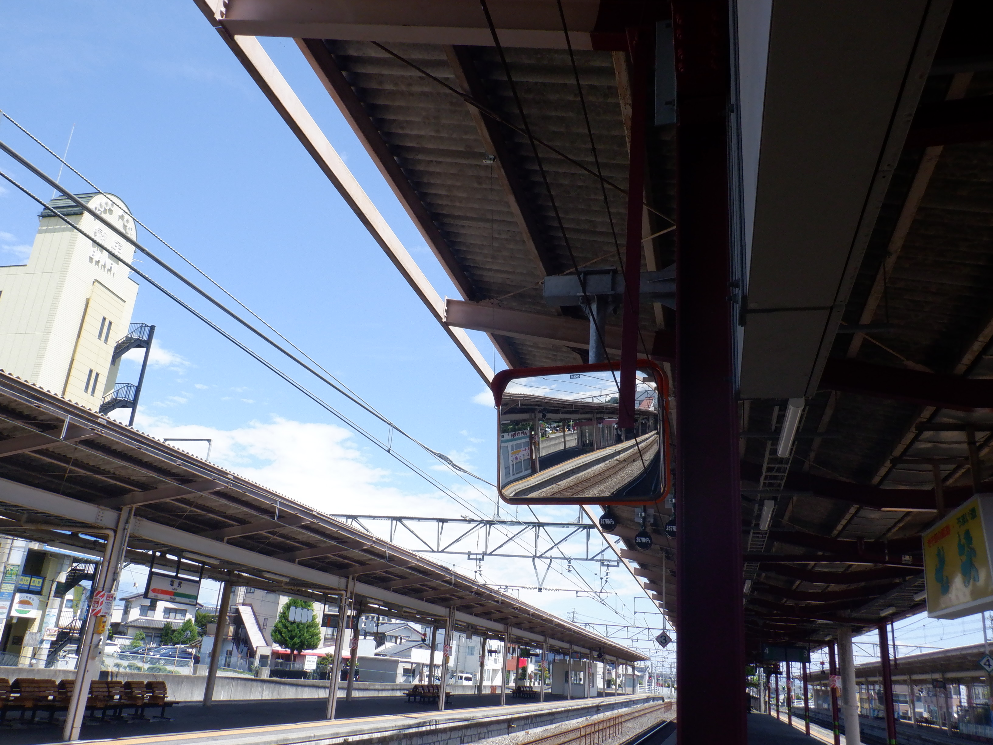 3・4番線の広丘駅側のワンマンミラー。