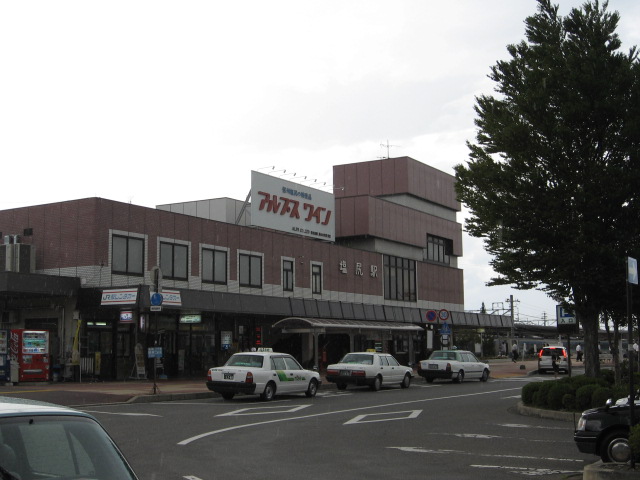 駅名標と駅舎。