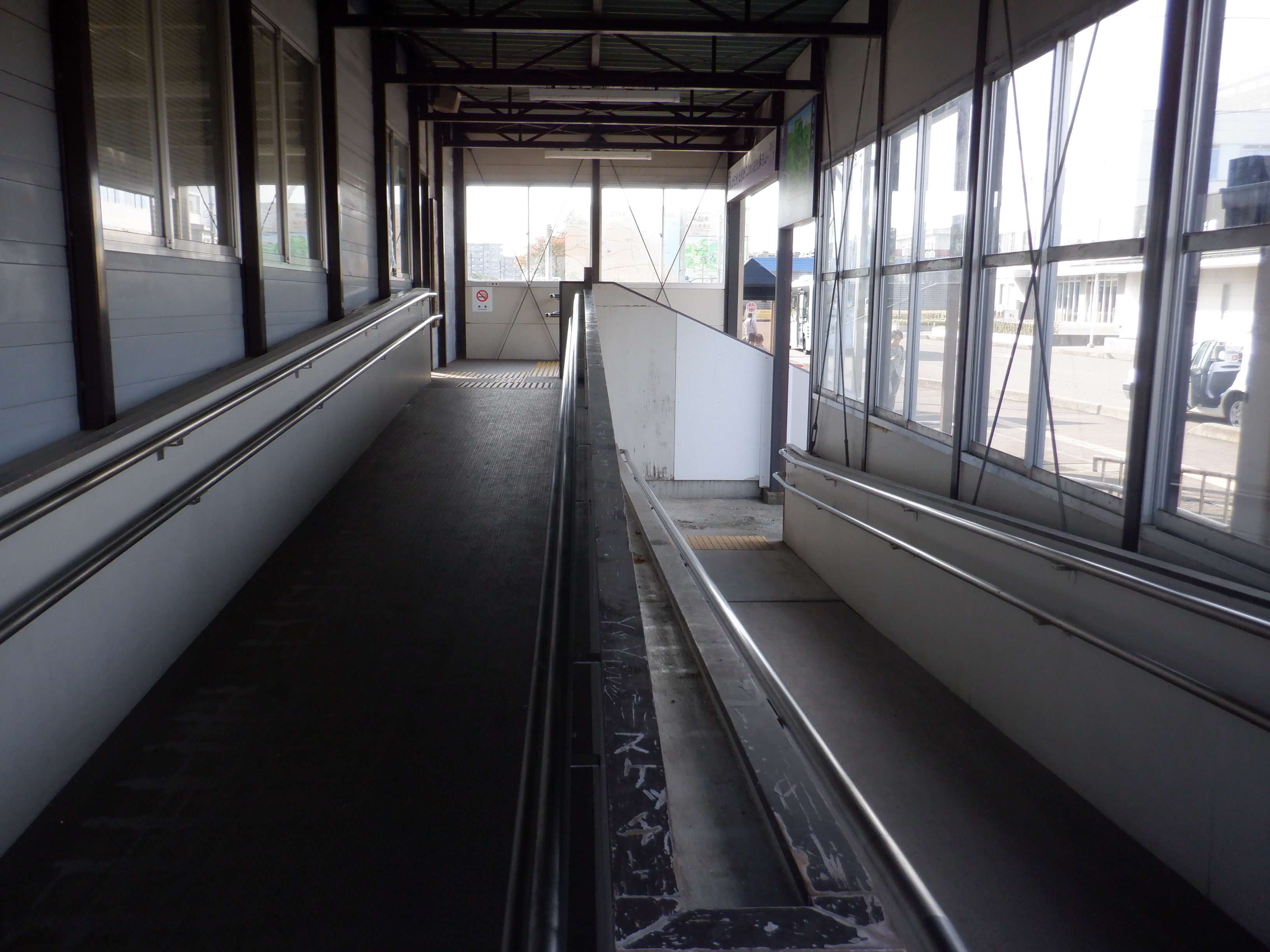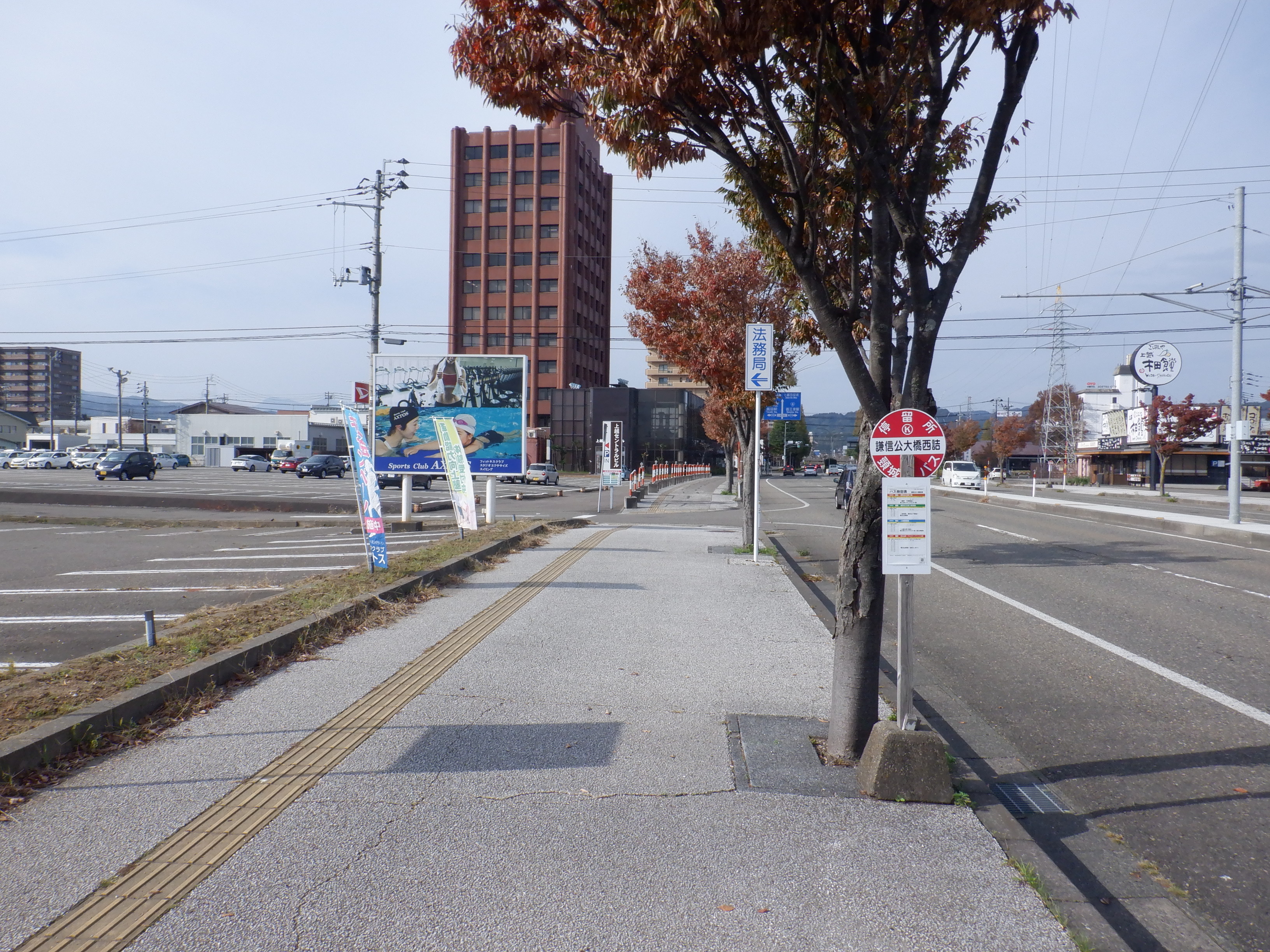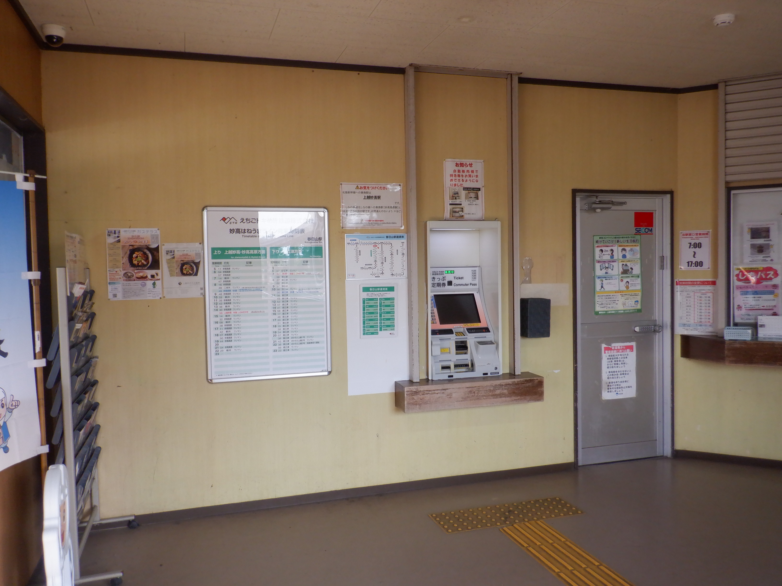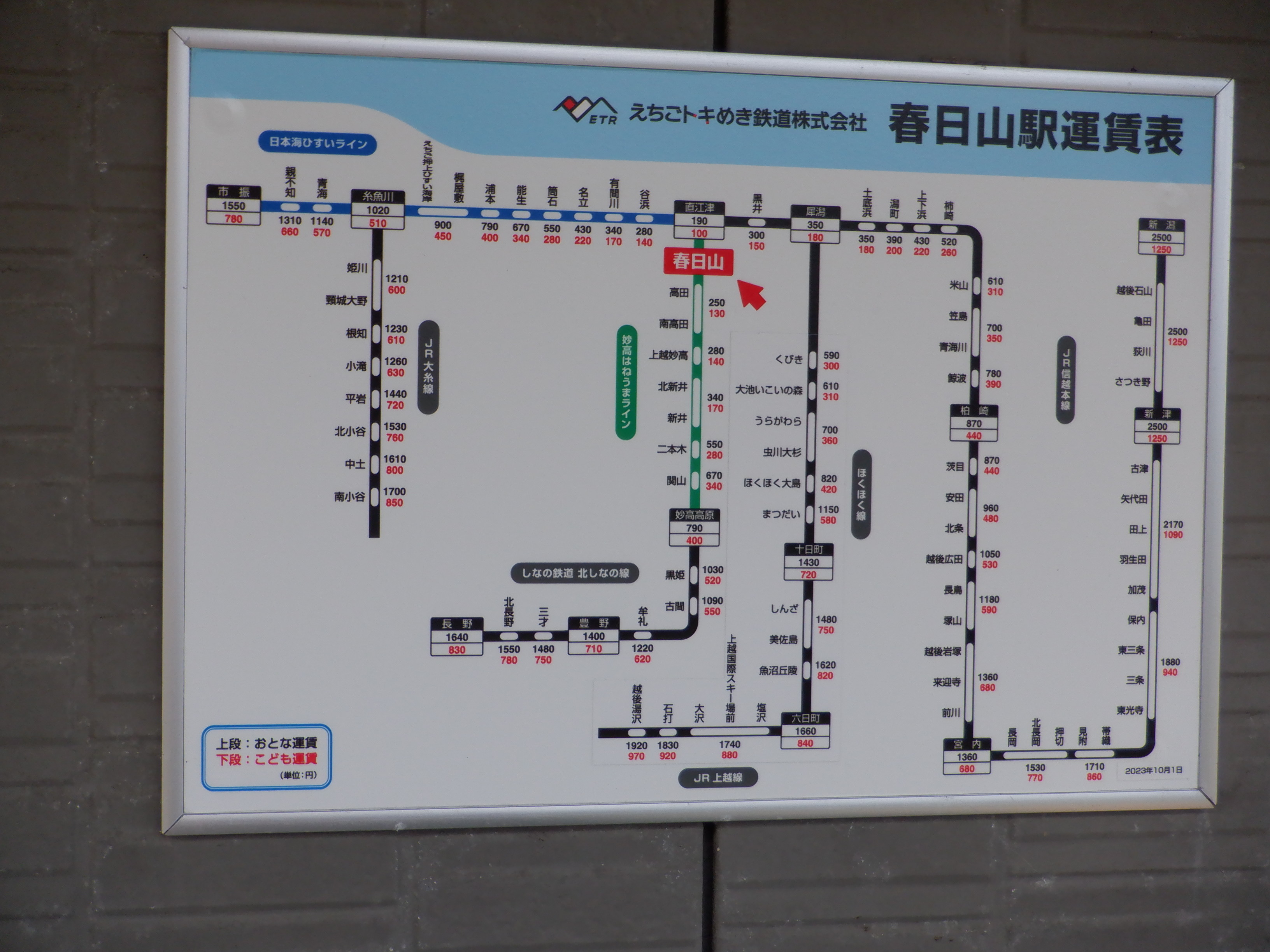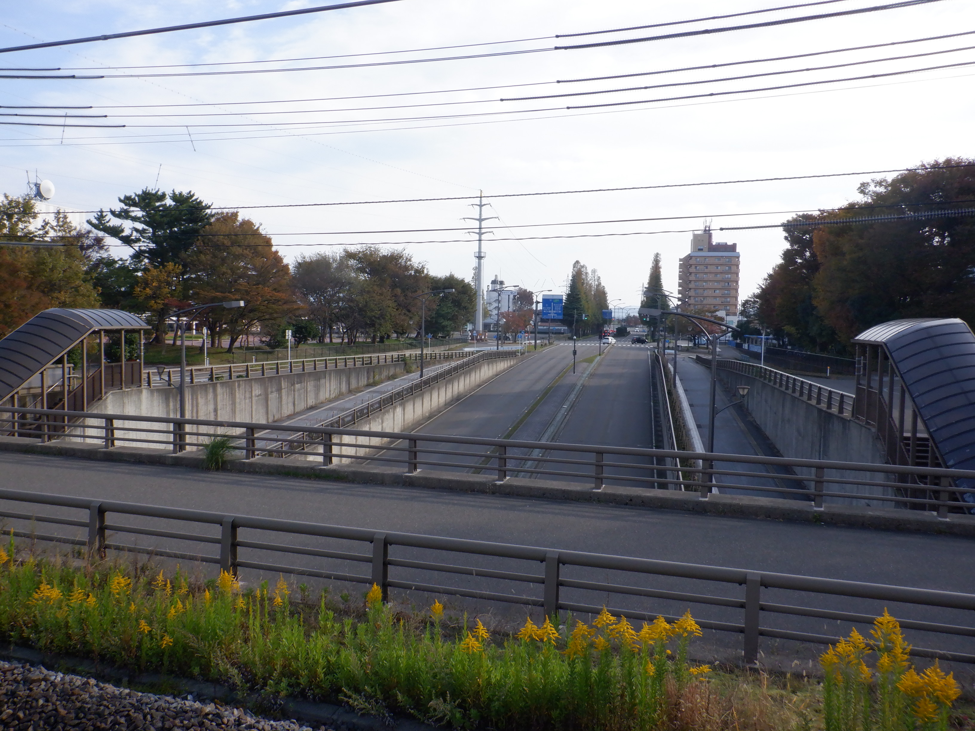 上越市役所の近くにある駅で、ホームからもその建物が見えます。ホームの下には謙信公大通りが交差しています。2002年に移転しているため駅舎・ホームともに新しいものになって、すっきりとした構造になっています。