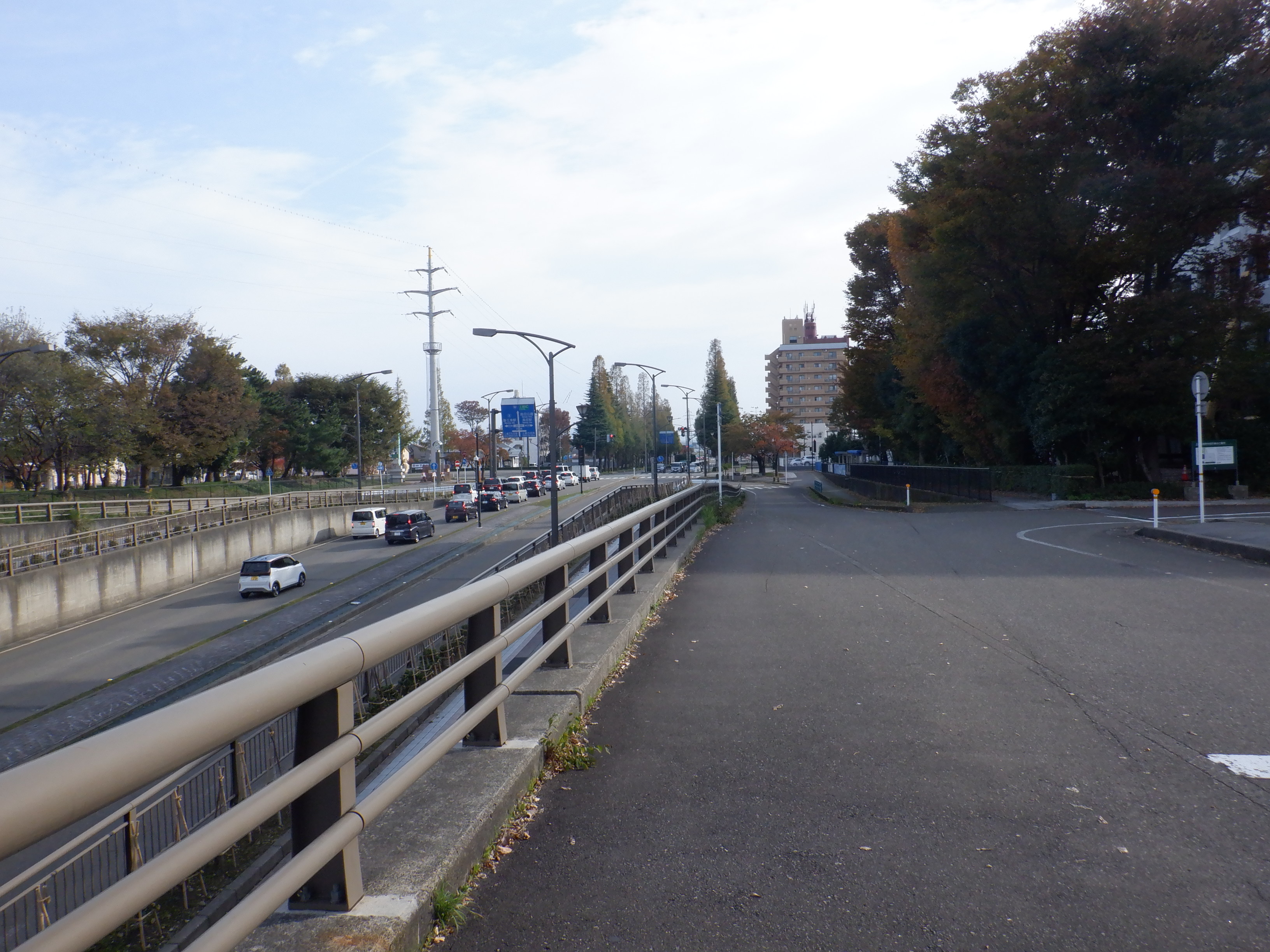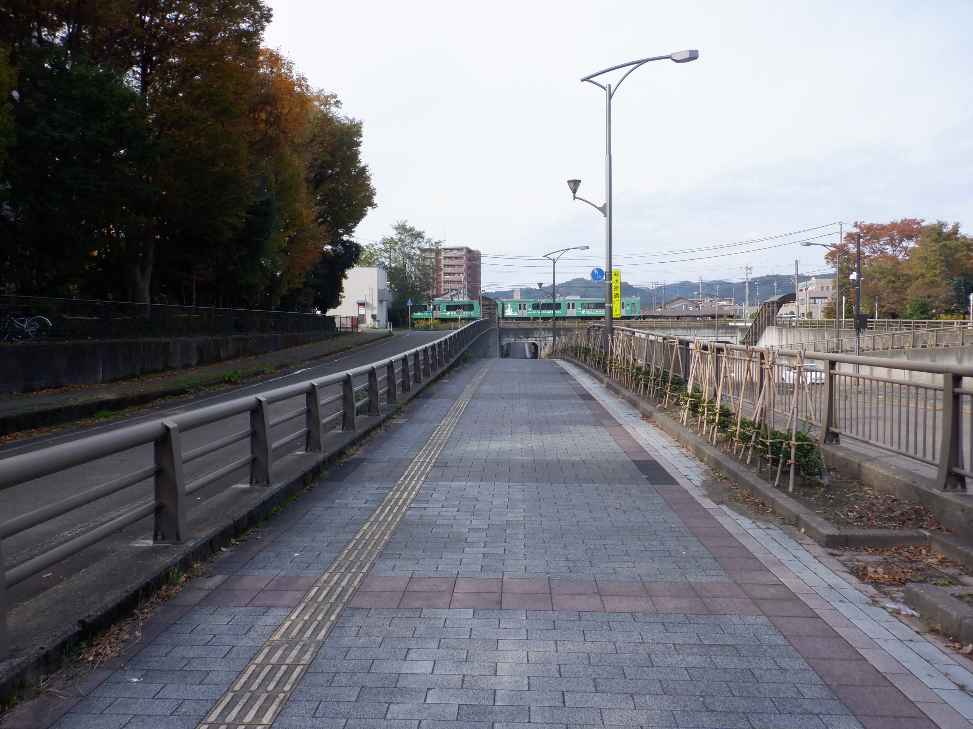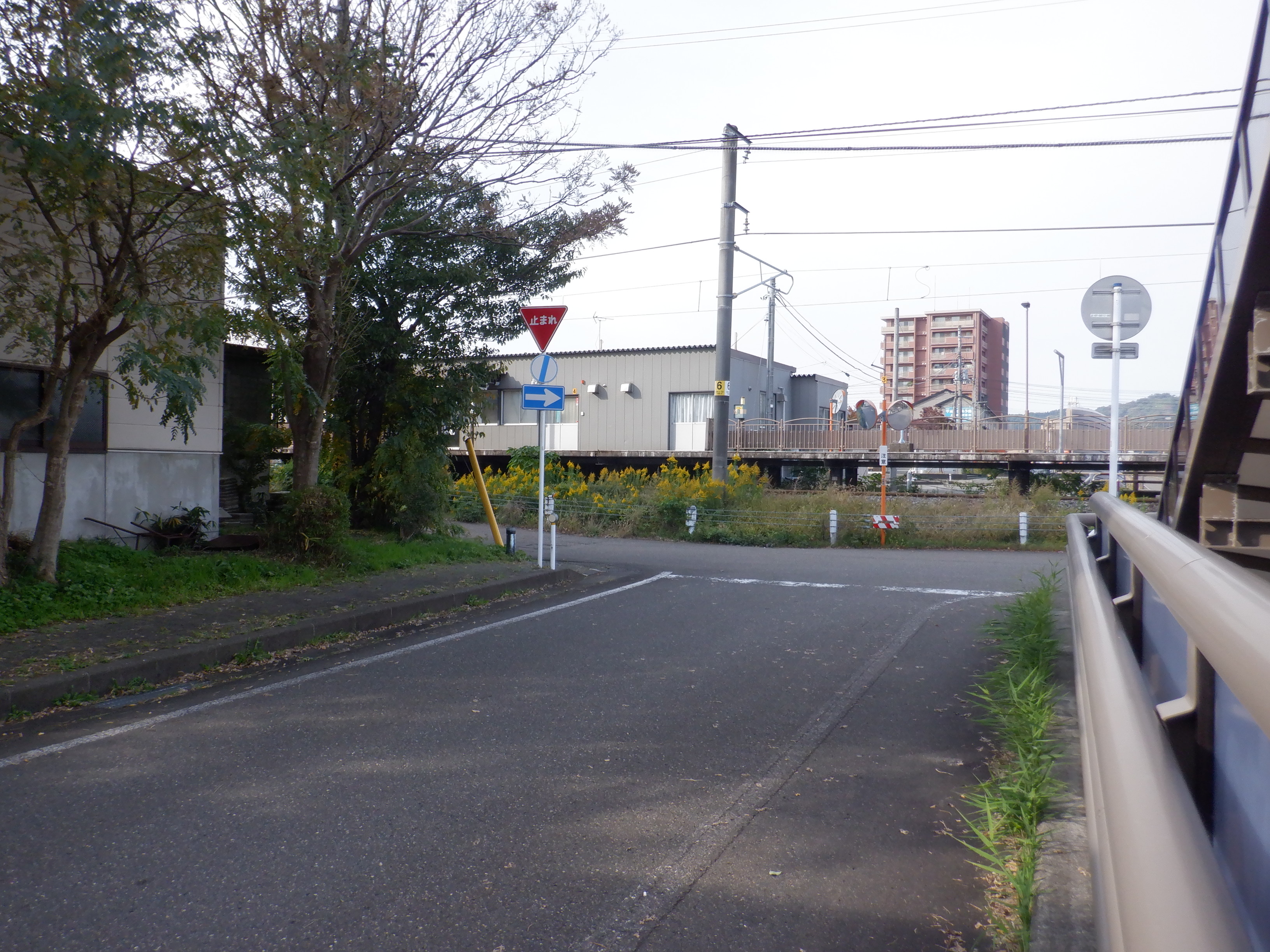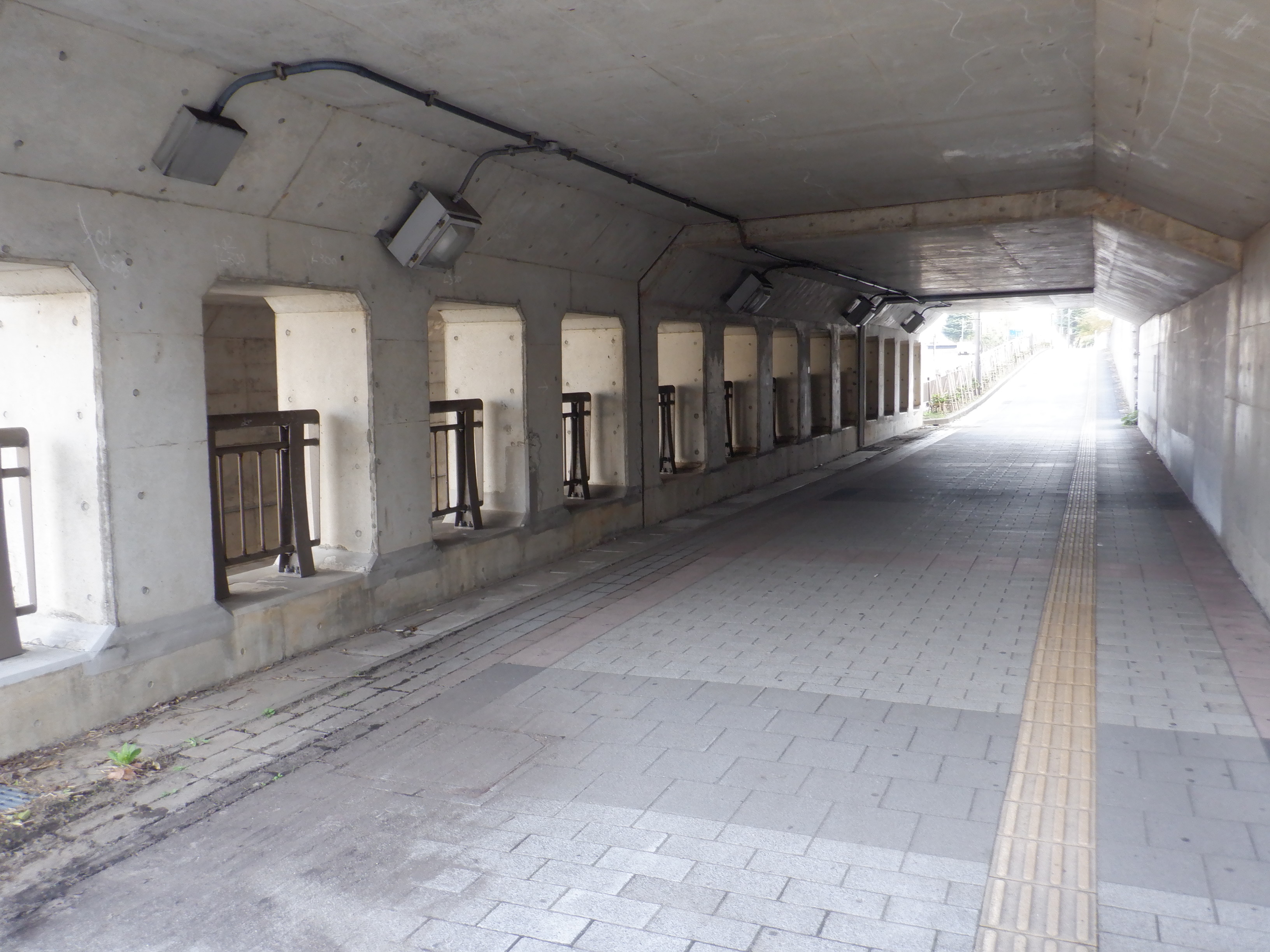 道路に戻ります。線路の下をくぐる入口ですが、画像右側に進みます。