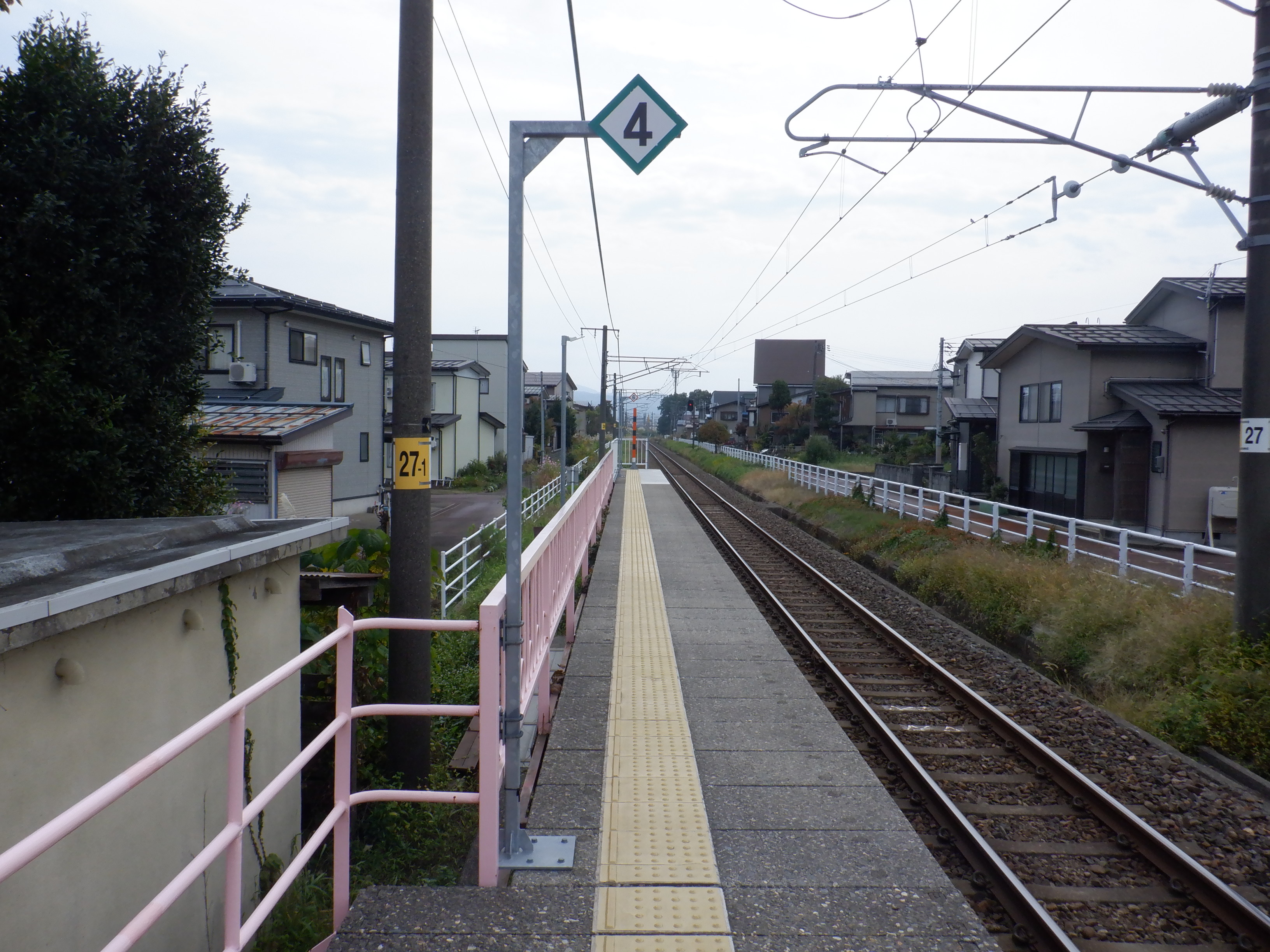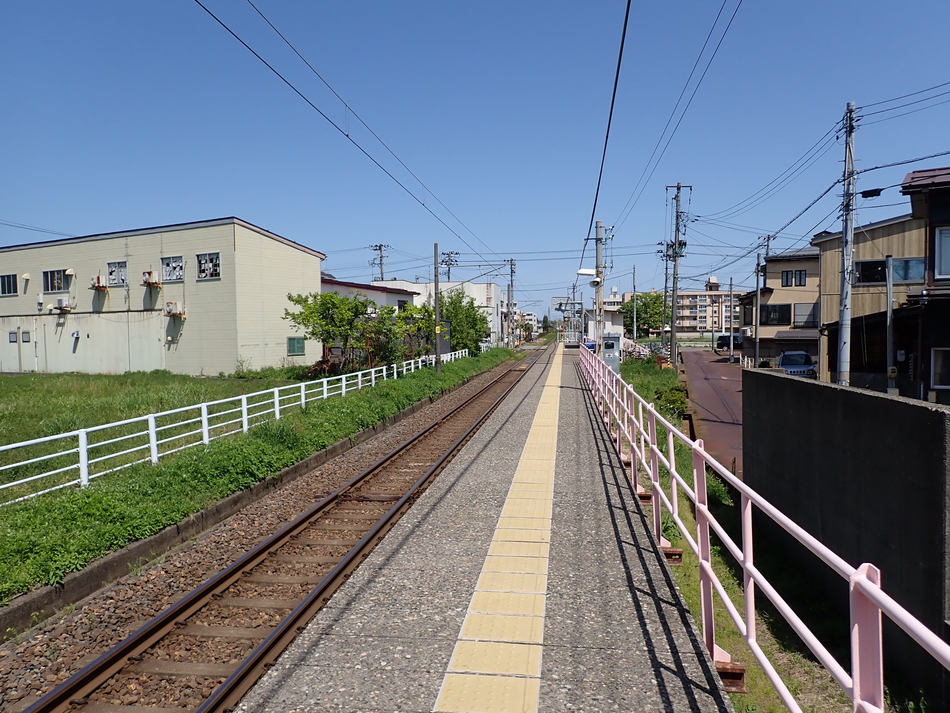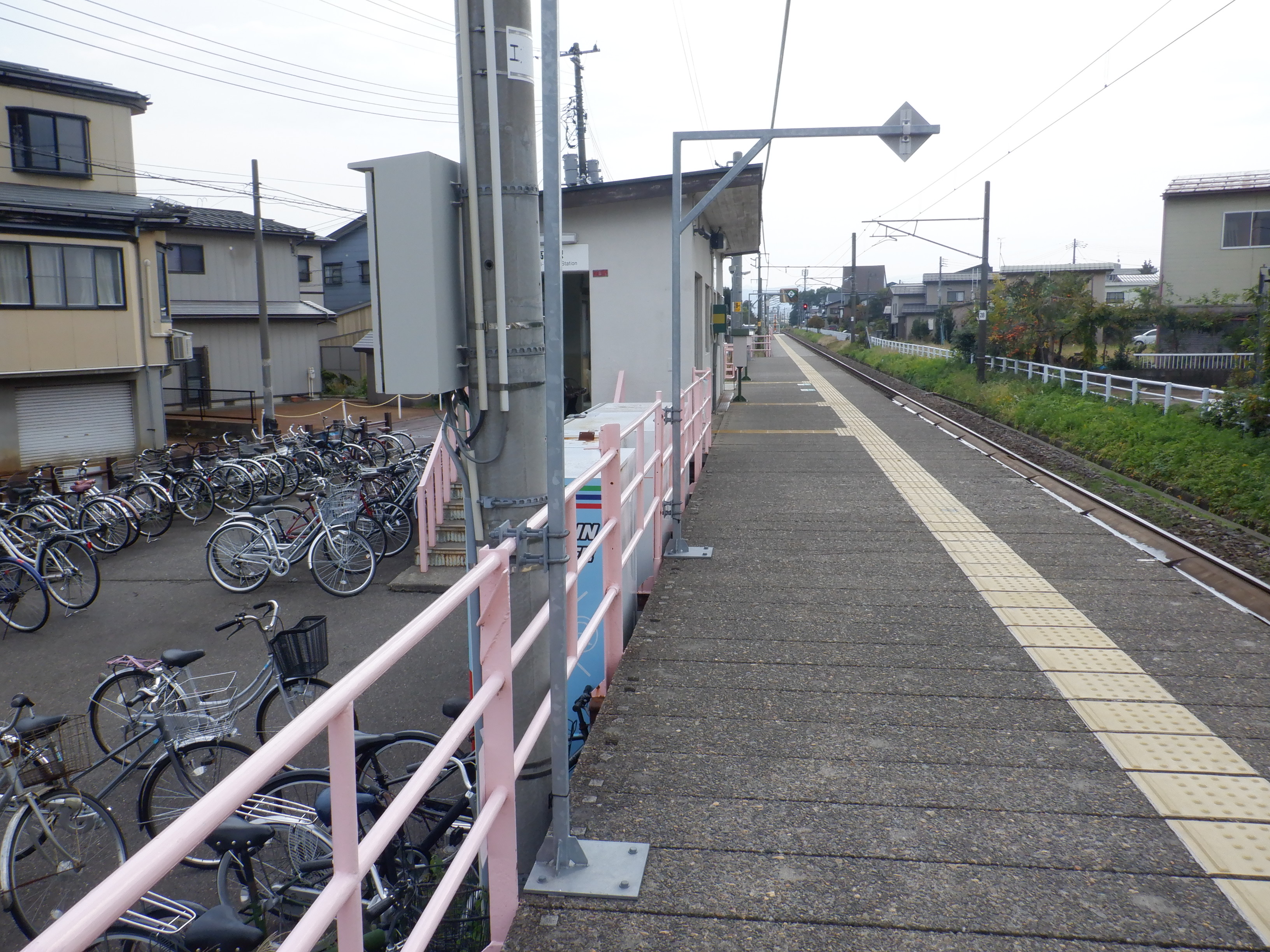 市街地にある棒線駅で、駅舎というよりも少し大きめの待合室には列車が来る時間帯になると多くの人が集まってきます。2024年4月よりネーミングライツによる副駅名として「有沢製作所前」が追加されています。