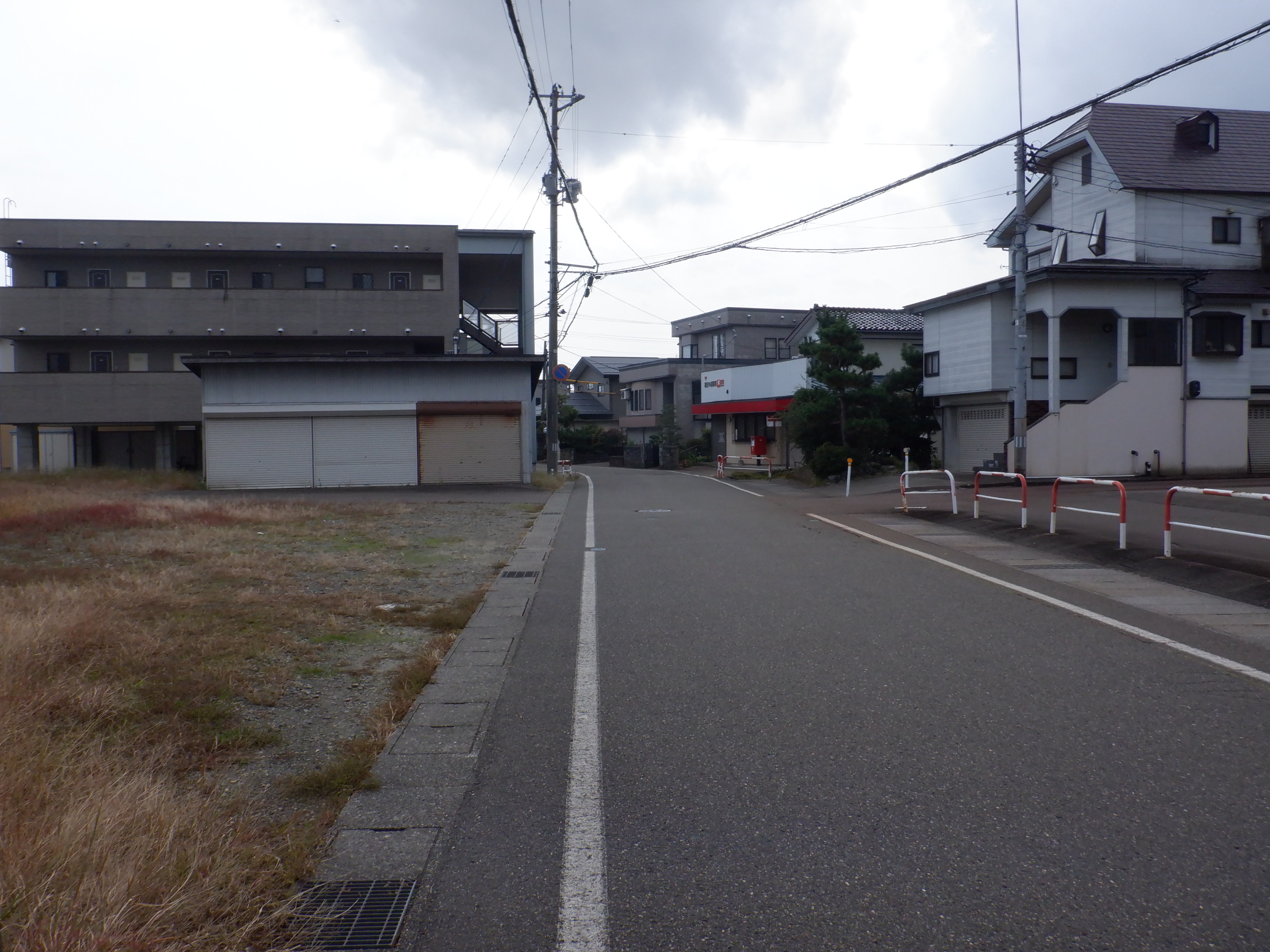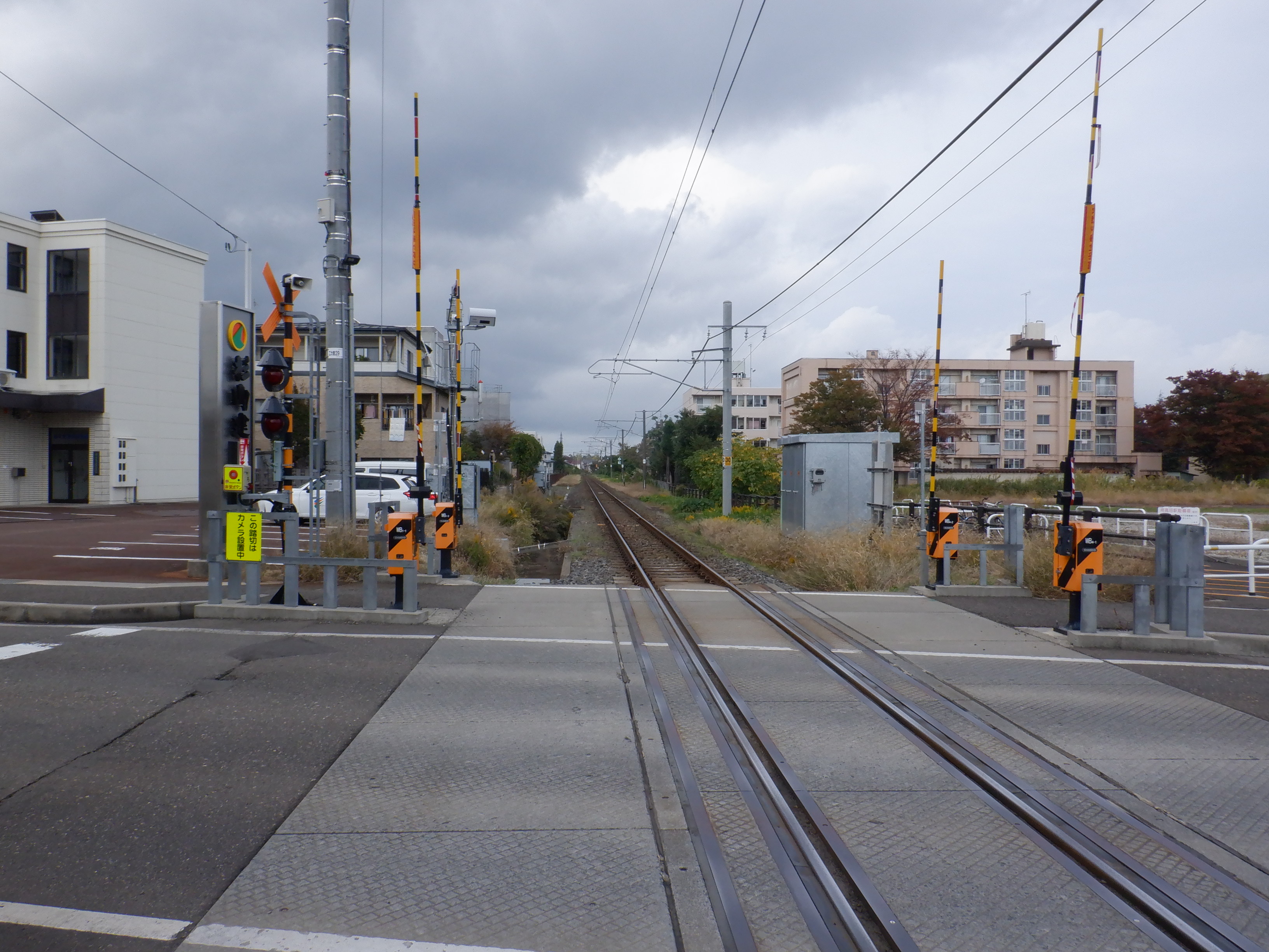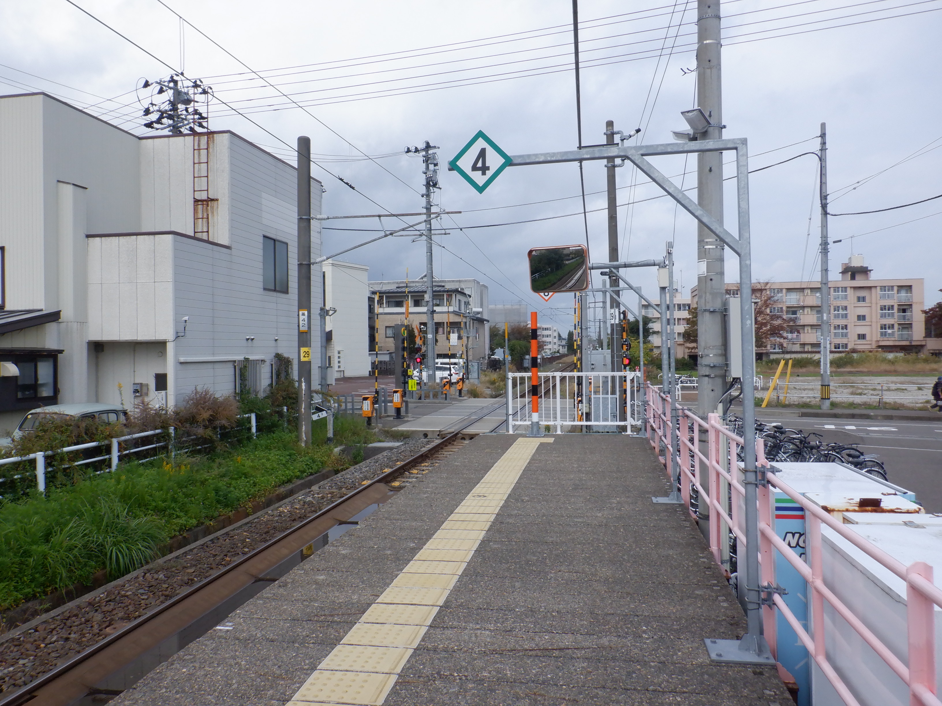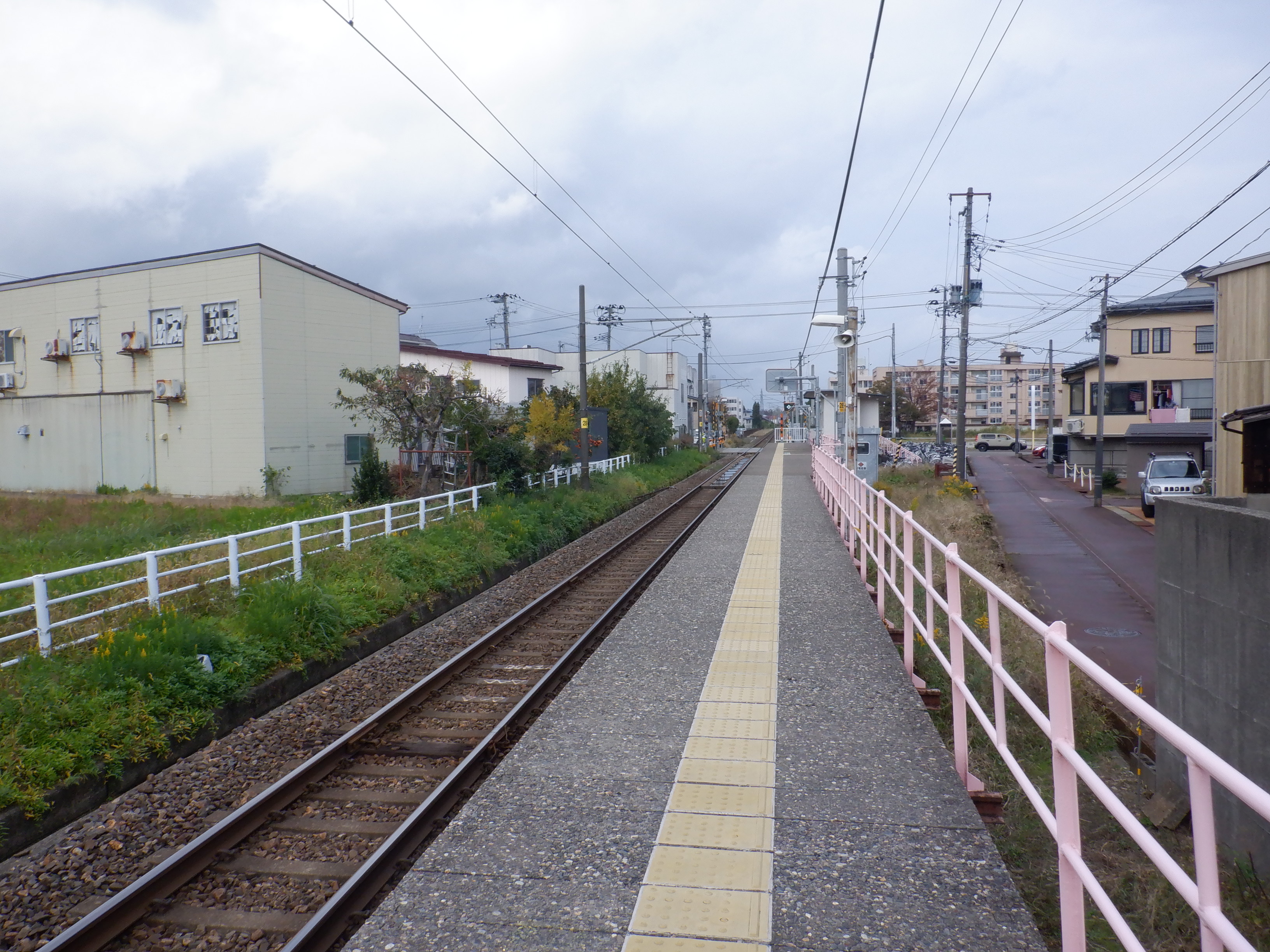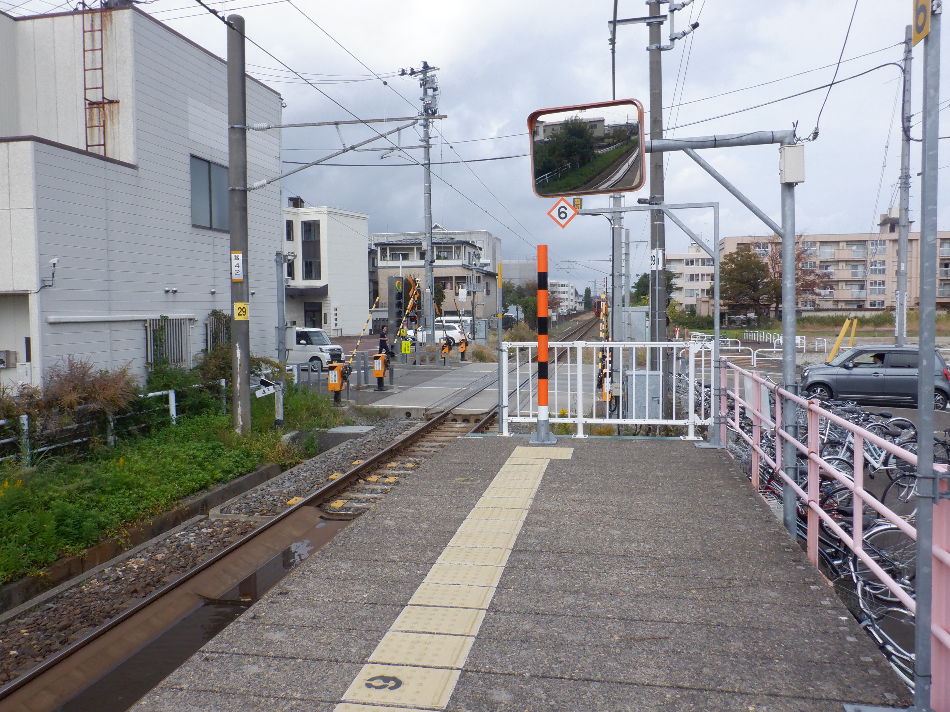 踏切を渡って少し進んだところから線路と平行に進んだところ。ホームの反対側に出ました。
