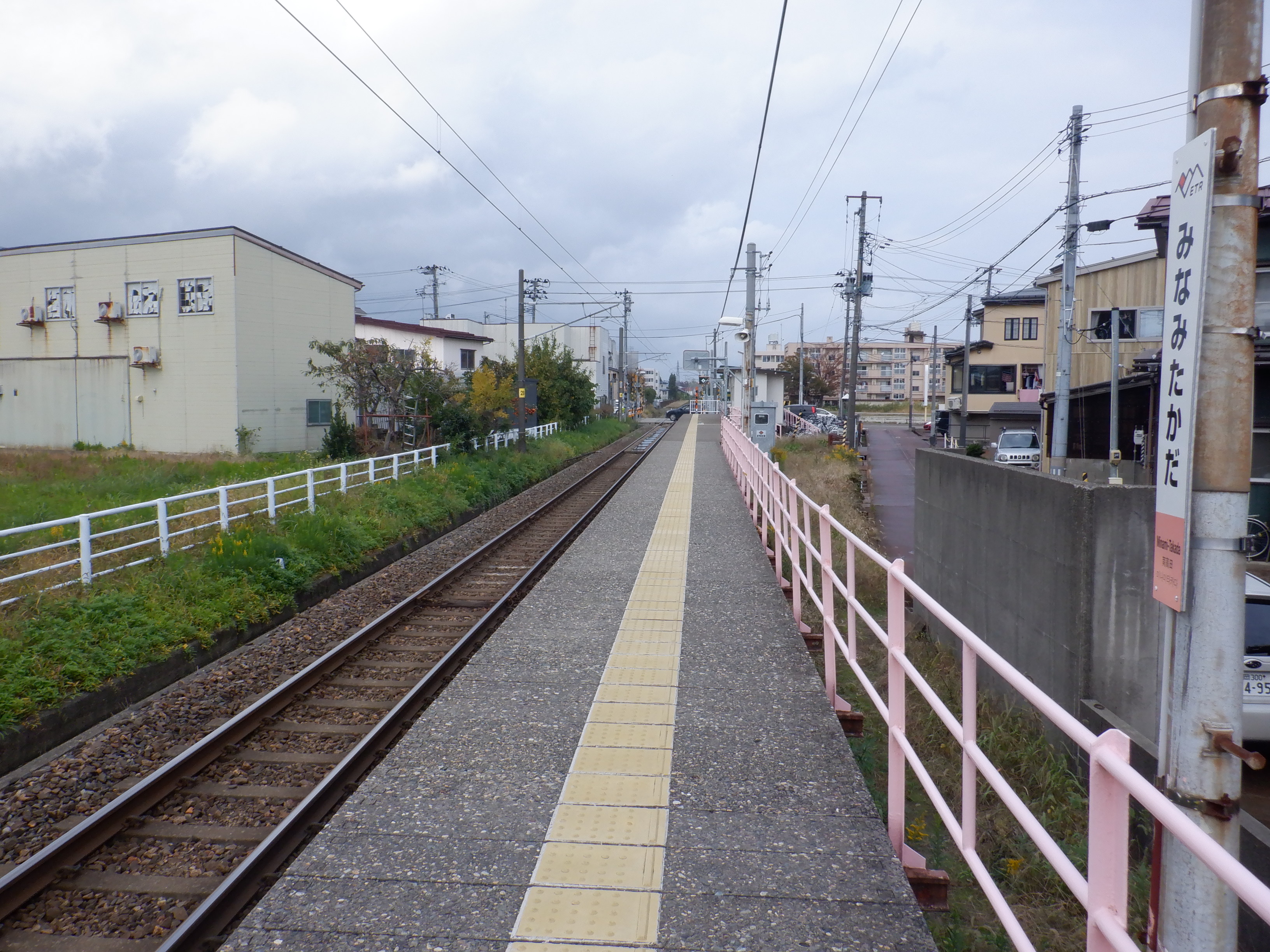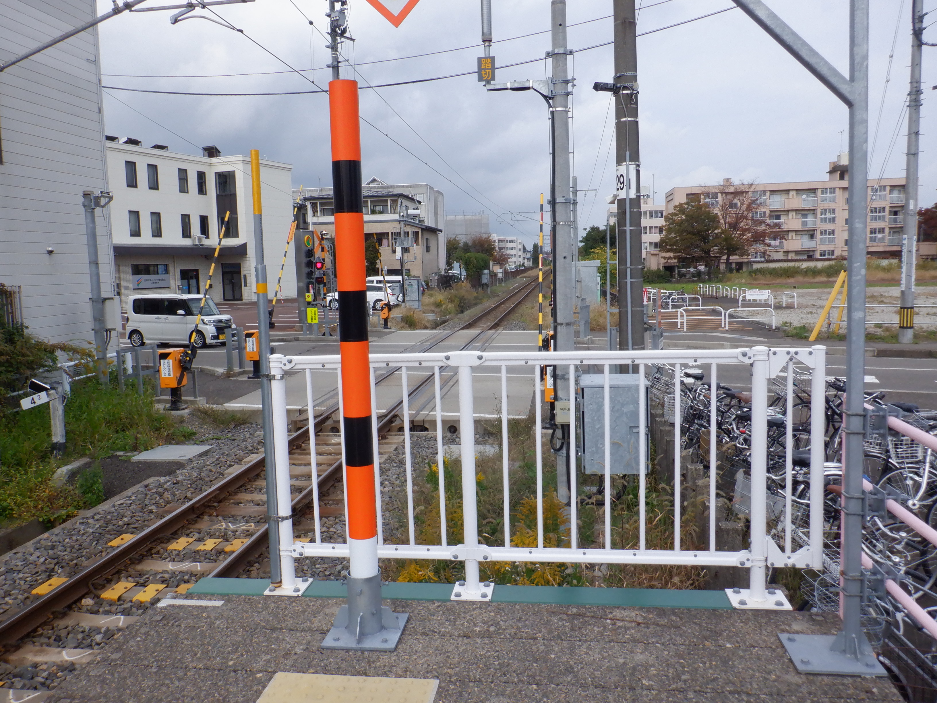 道路に出て駅を見たところと、そこから見た線路と反対側。