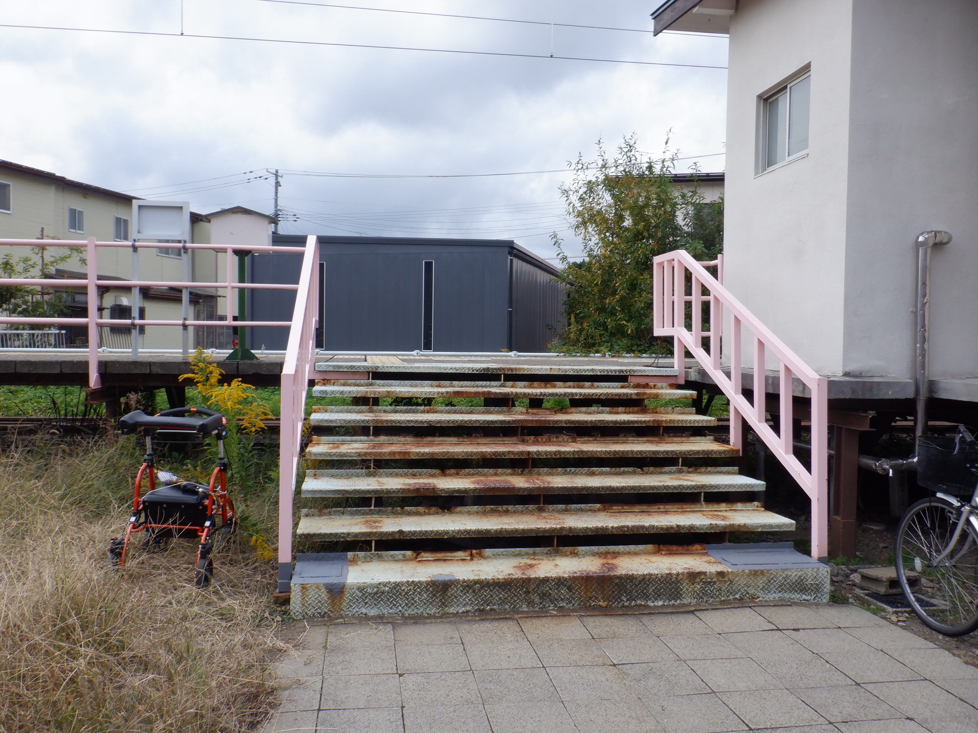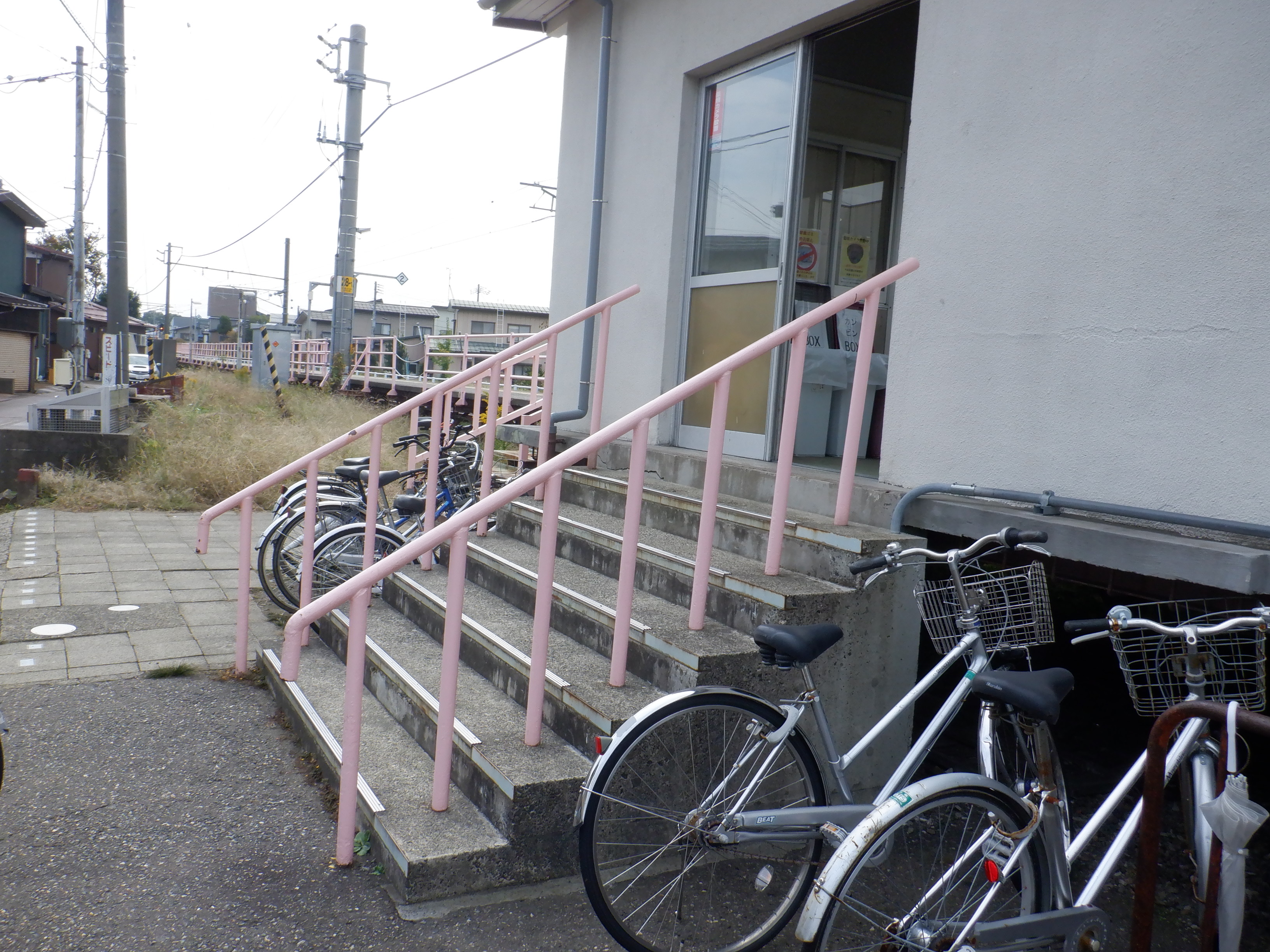 駅舎の上越妙高駅側にある階段の運賃箱等。