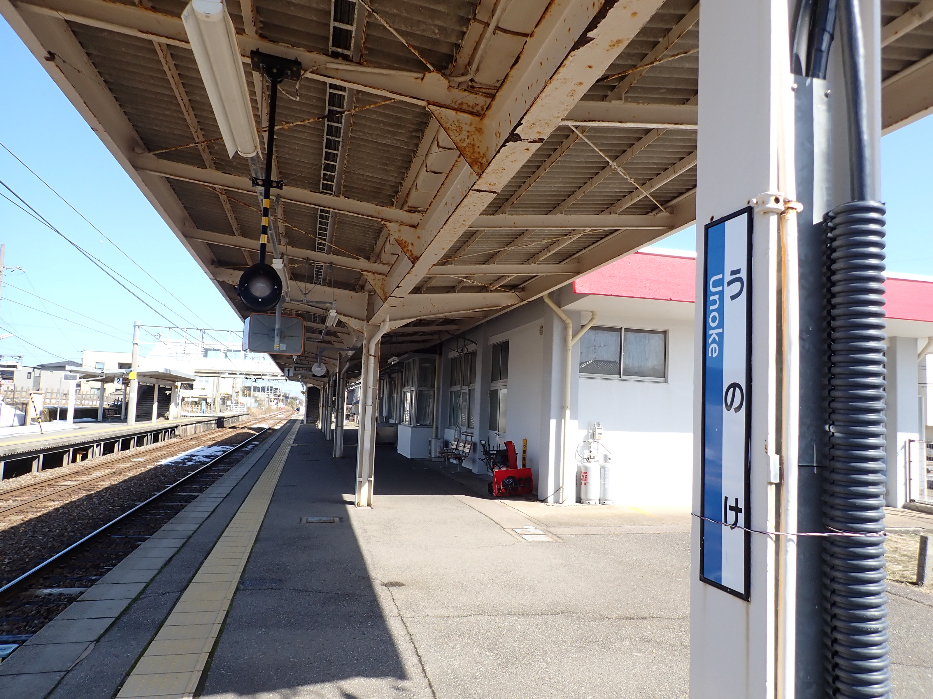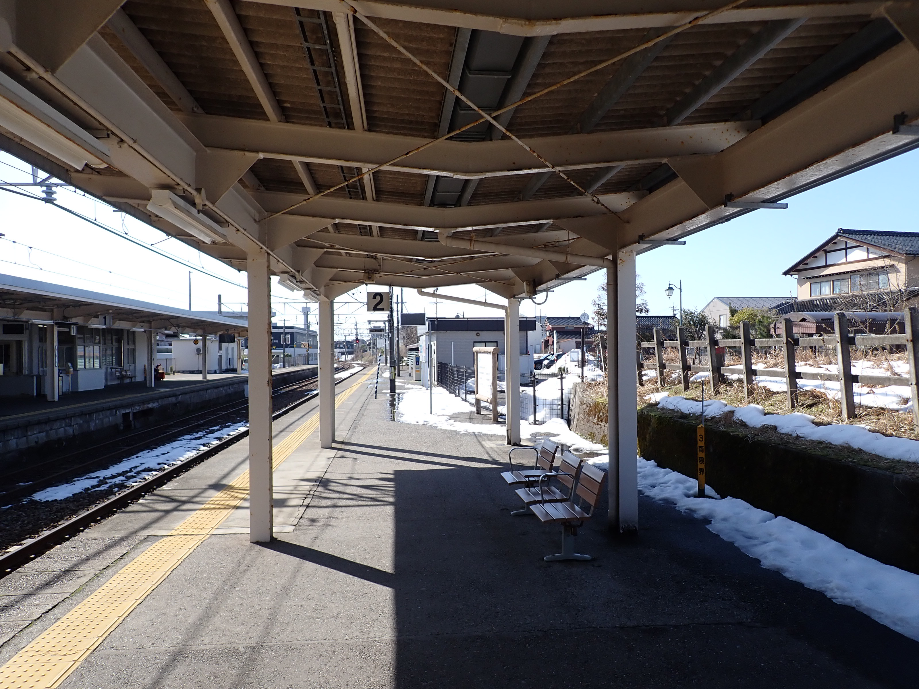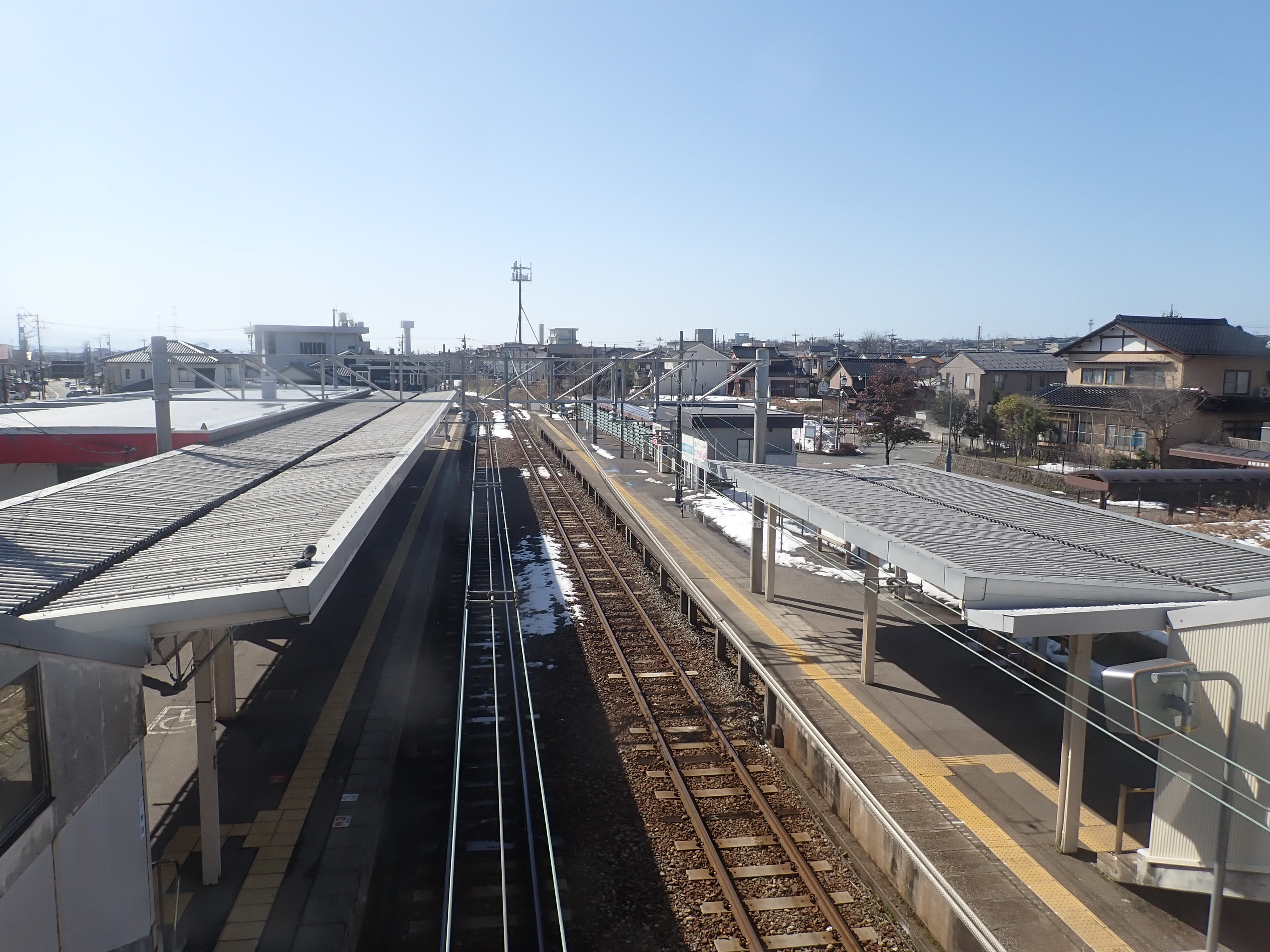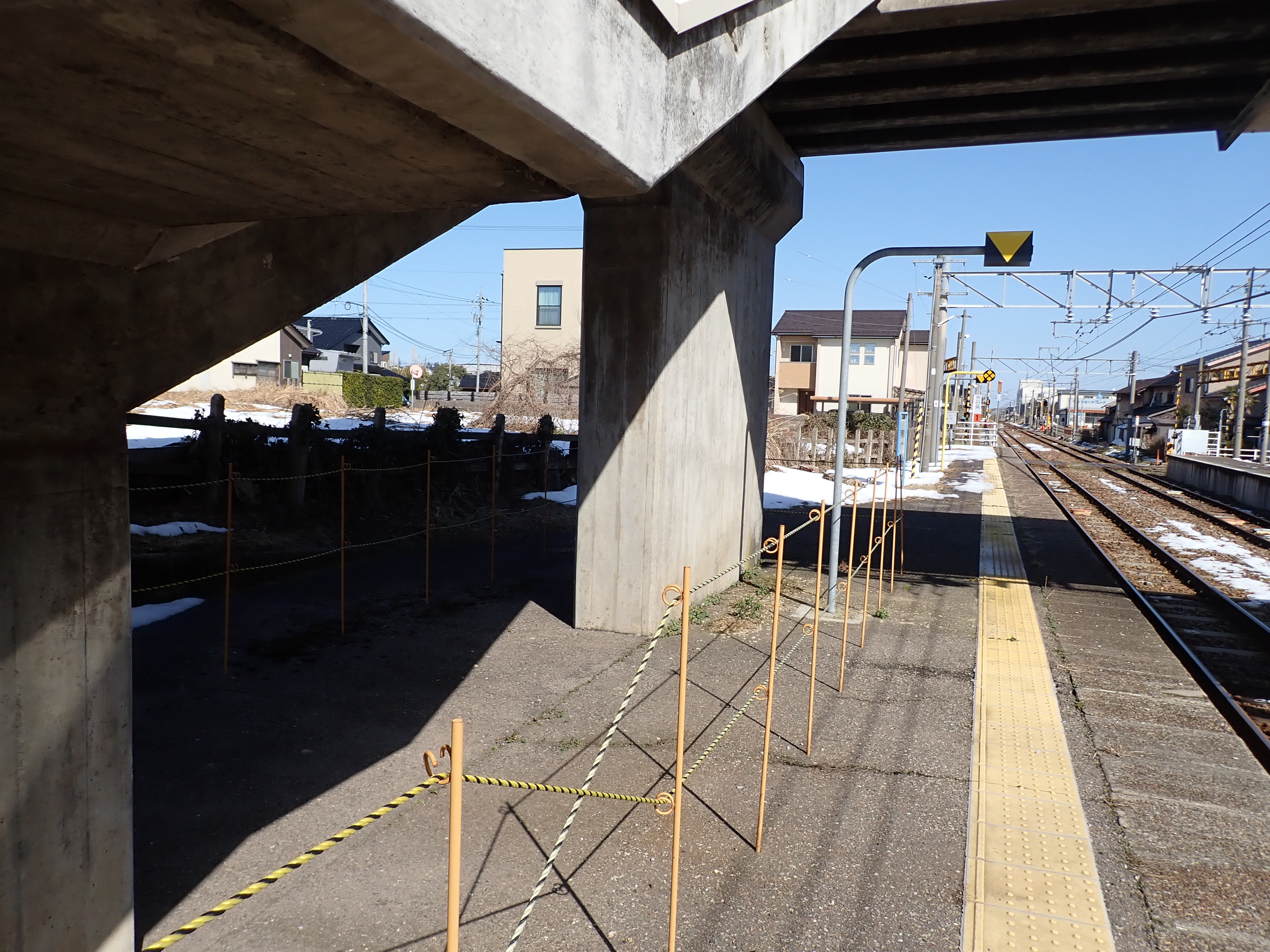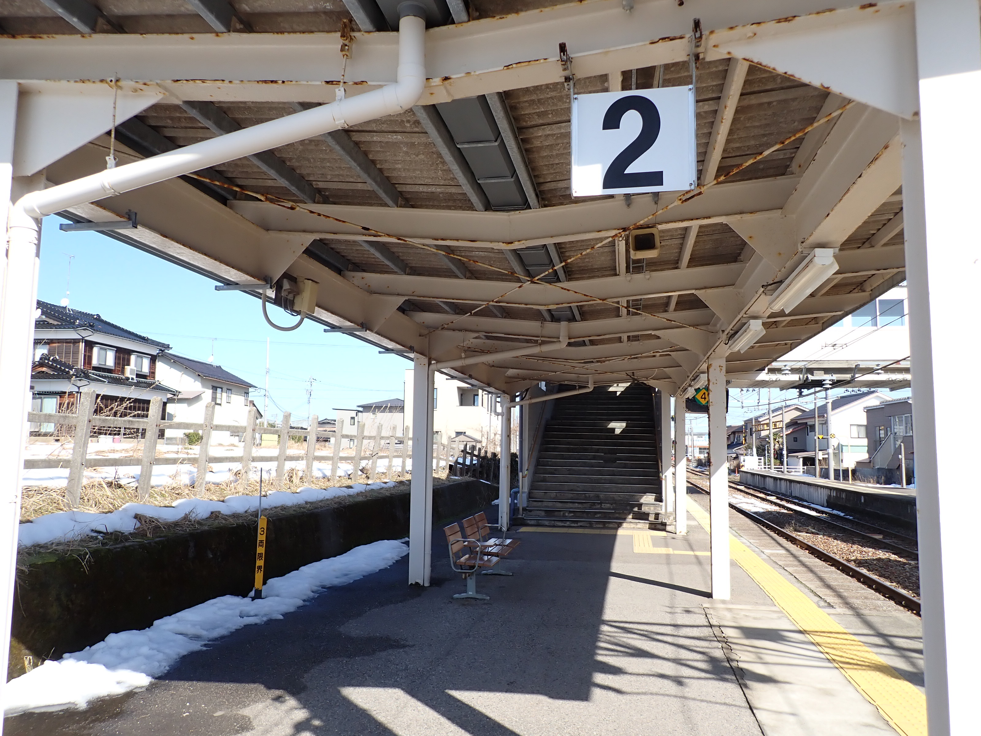 この駅から内灘駅を経由して金沢駅西口(その前は兼六園下)までの路線バスが3月31日に廃止になるため改めて撮りつつ、2023年の分として駅全体を撮ってあります。