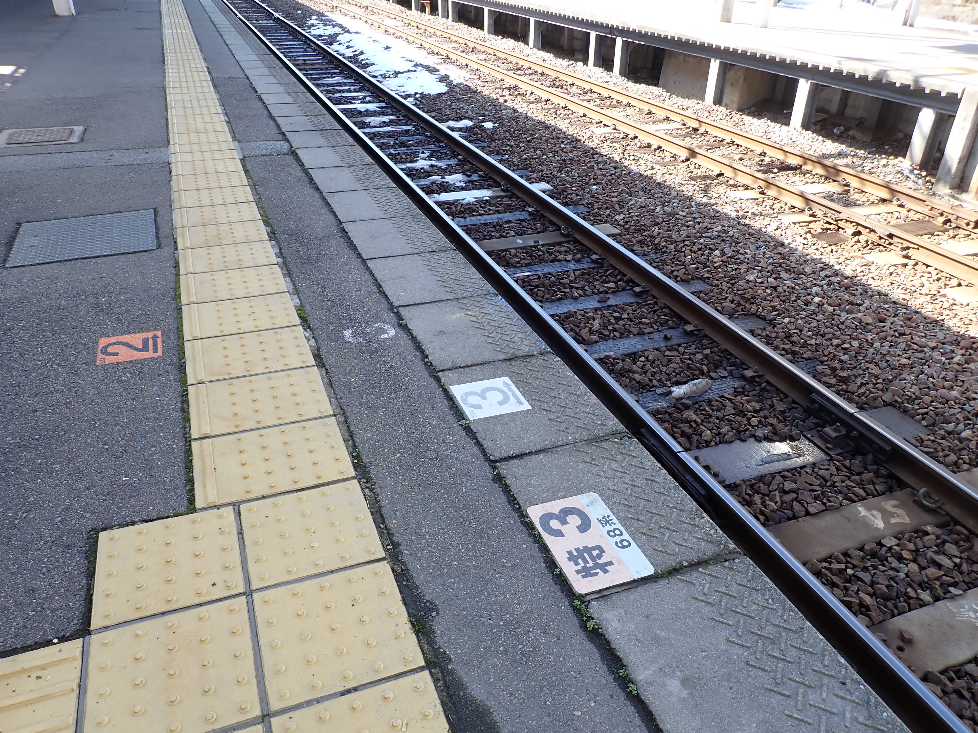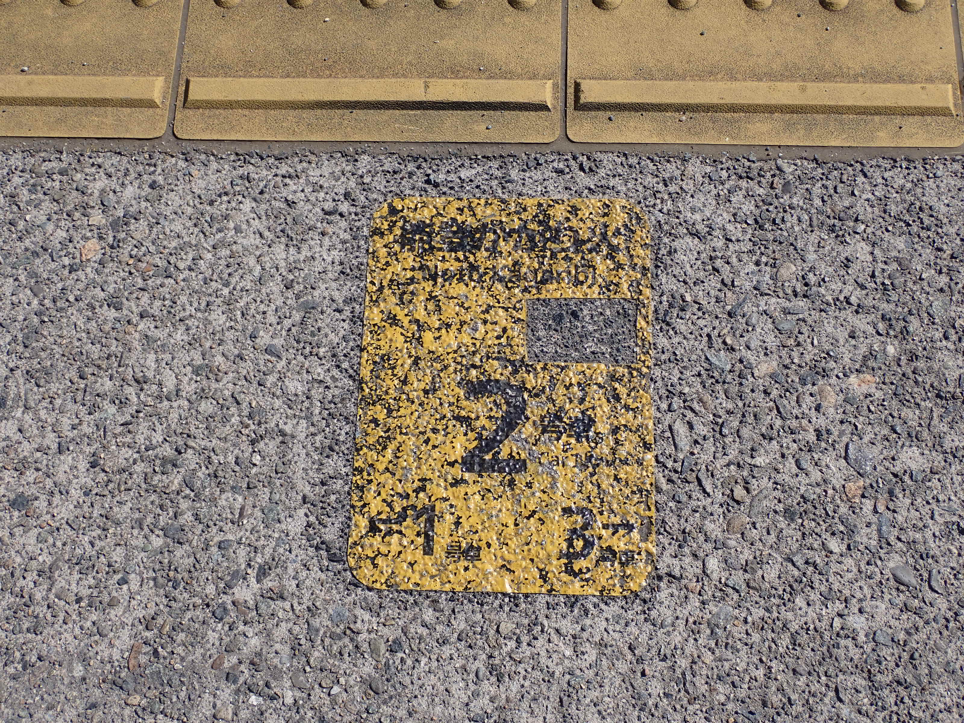 ワンマン乗車位置案内にならなかったものと2番のりば上屋付近。