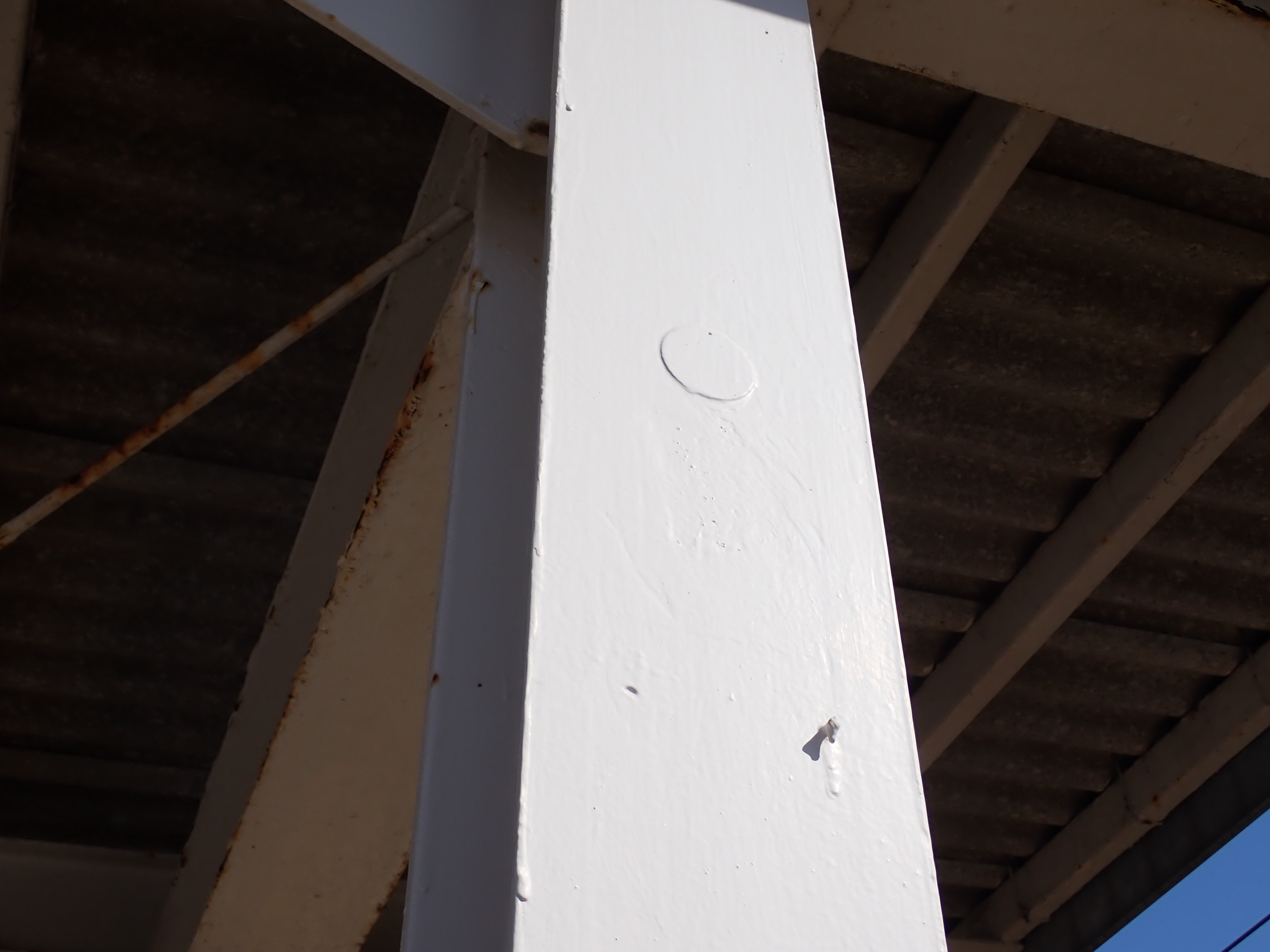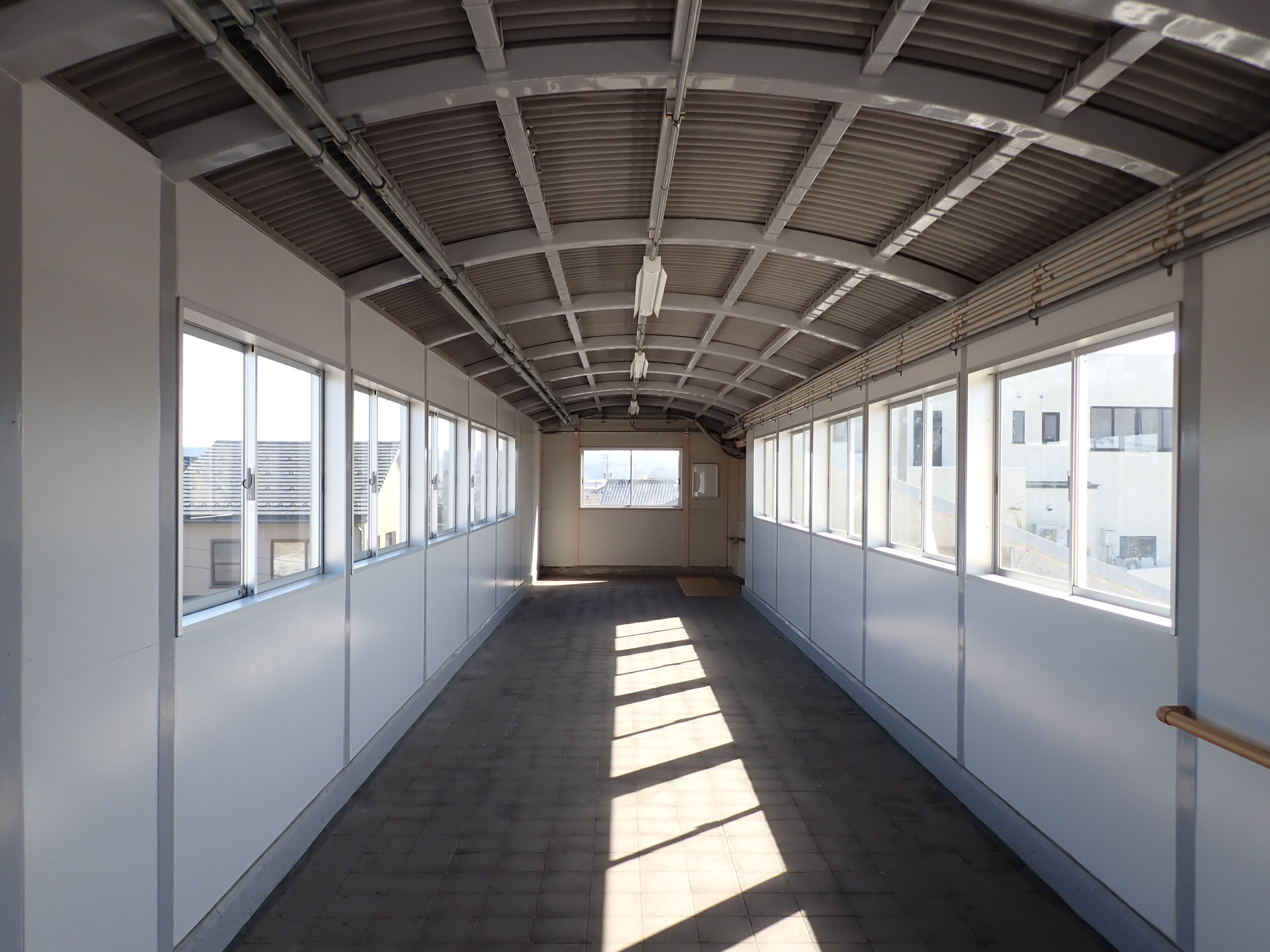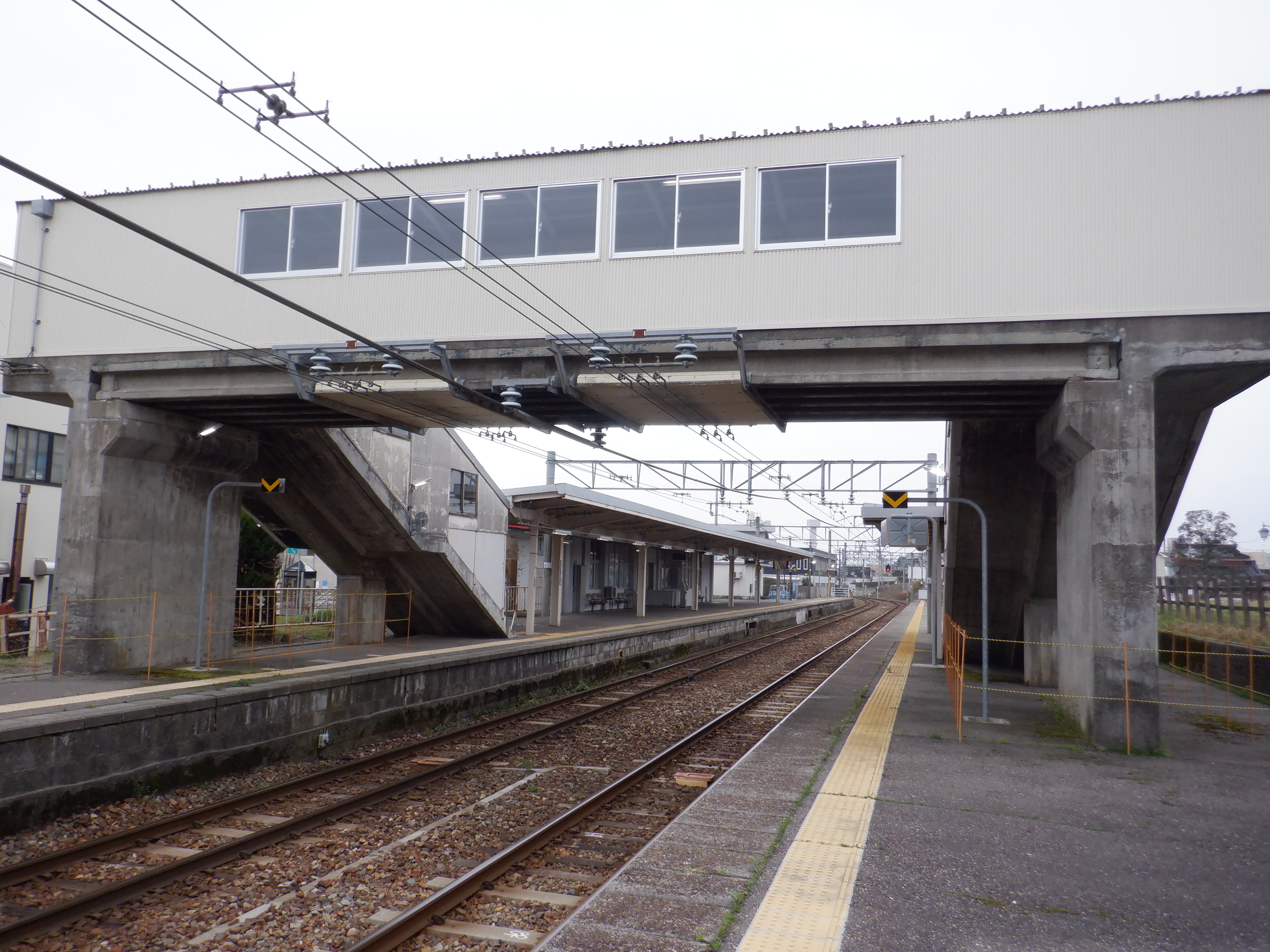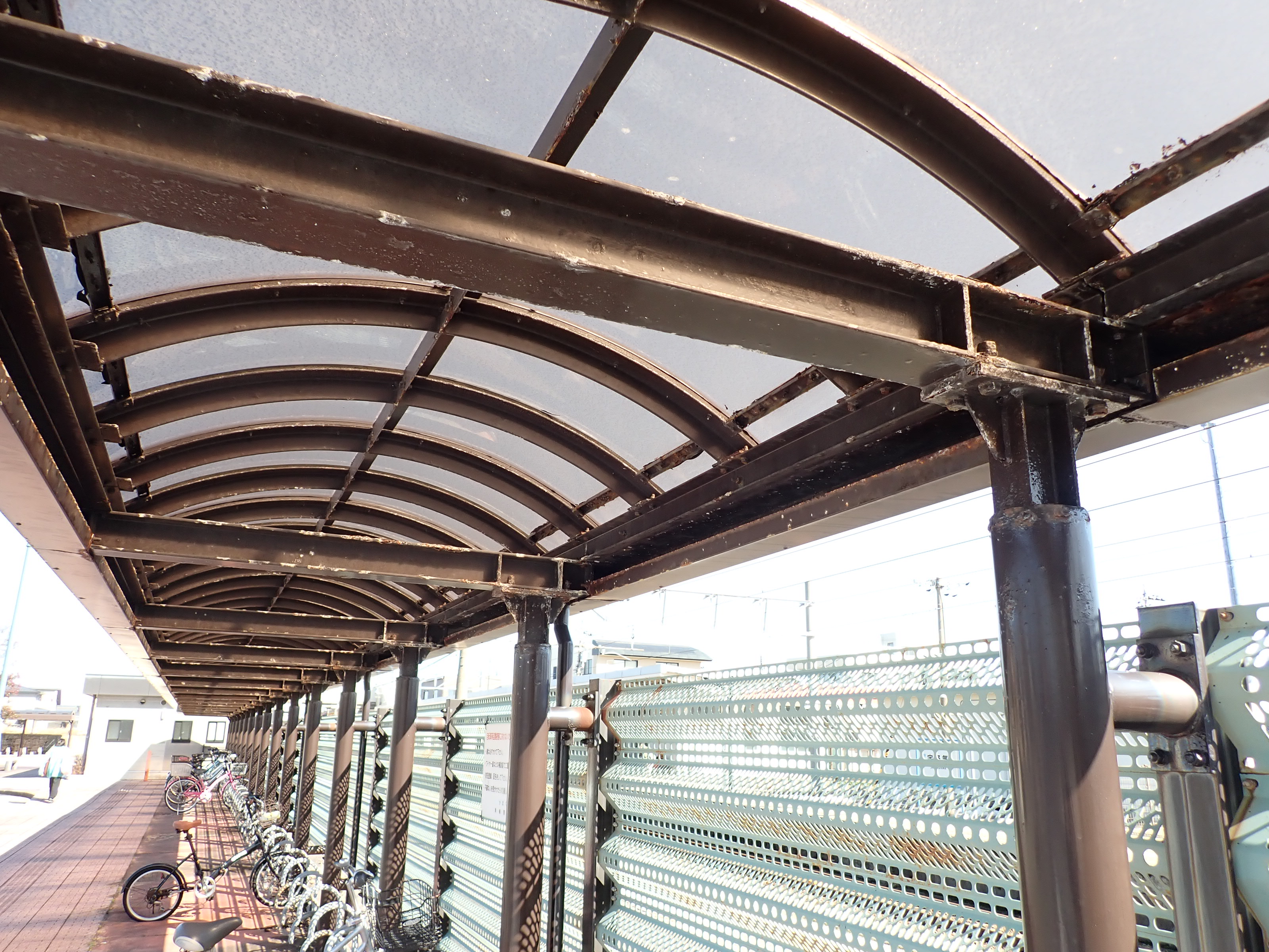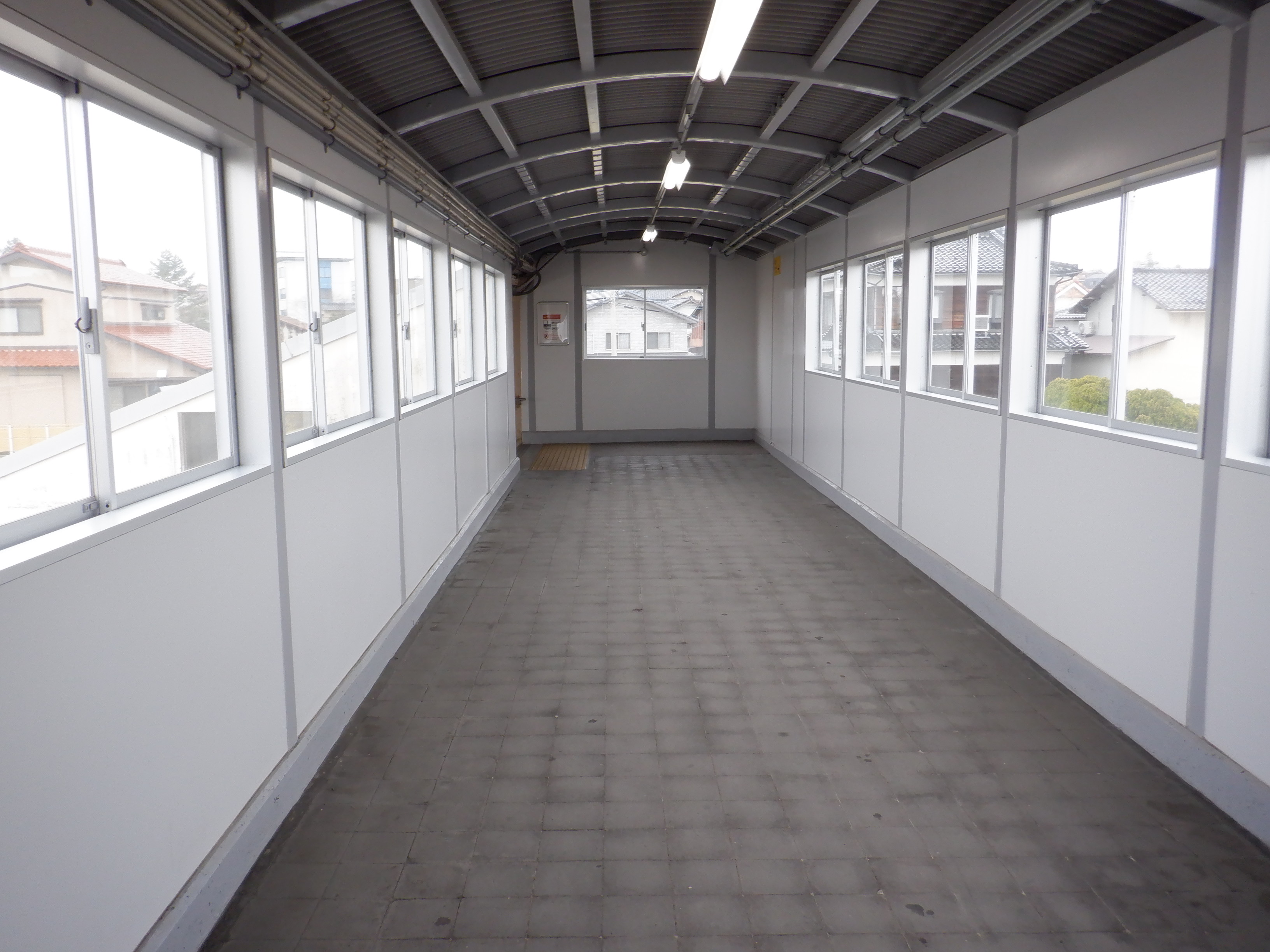 跨線橋の跨線部分、2番のりば側半分が古いままだったものが新しくなりました。施工時期が異なり、跨線部分の突き当たり(階段からの延長部分)が1番のりば側は古いまま、2番のりばは新しくなっているという違いが出てきました。