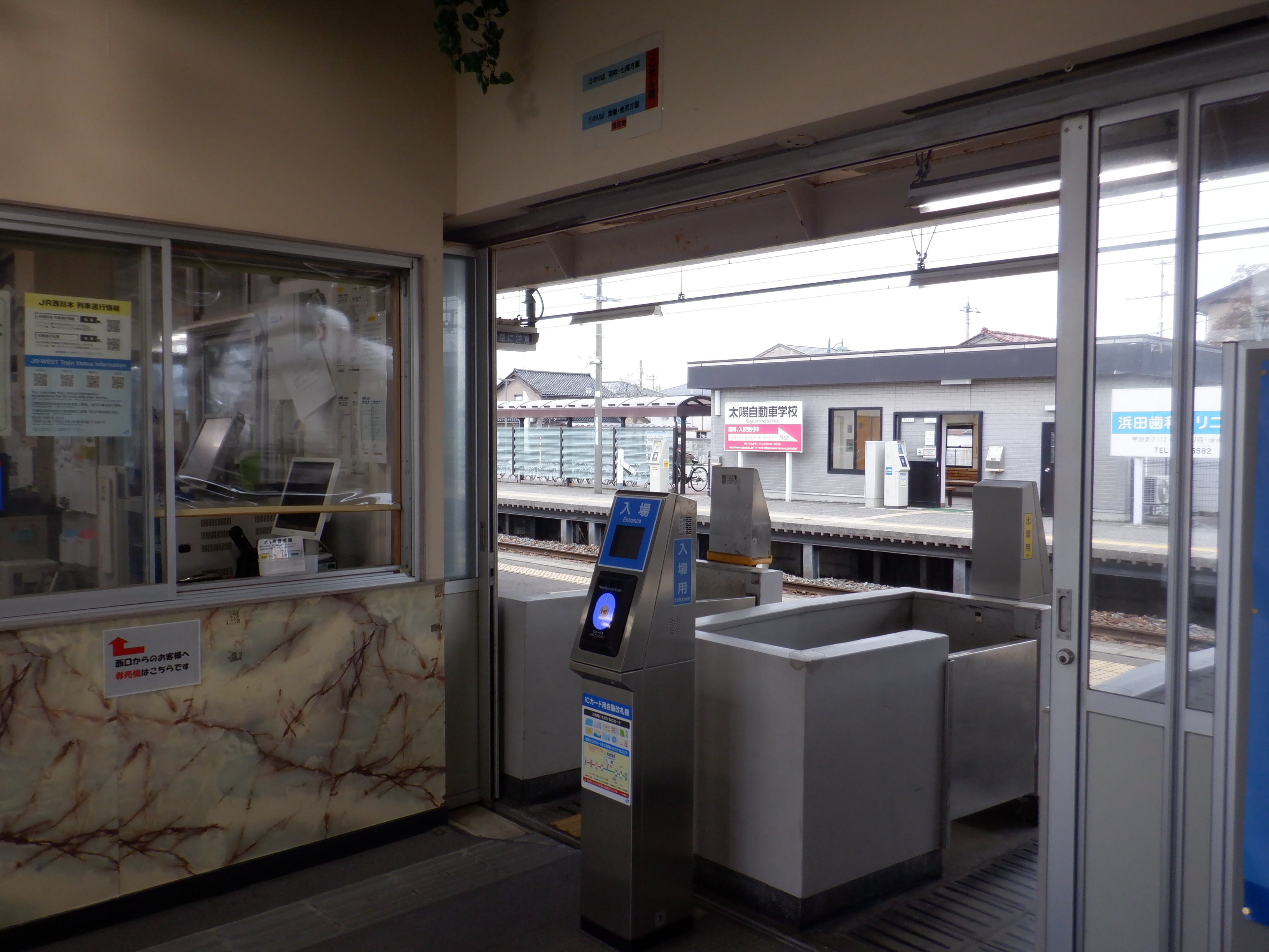 西口側。時間外出口だったところに集札箱や出場のICOCA改札機があります。