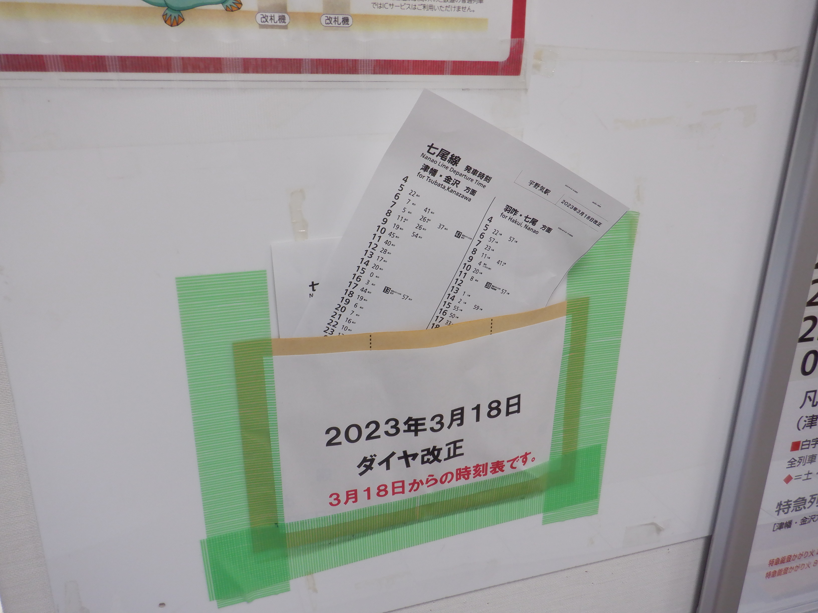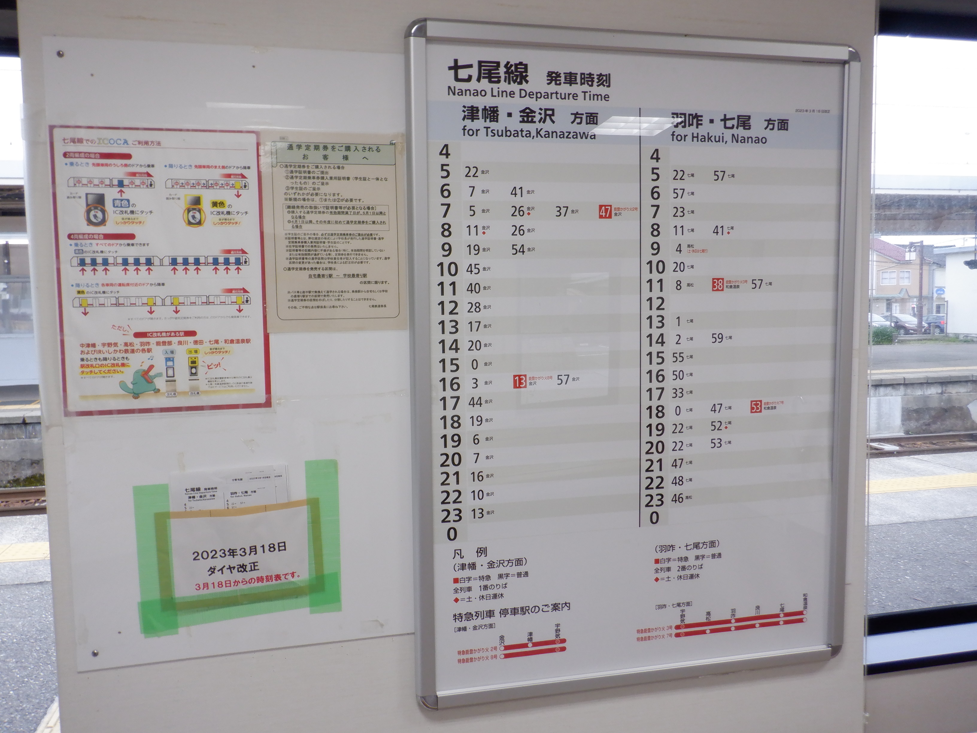 前年の3月改正で特急能登かがり火の停車がなくなりました。名残が残っているものと消えているものがあります。