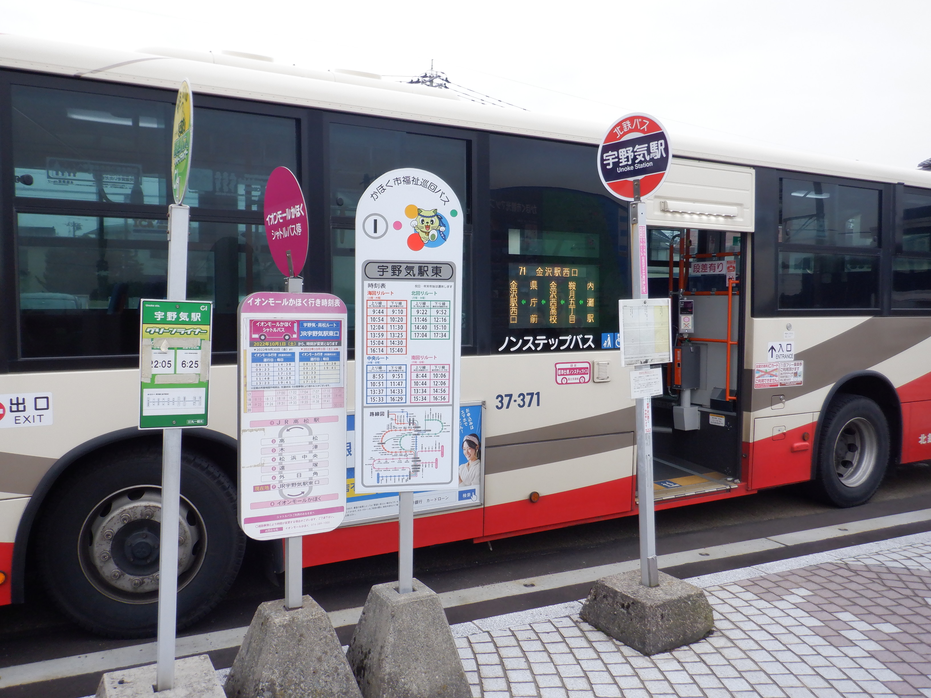 北鉄バスのバス停と時刻表、運転終了の案内。