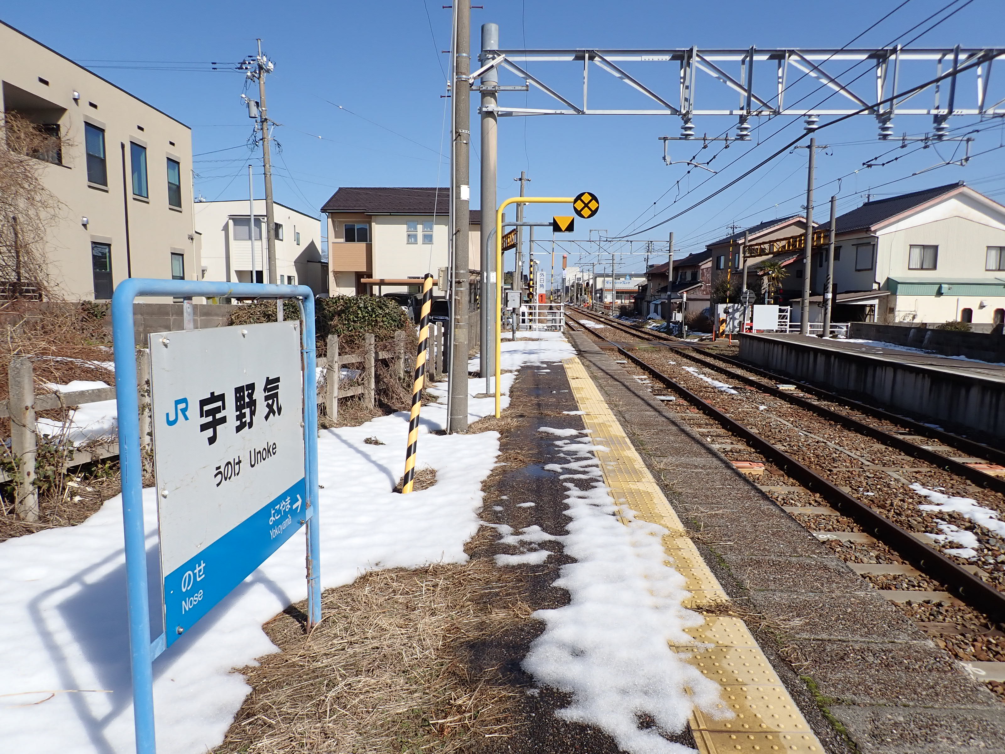 宇野気駅の2023年・2025年の様子で、2024年に撮らなかった関係上、2025年は早めに見ています。それぞれ、跨線橋の様子が前回と異なっています。