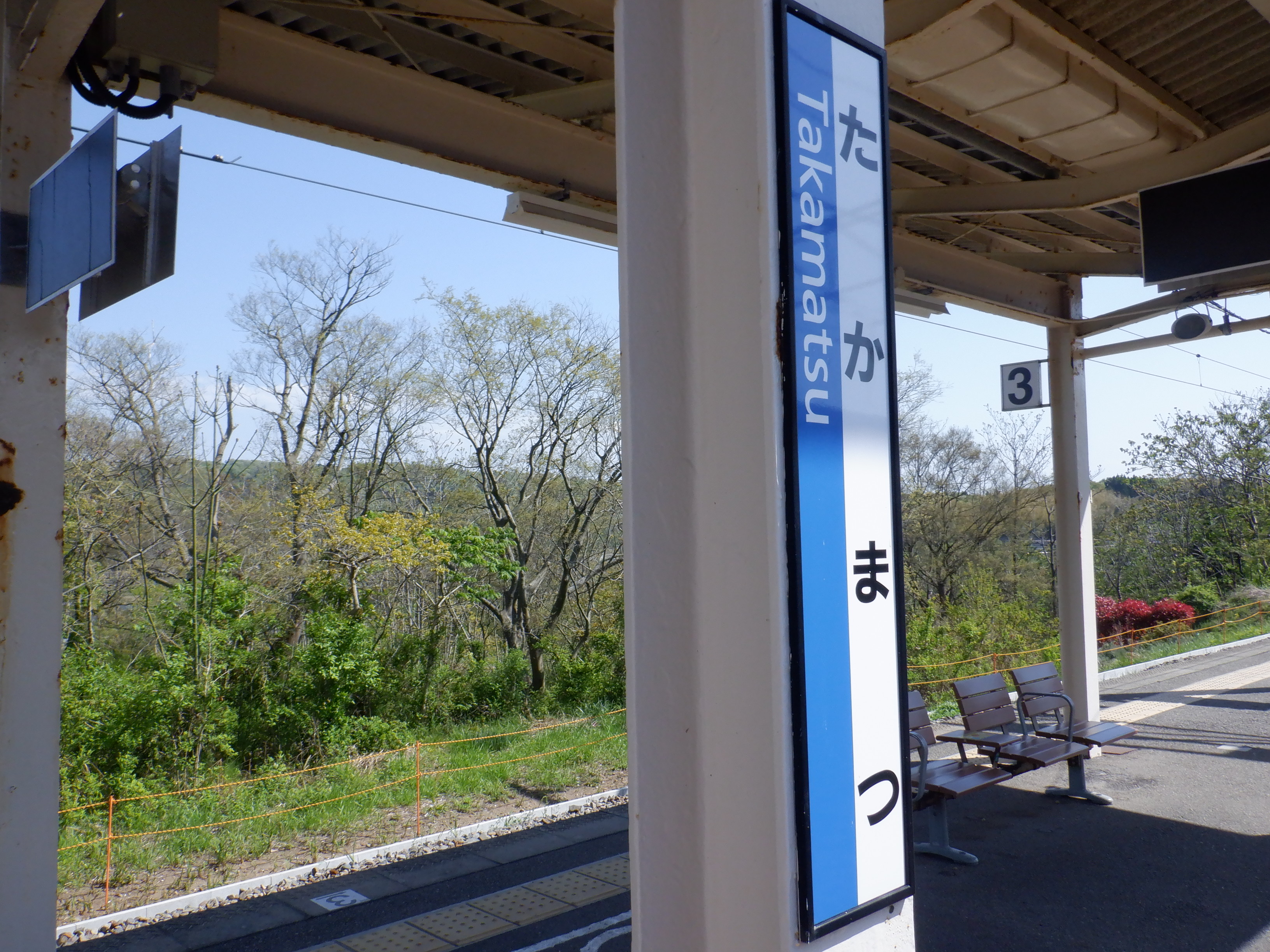 2・3番のりばから見た駅舎と反対側。葉が増えてくるとここから見える風景が限られてくるため、今のうちに見ておきます。