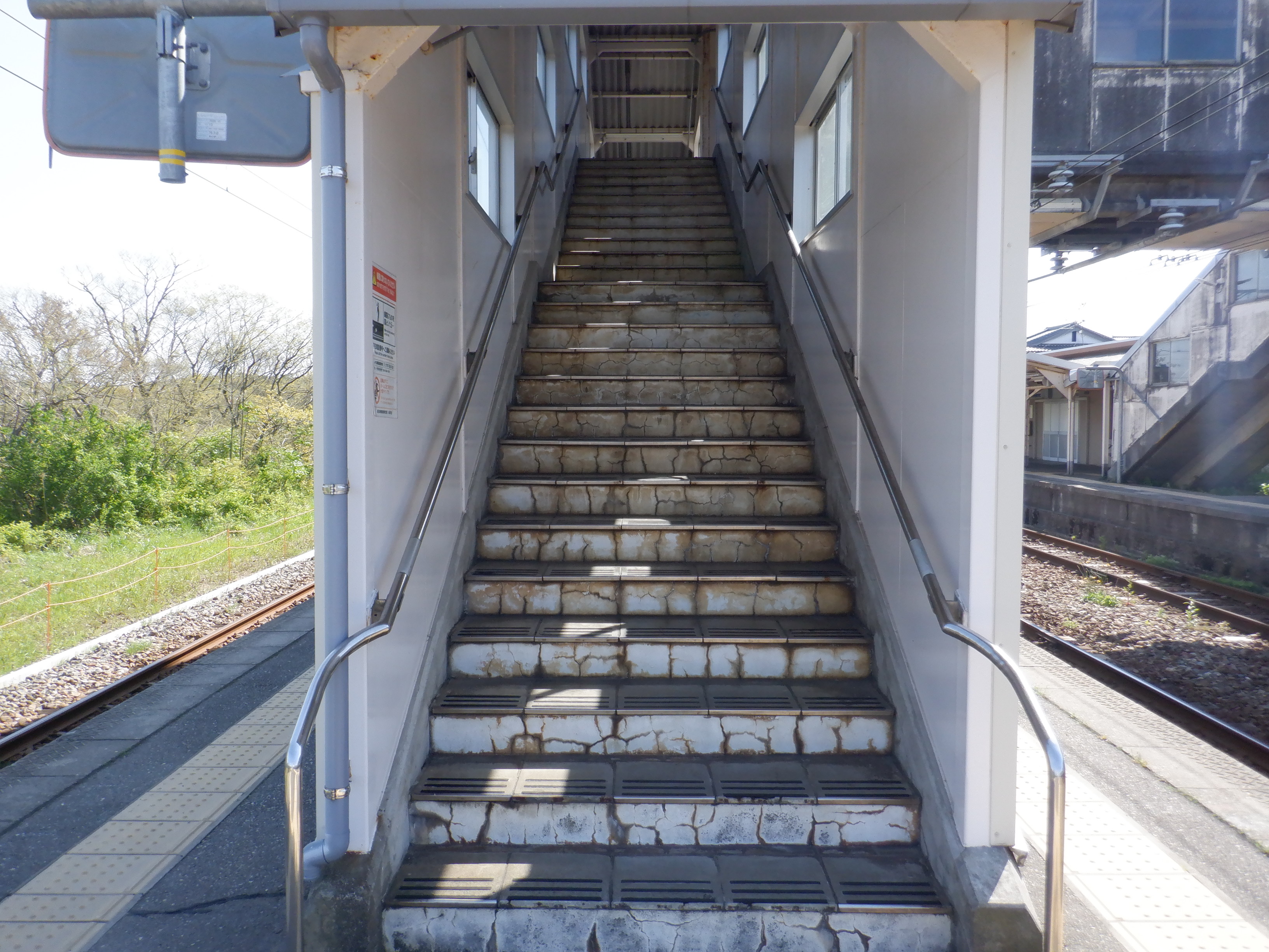 2・3番のりば跨線橋階段の免田駅側。