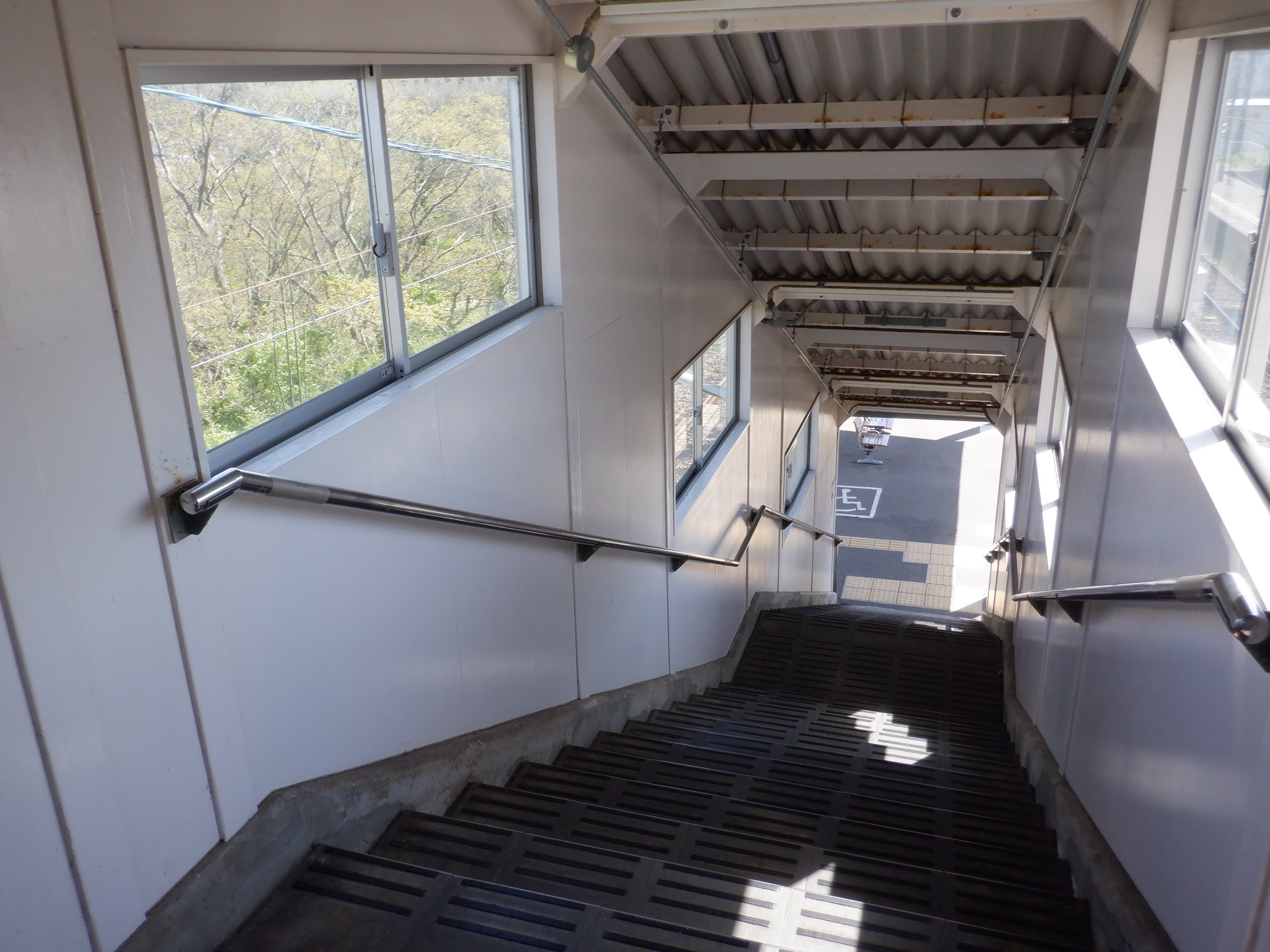 2・3番のりば跨線橋階段の横山駅側を見おろしたところ。