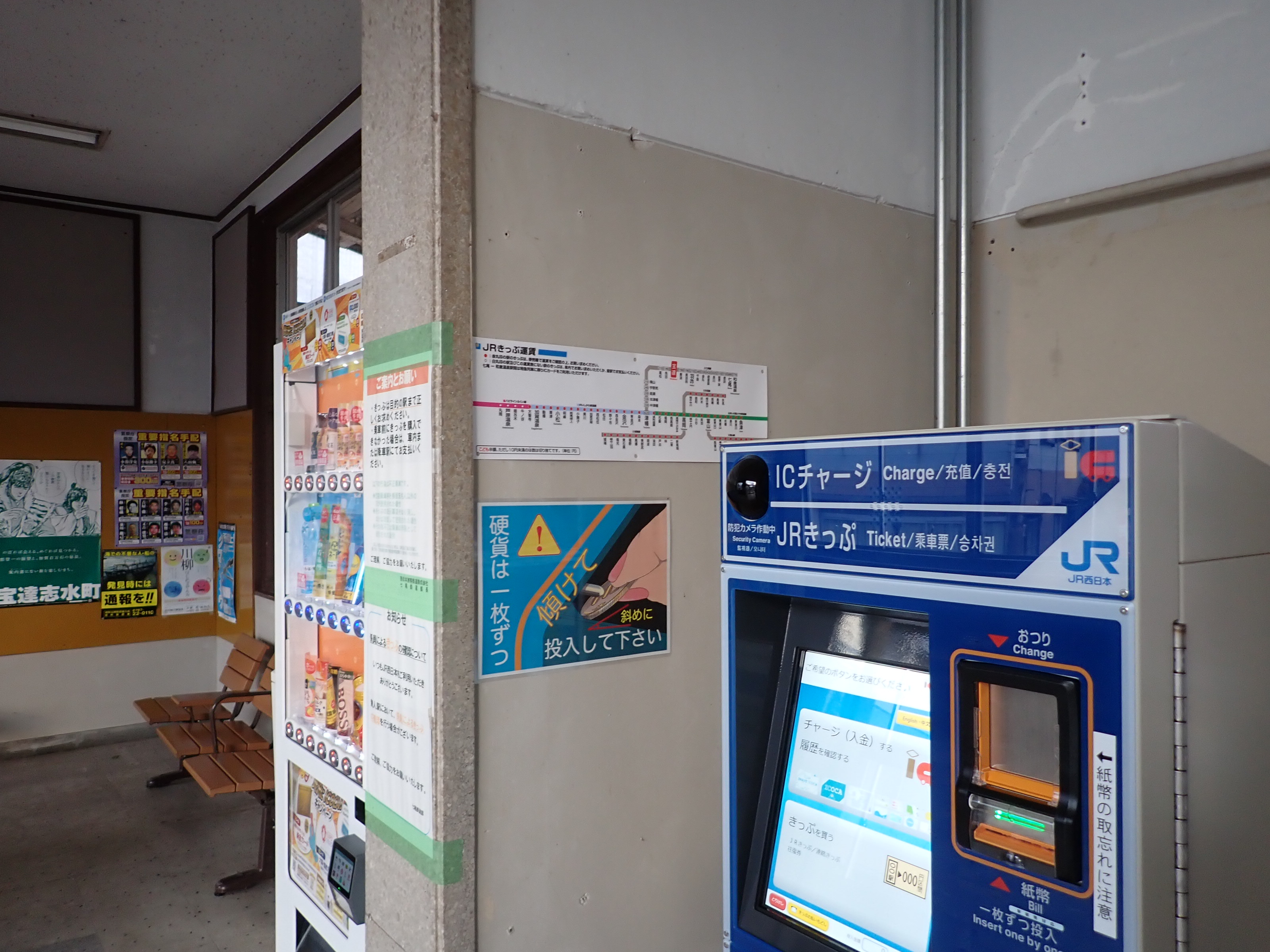 券売機が更新されていました。路線図は横の壁に貼られています。