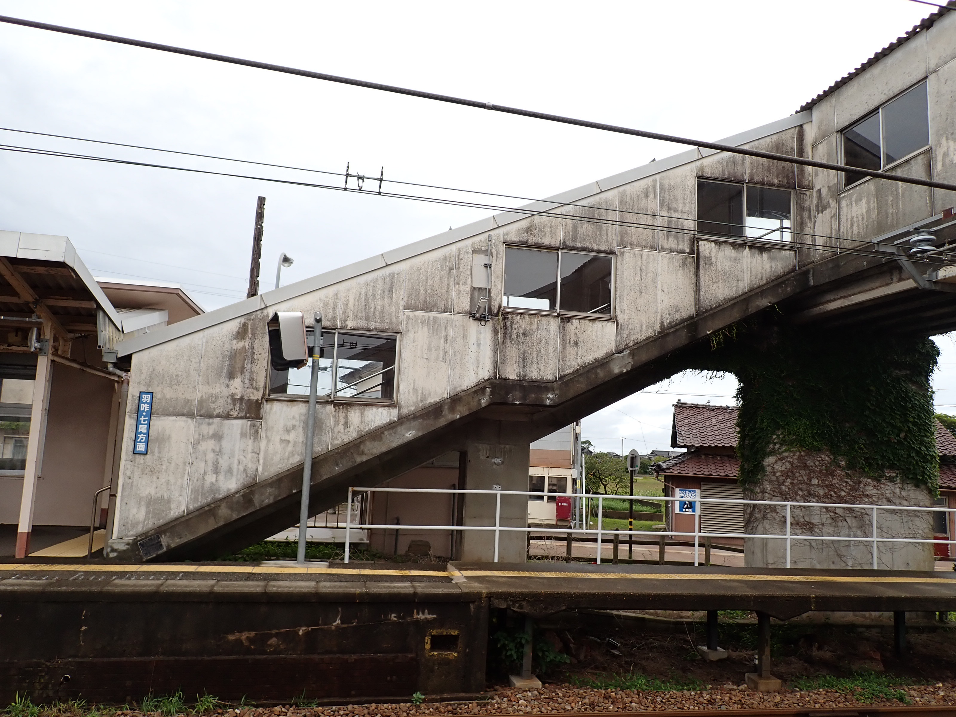 1番のりばから見た跨線橋の外観。