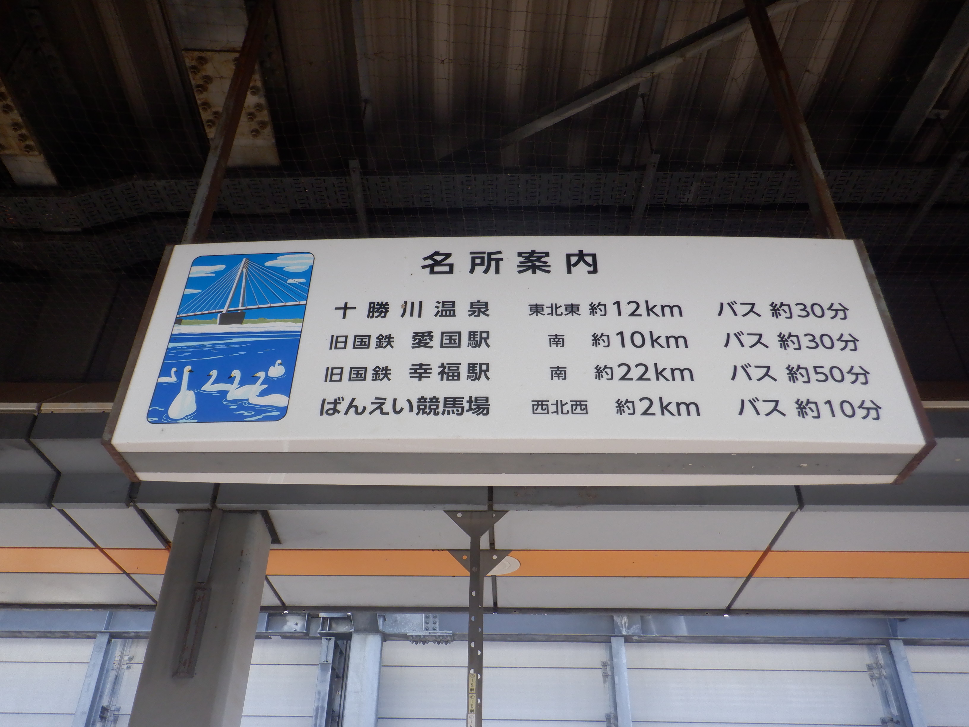 駅名標と名所案内。