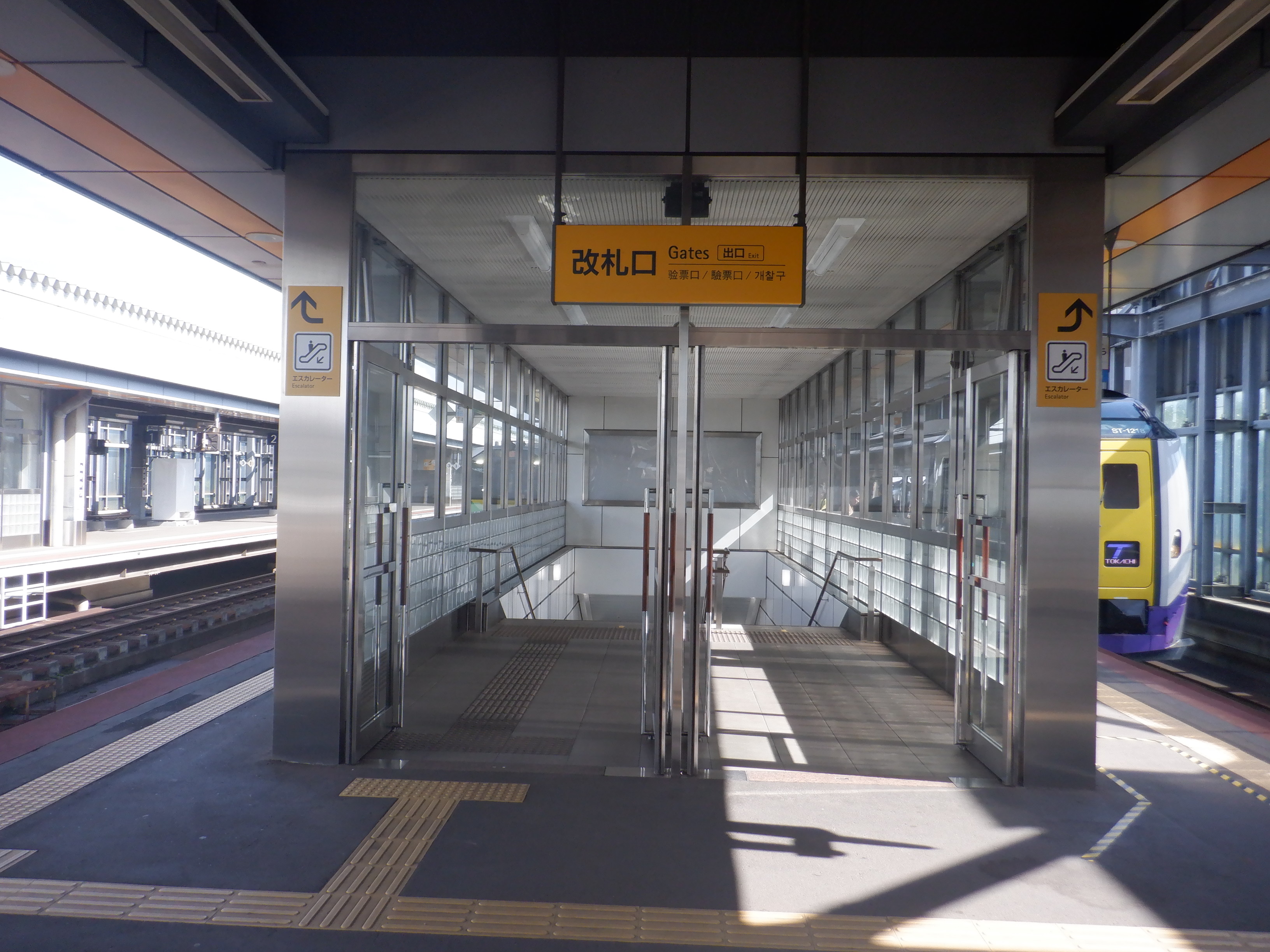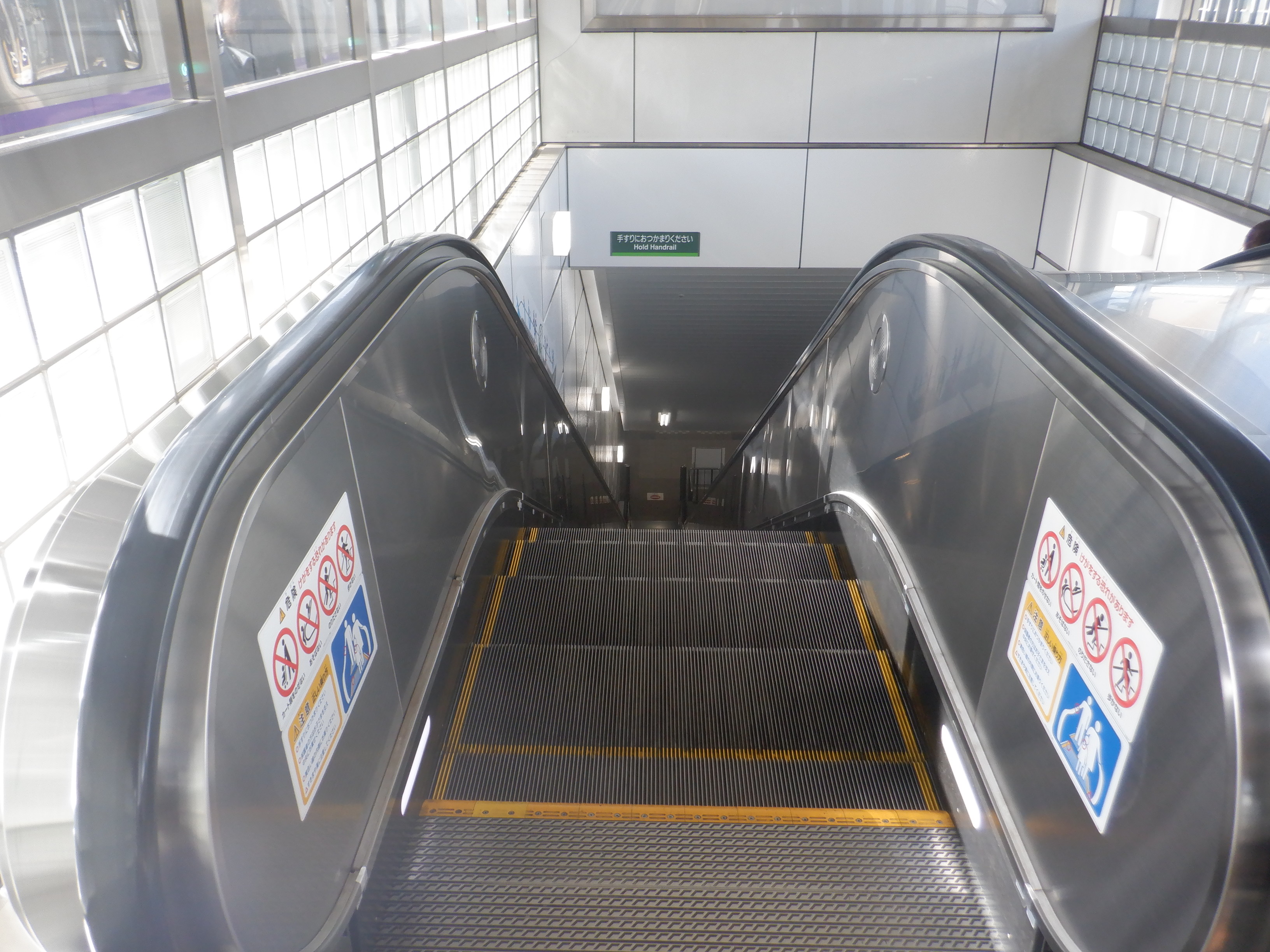 札内駅側にあるエスカレーターで下りていくところ。
